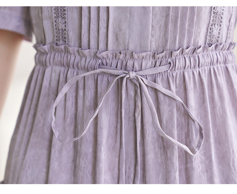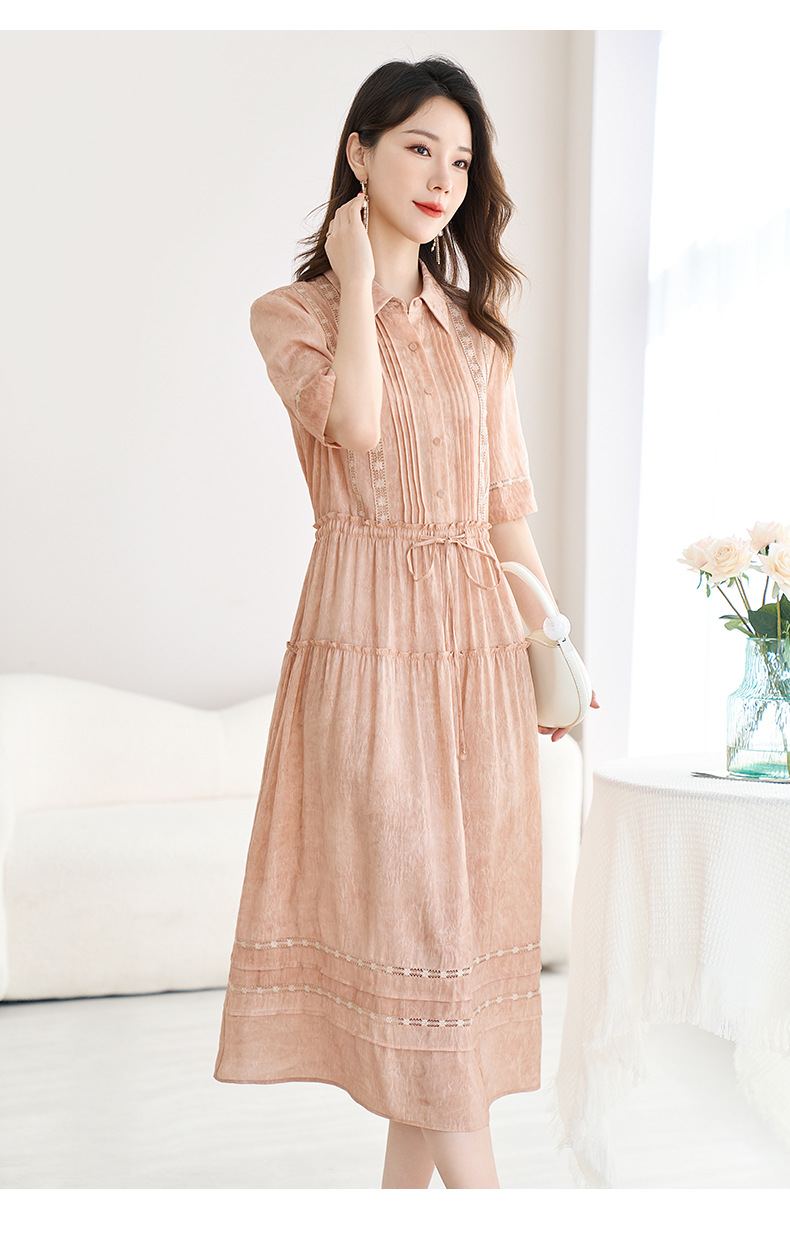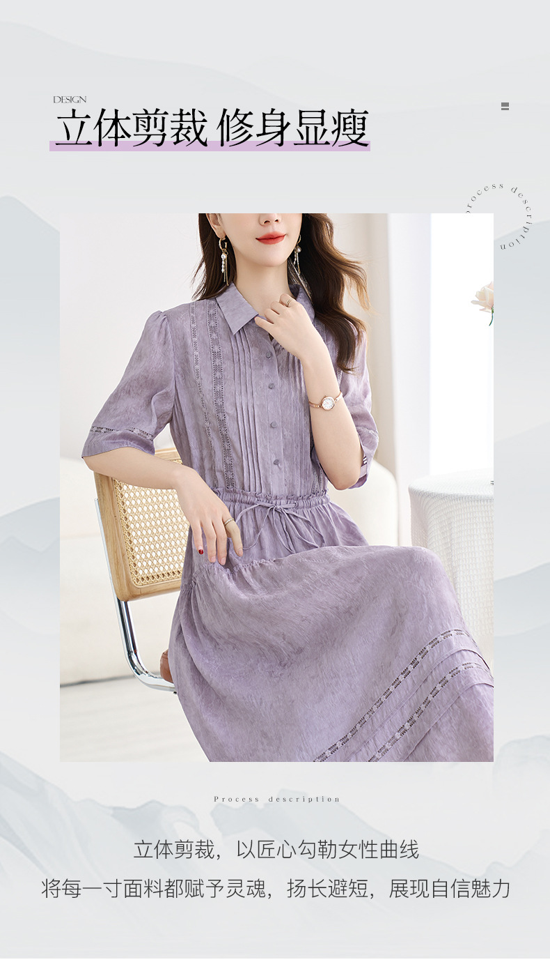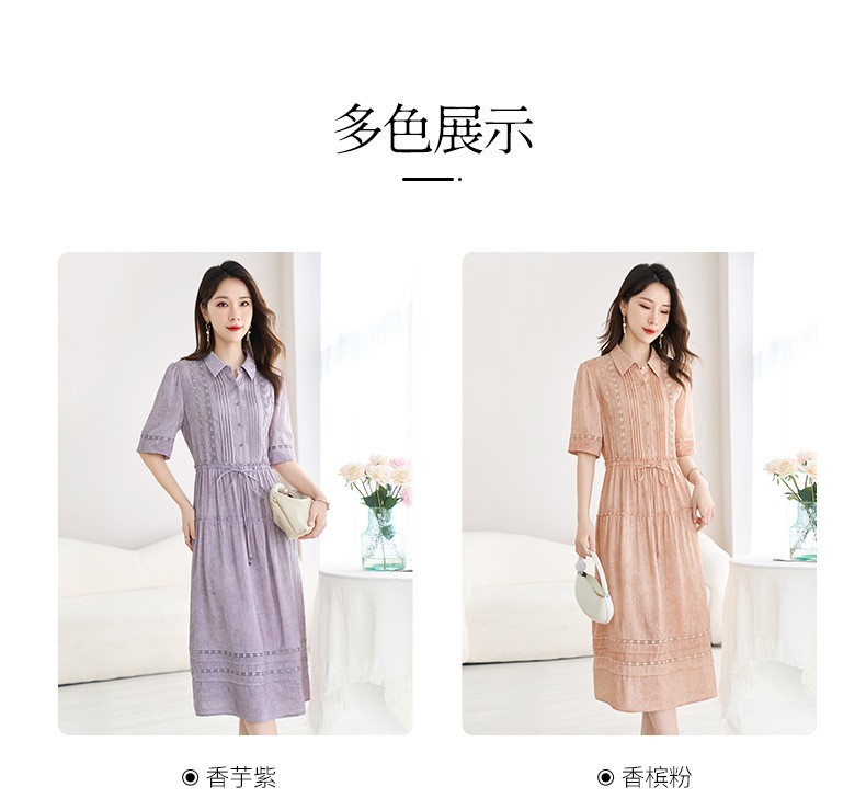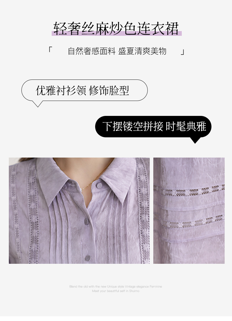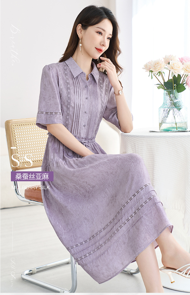QS-82599560【夏季爆款】丝麻混纺桑蚕丝连衣裙夏遮肉显瘦大码亚麻中长裙9560
