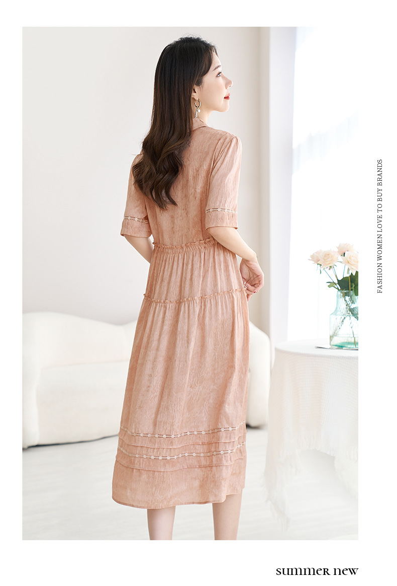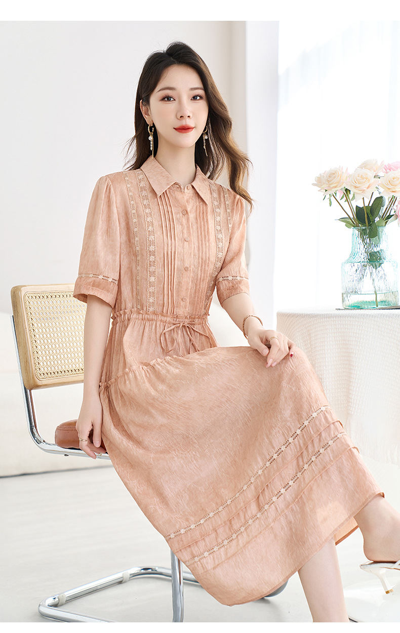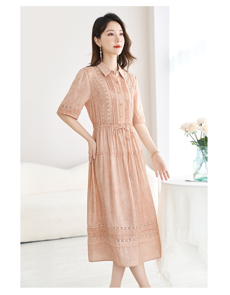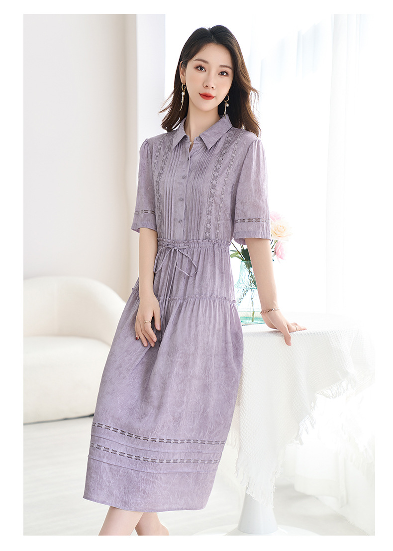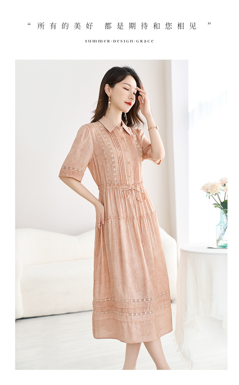 QS-82599560【夏季爆款】丝麻混纺桑蚕丝连衣裙夏遮肉显瘦大码亚麻中长裙9560