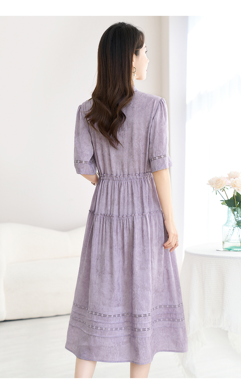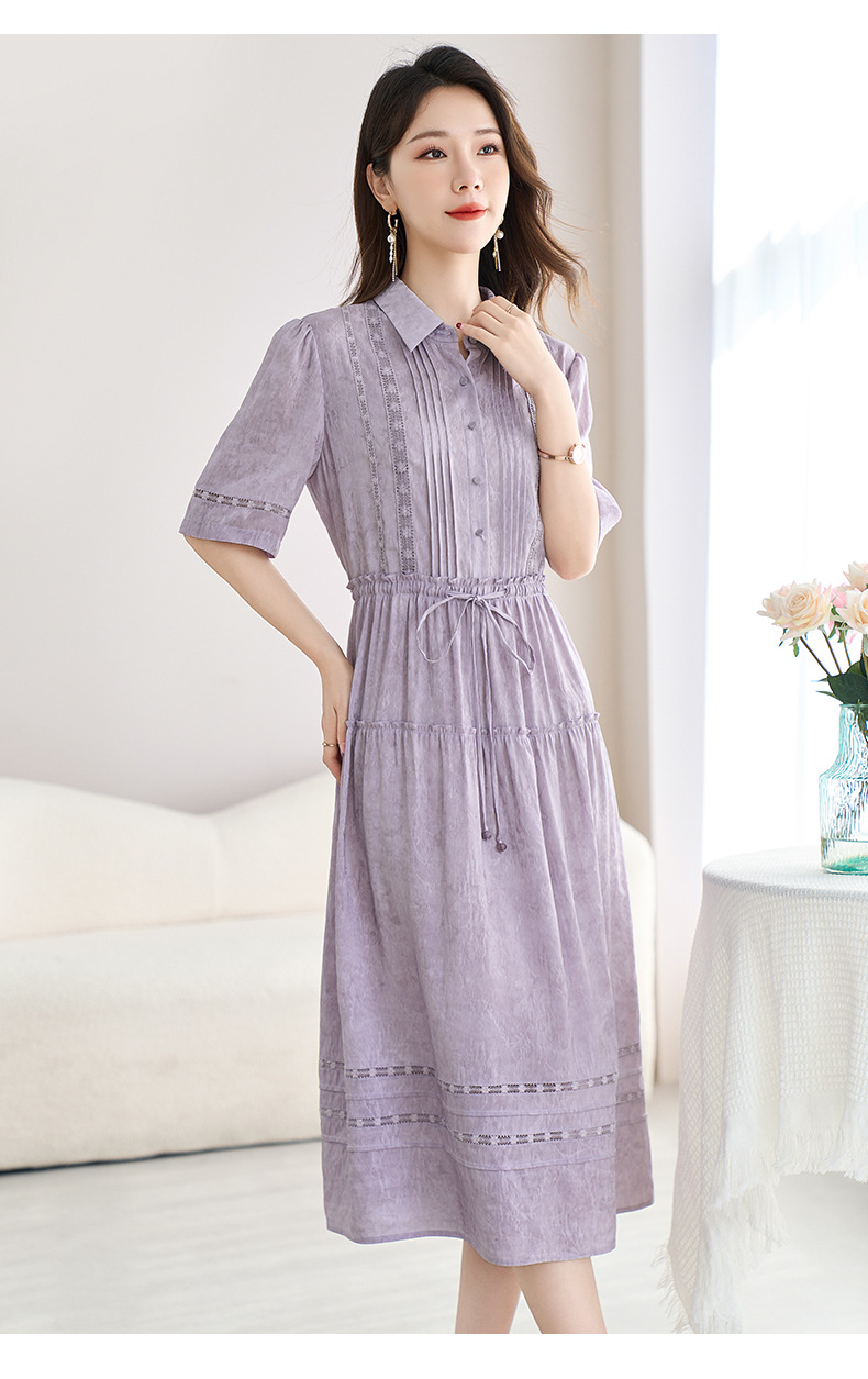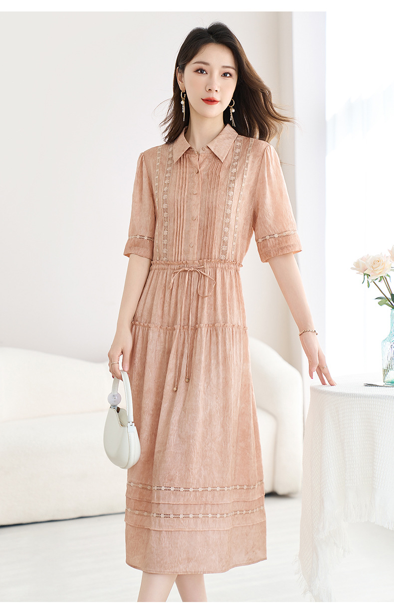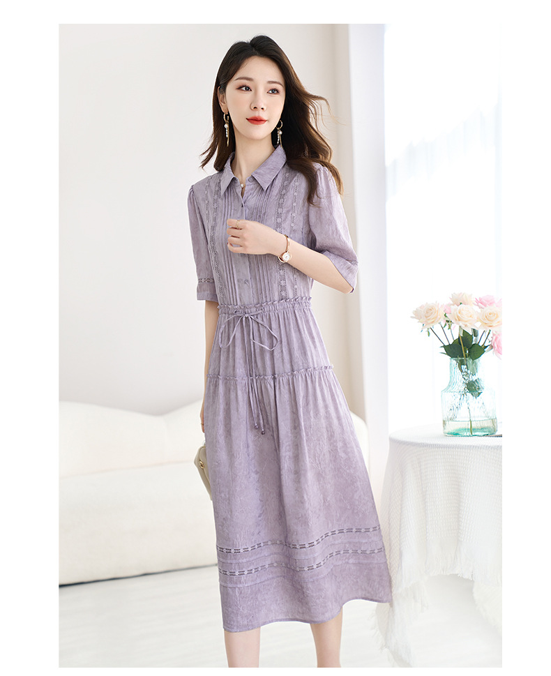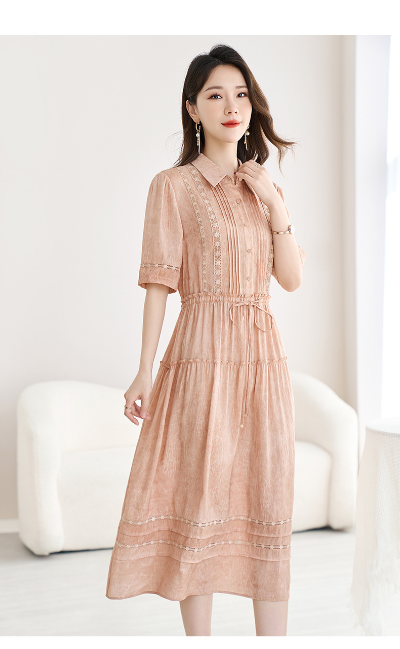 QS-82599560【夏季爆款】丝麻混纺桑蚕丝连衣裙夏遮肉显瘦大码亚麻中长裙9560