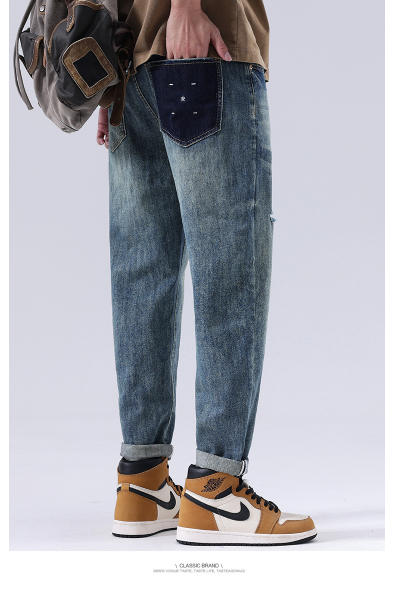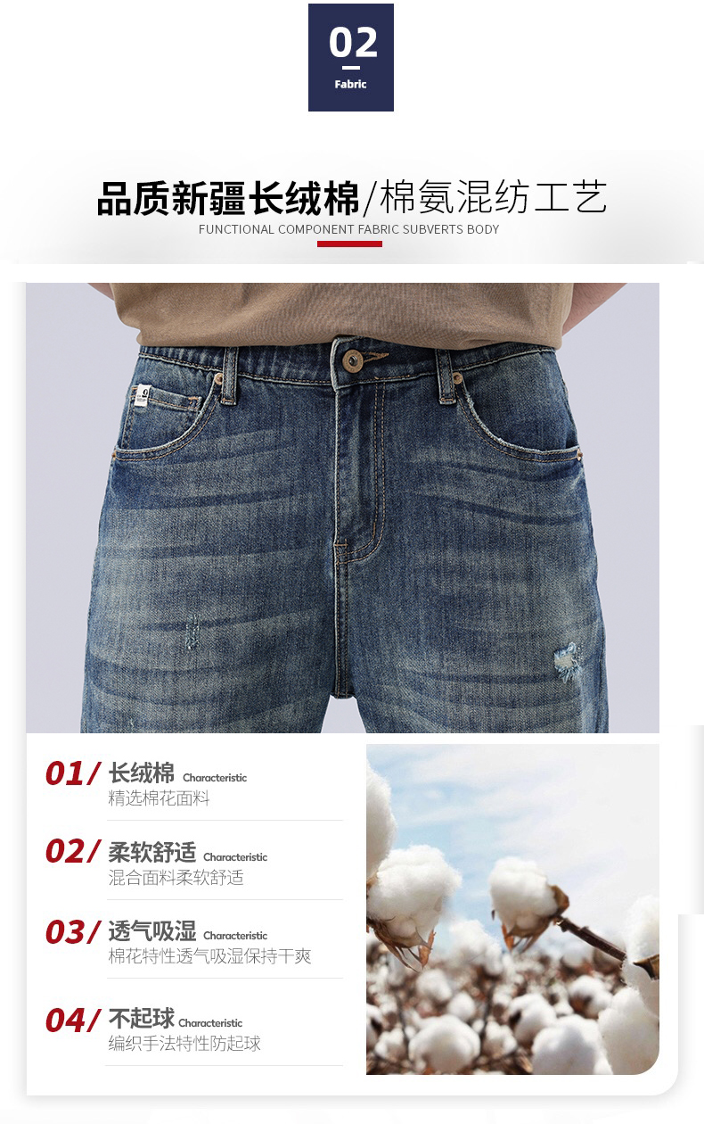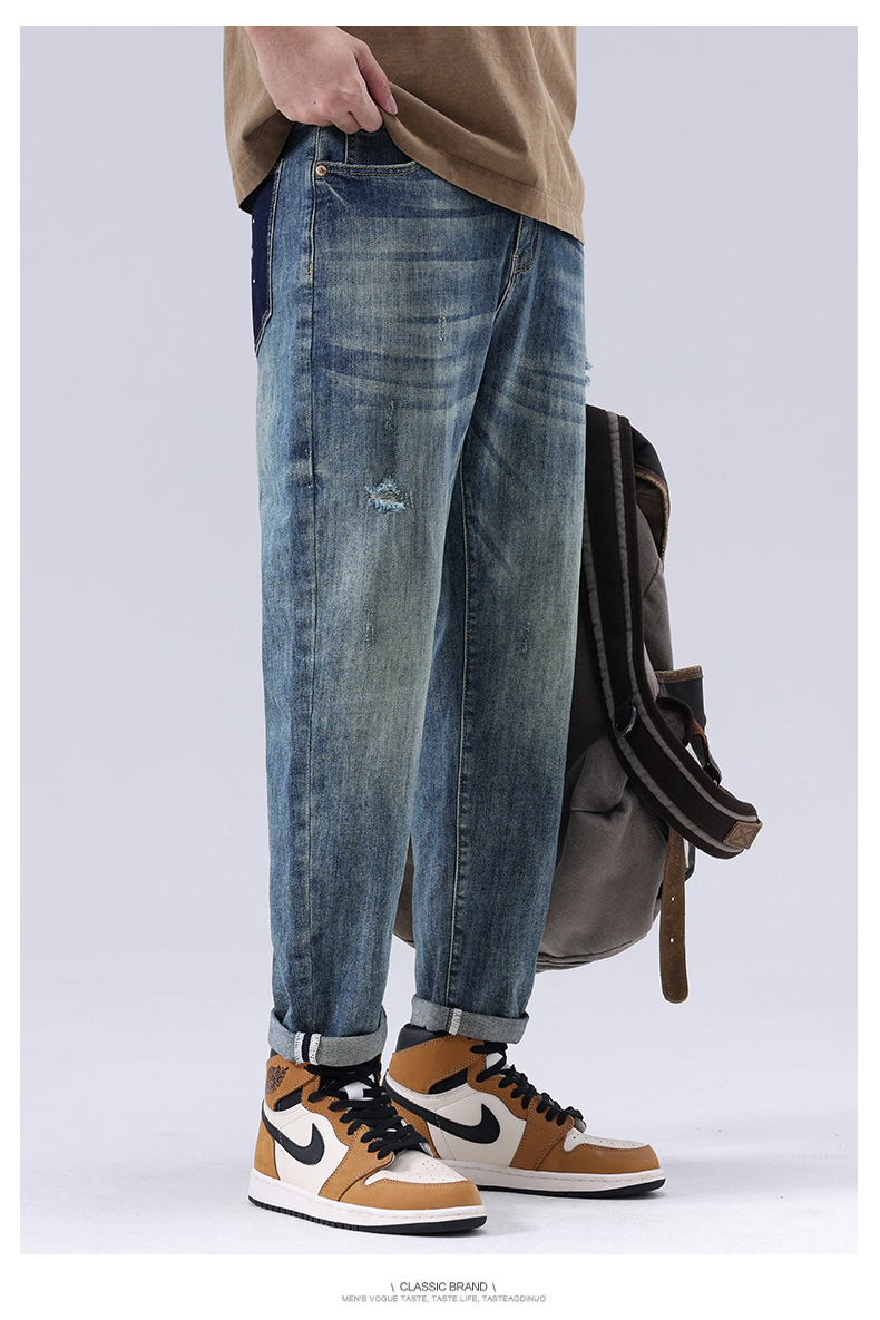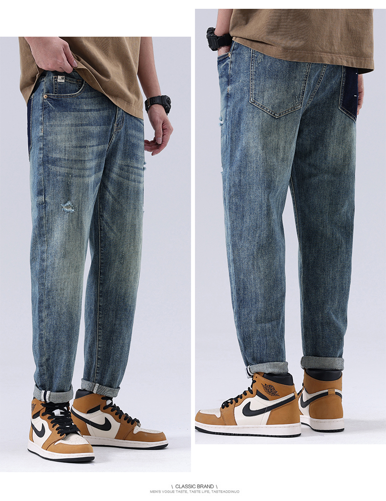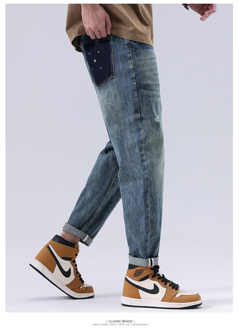 【夏款】【新款DQ】大依优型大码破洞牛仔裤九分长裤小脚裤YKK拉链男舒适弹力休闲薄款简约百搭加肥加大男装潮款
