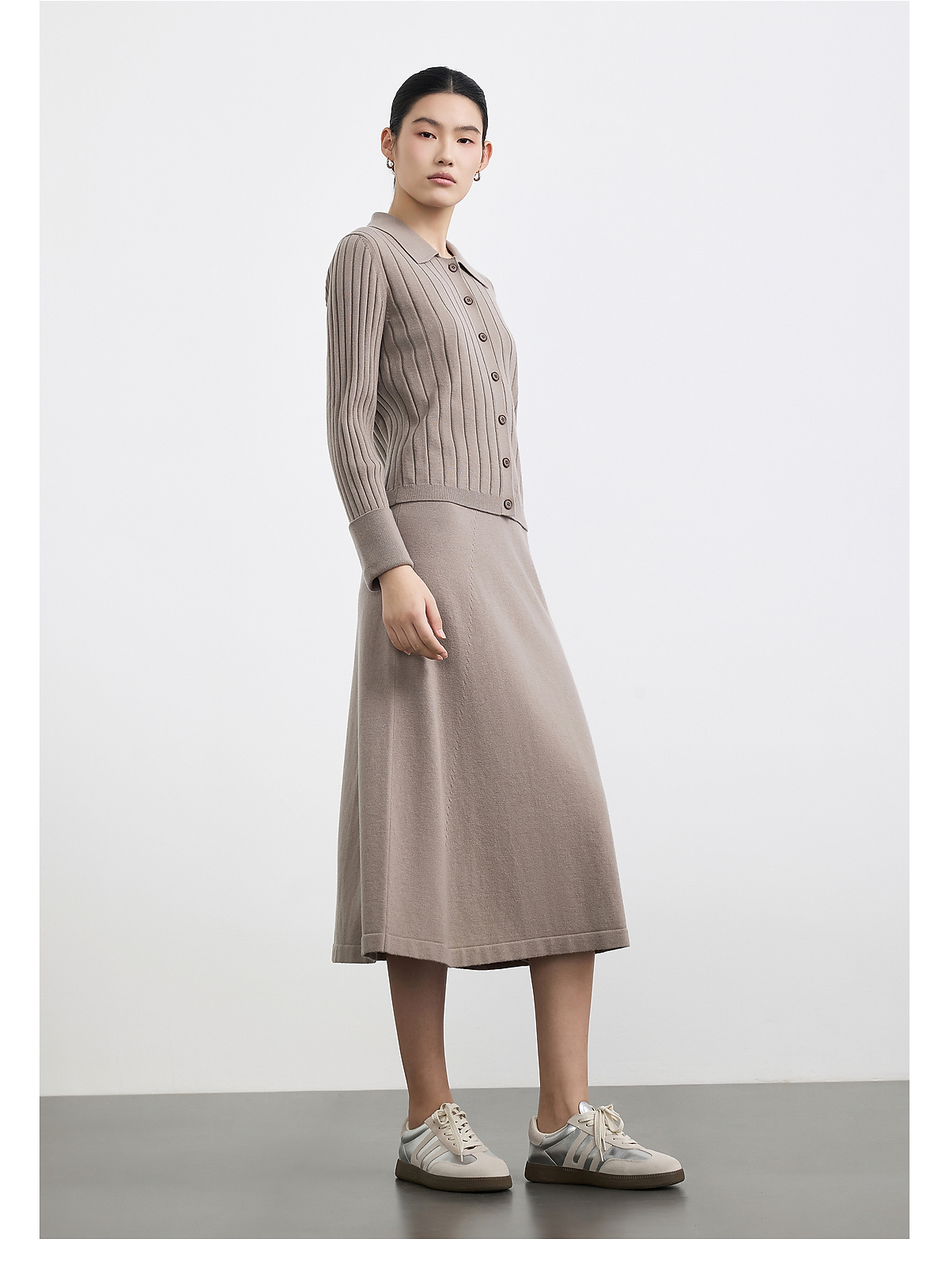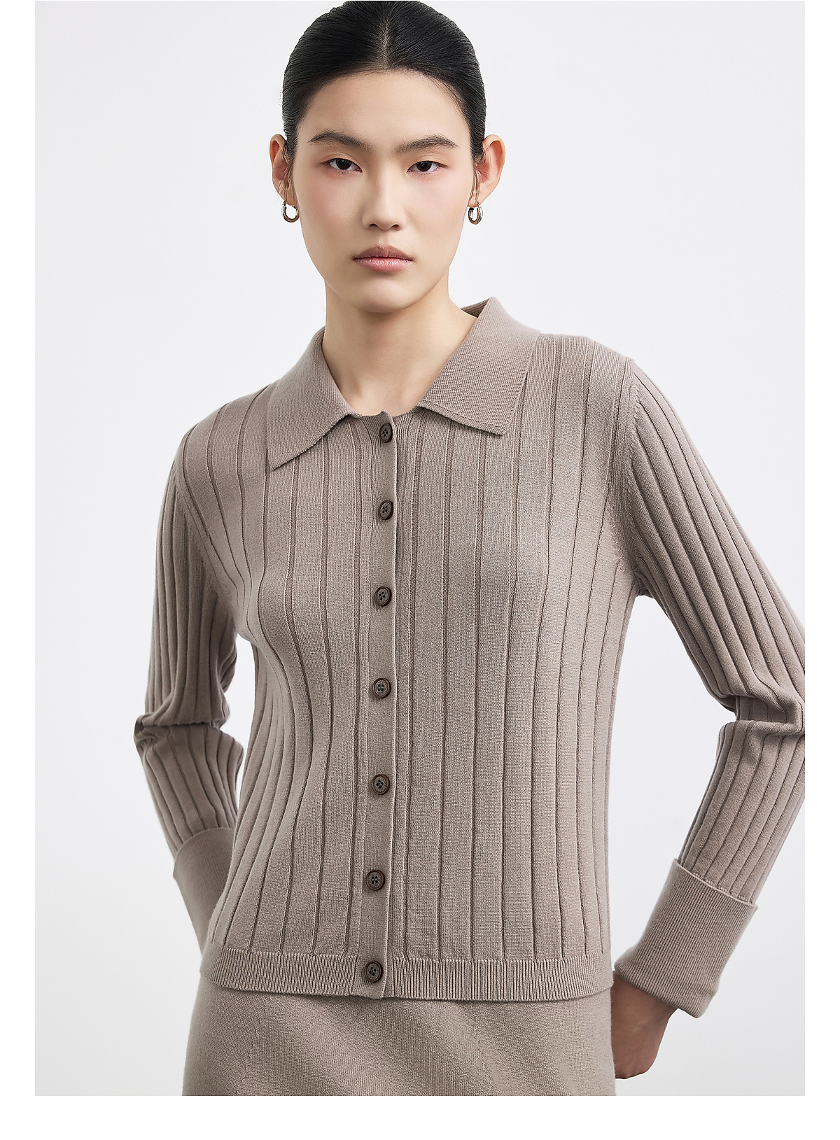 商场同款PURE TOUCH女装25秋冬新款羊毛针织开衫翻领精纺宽松毛衣