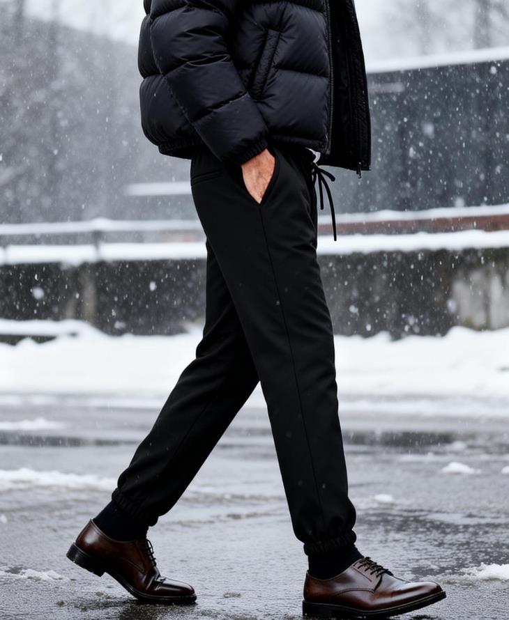 一上身,就像平时穿的百搭休闲裤一样,简练又利落,丝毫没有传统羽绒裤或者加绒裤的臃肿;