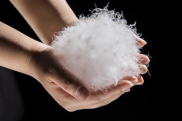 看,细腻、柔软的腹绒一下子就蹦了出来,而且光是简单揉搓几下,手指头就热乎乎的。