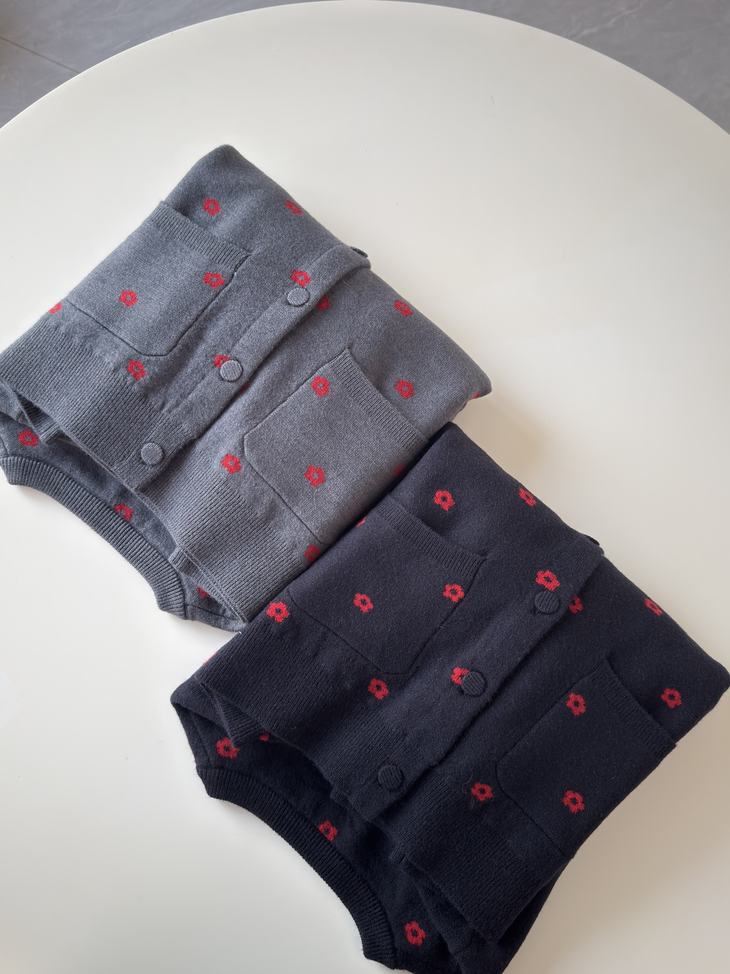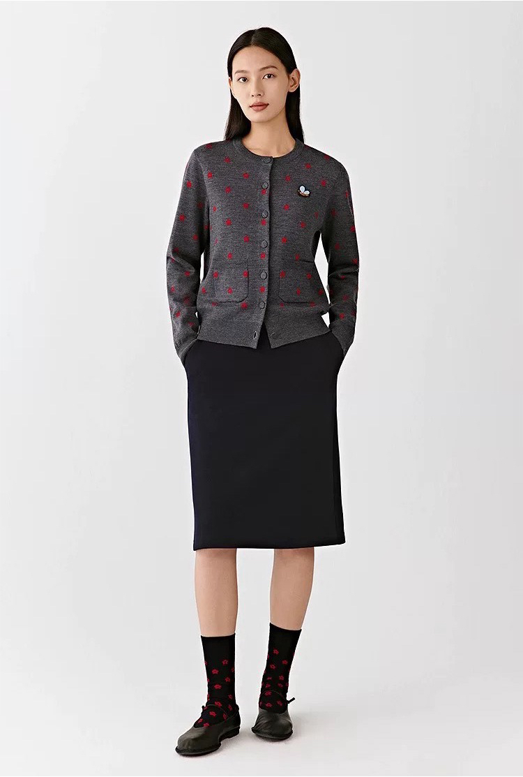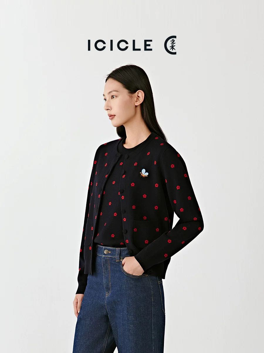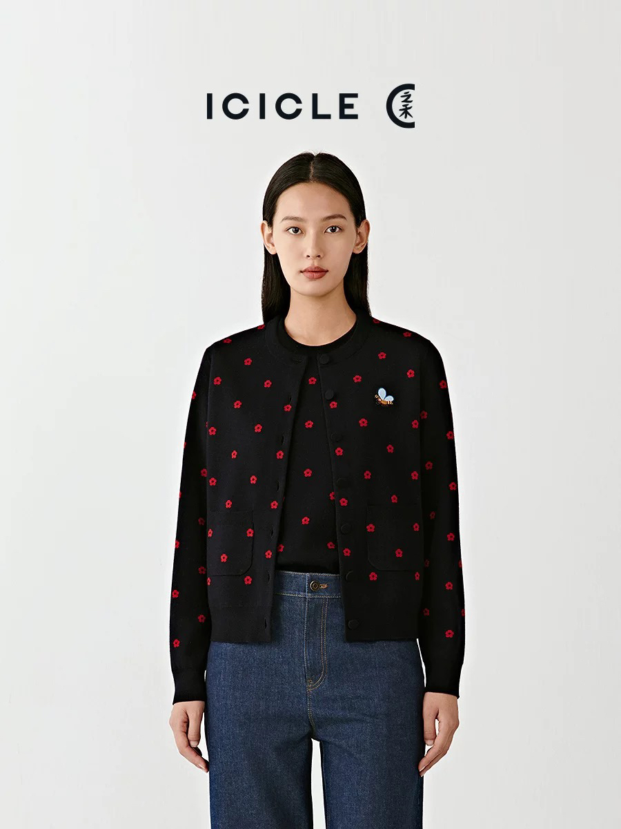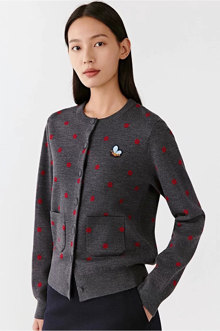 小禾 新年复古 针织 双面提花 小蜜蜂刺绣 双口袋 开衫