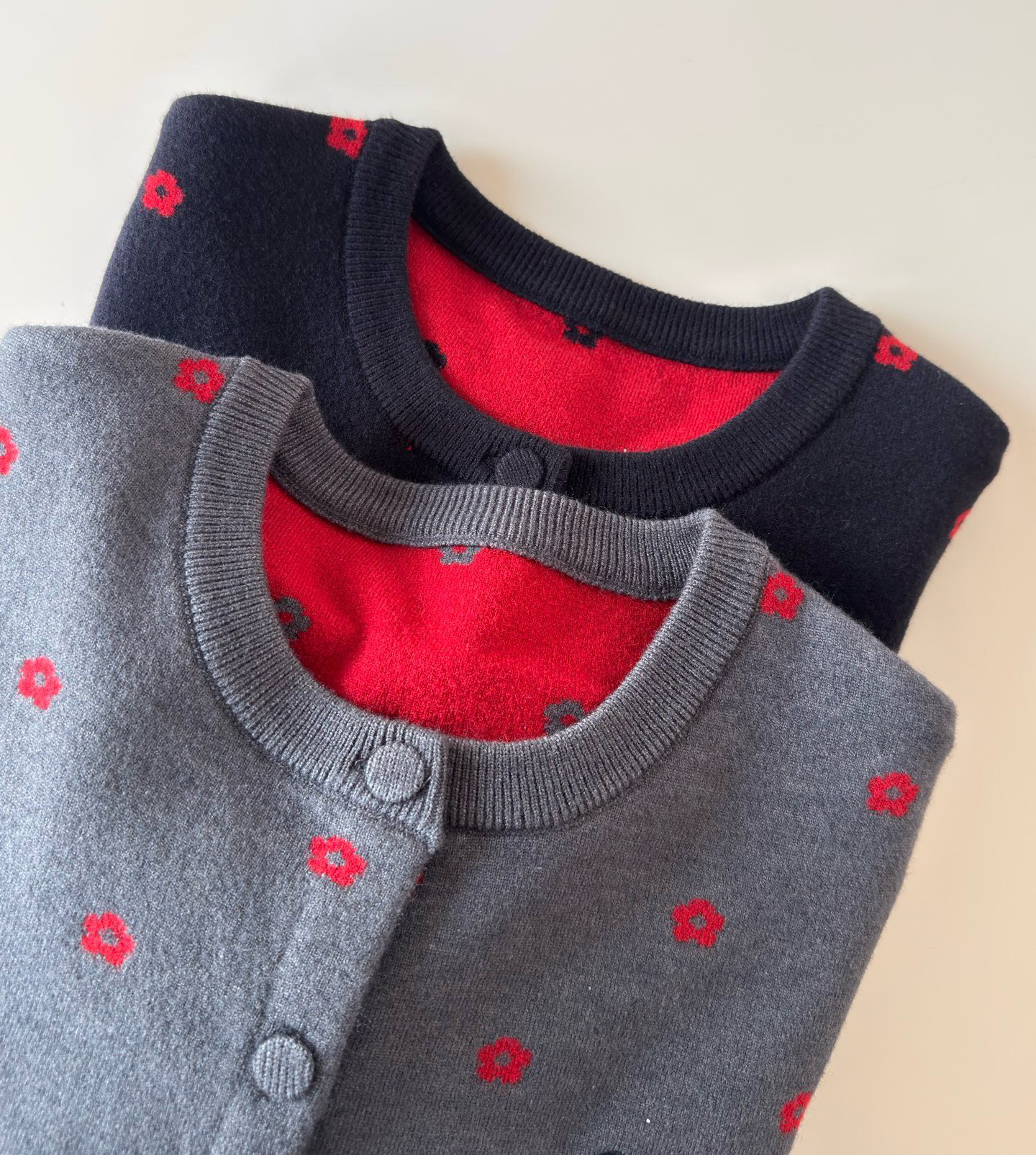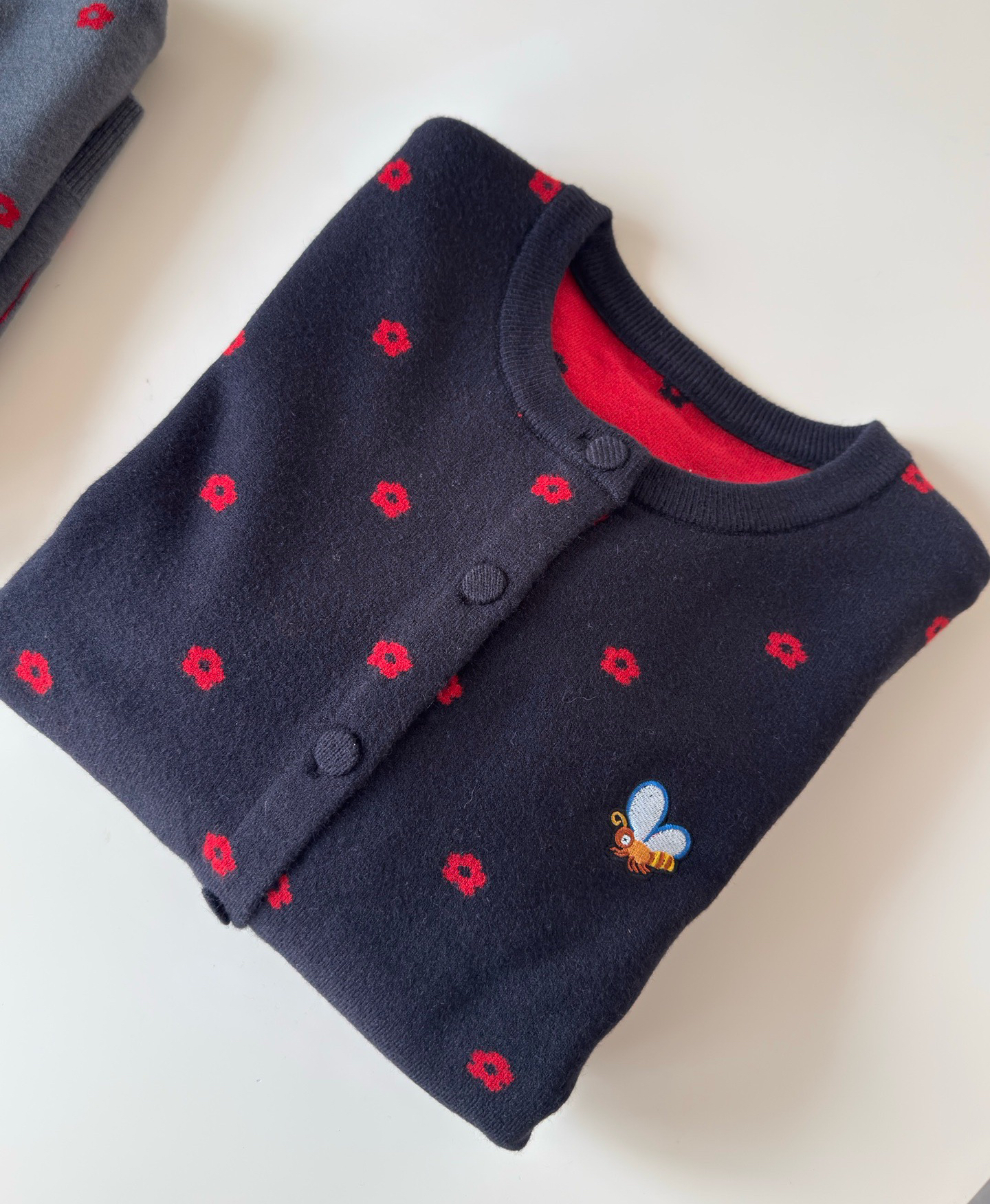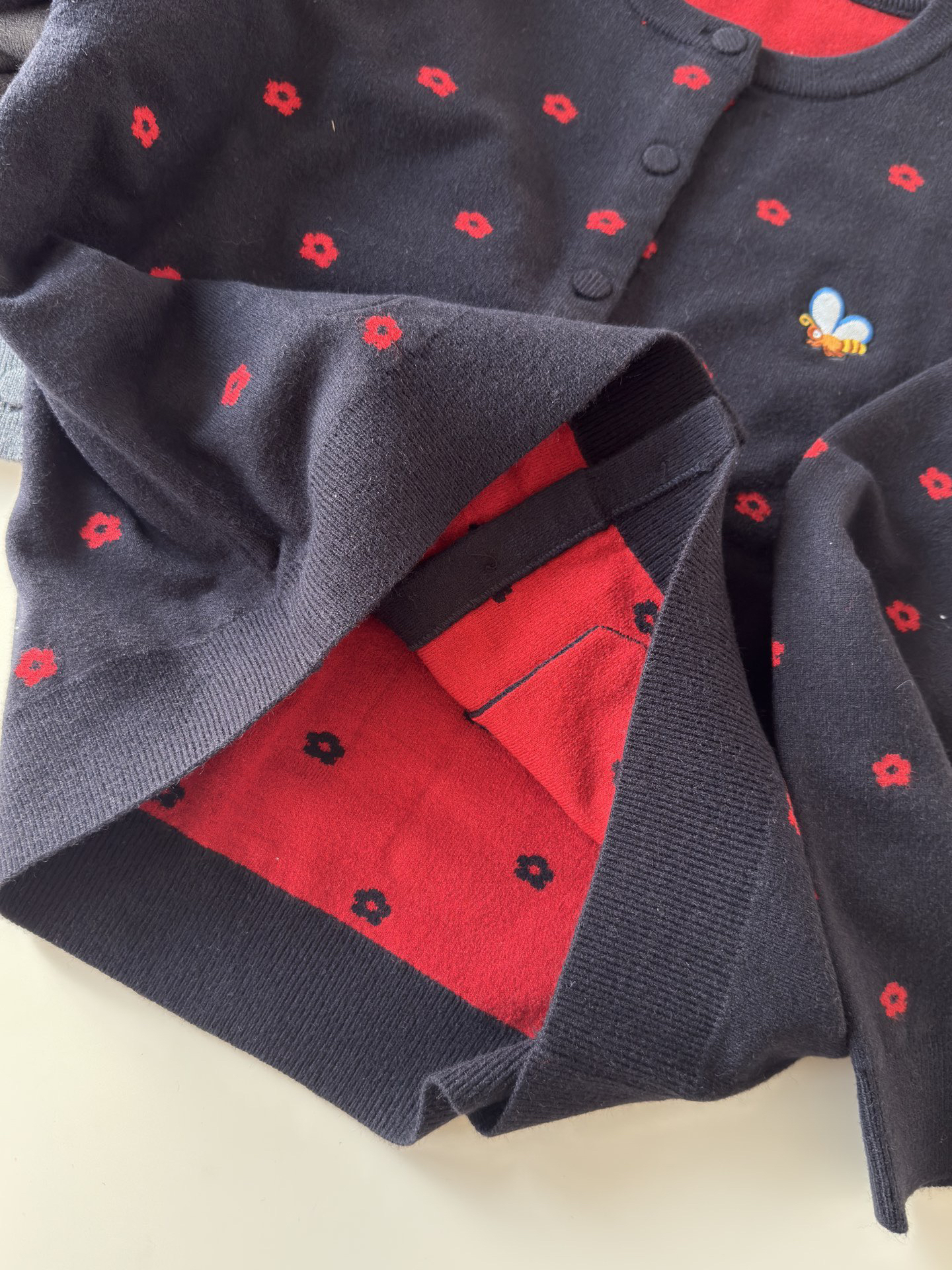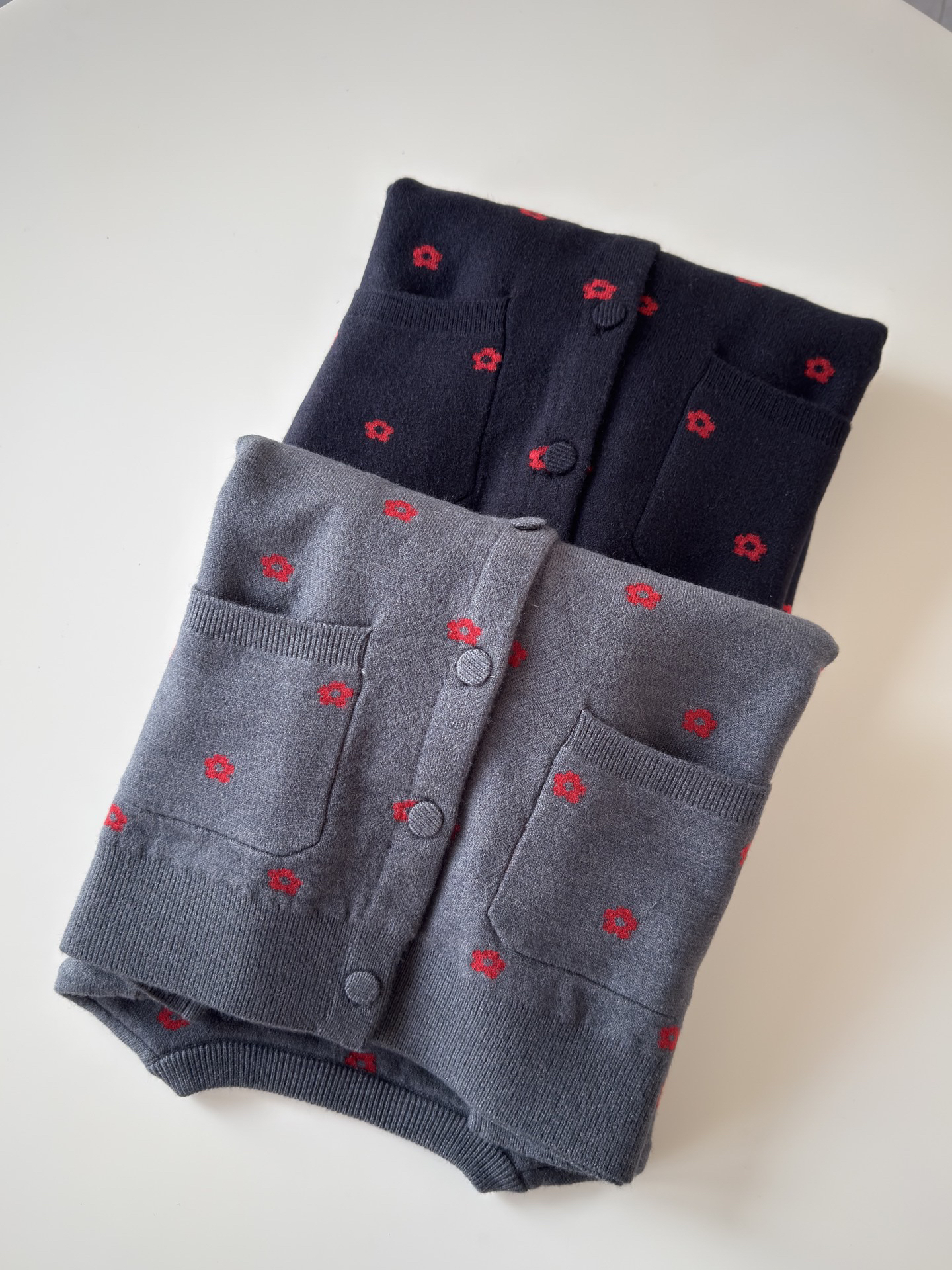 小禾 新年复古 针织 双面提花 小蜜蜂刺绣 双口袋 开衫