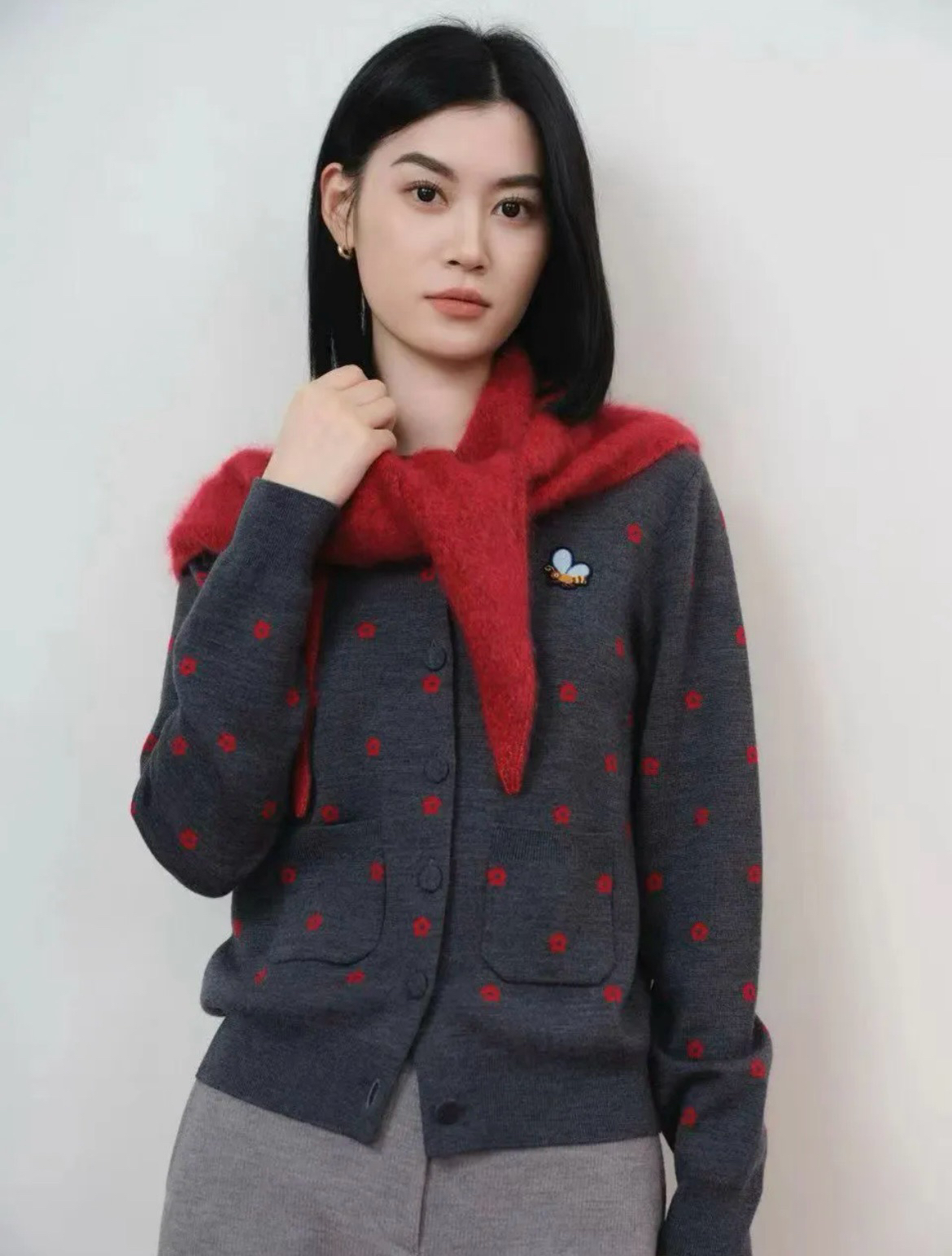 桃花蜜蜂,新年系列针织开衫,羊毛混纺,柔软亲肤,贴身穿超舒服的哈