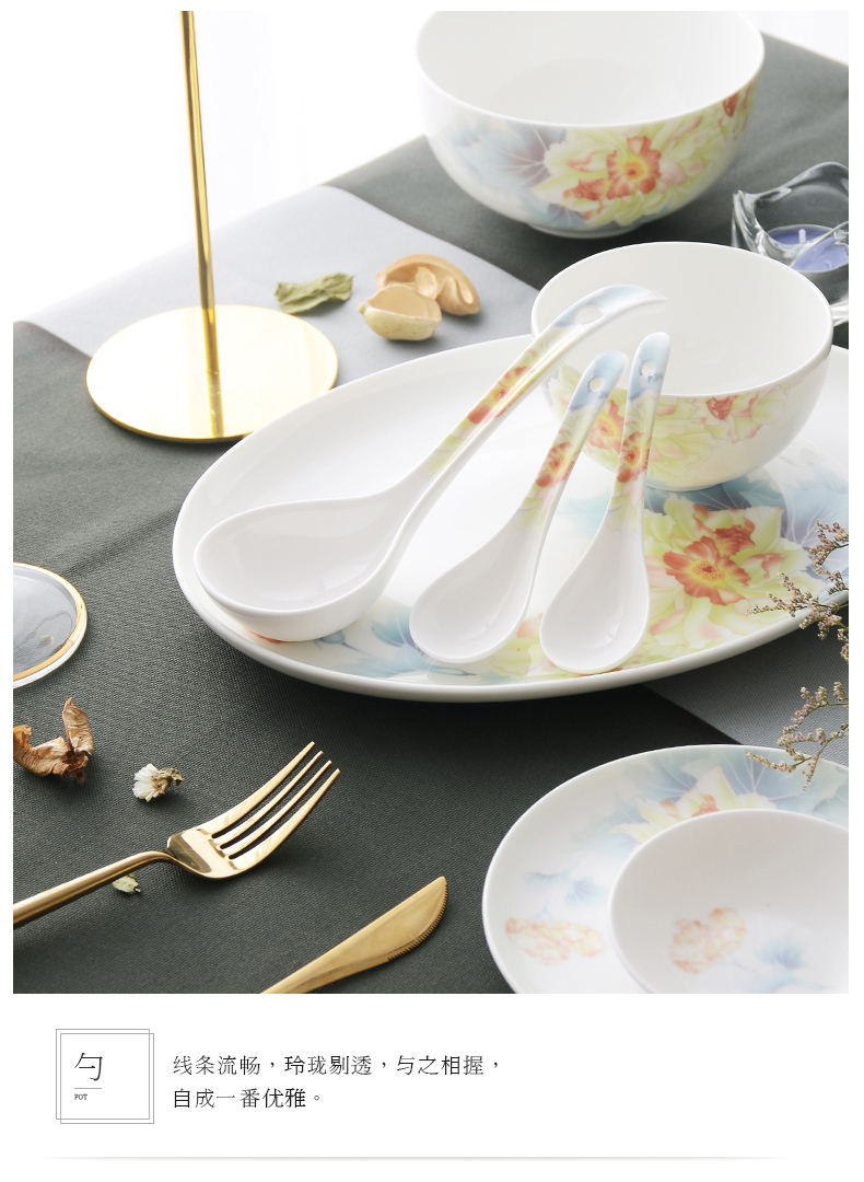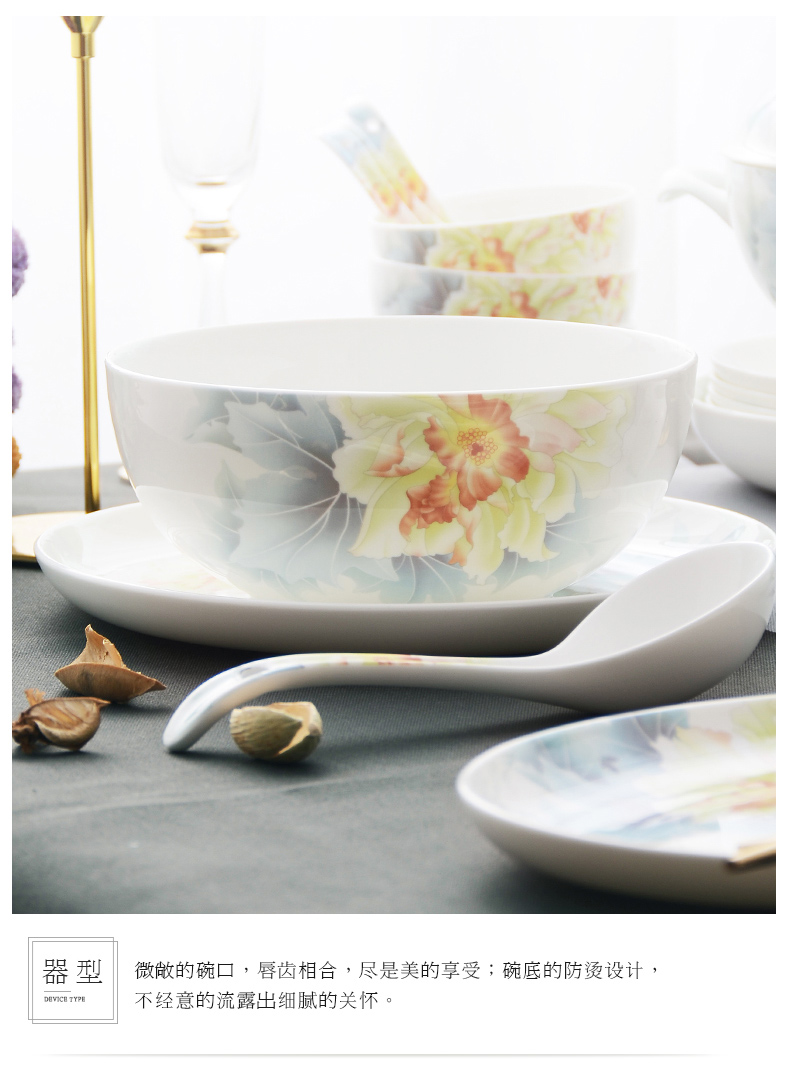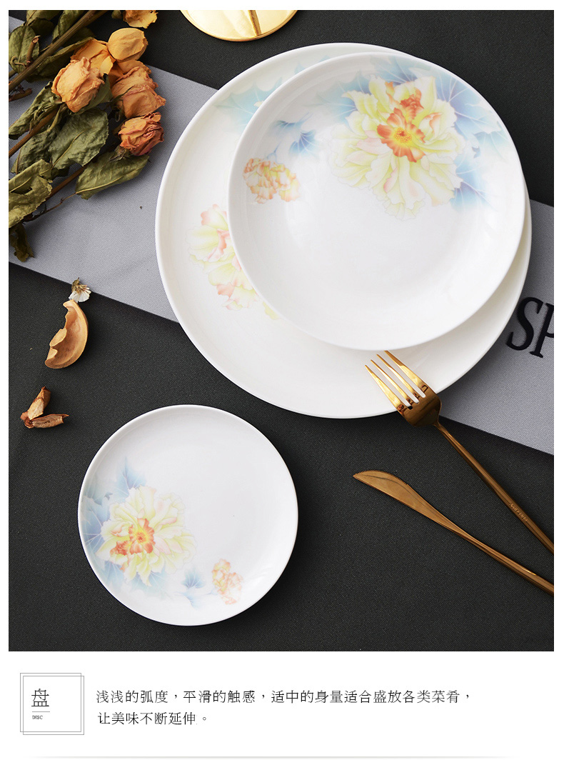 华光国瓷抗菌骨瓷餐具套装防烫碗碟套装家用碗碟盘组合釉中彩月下芙蓉