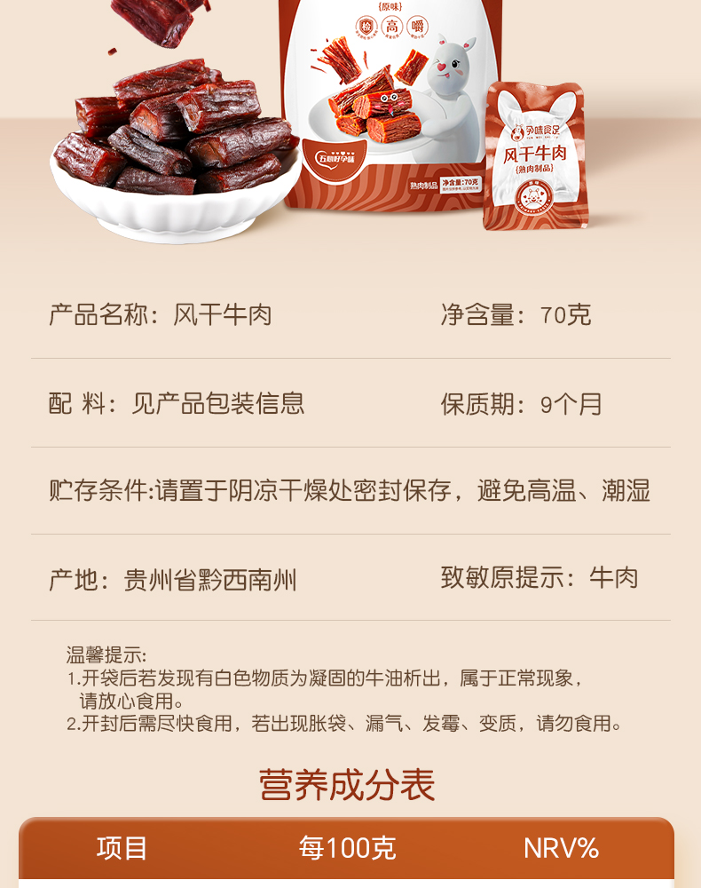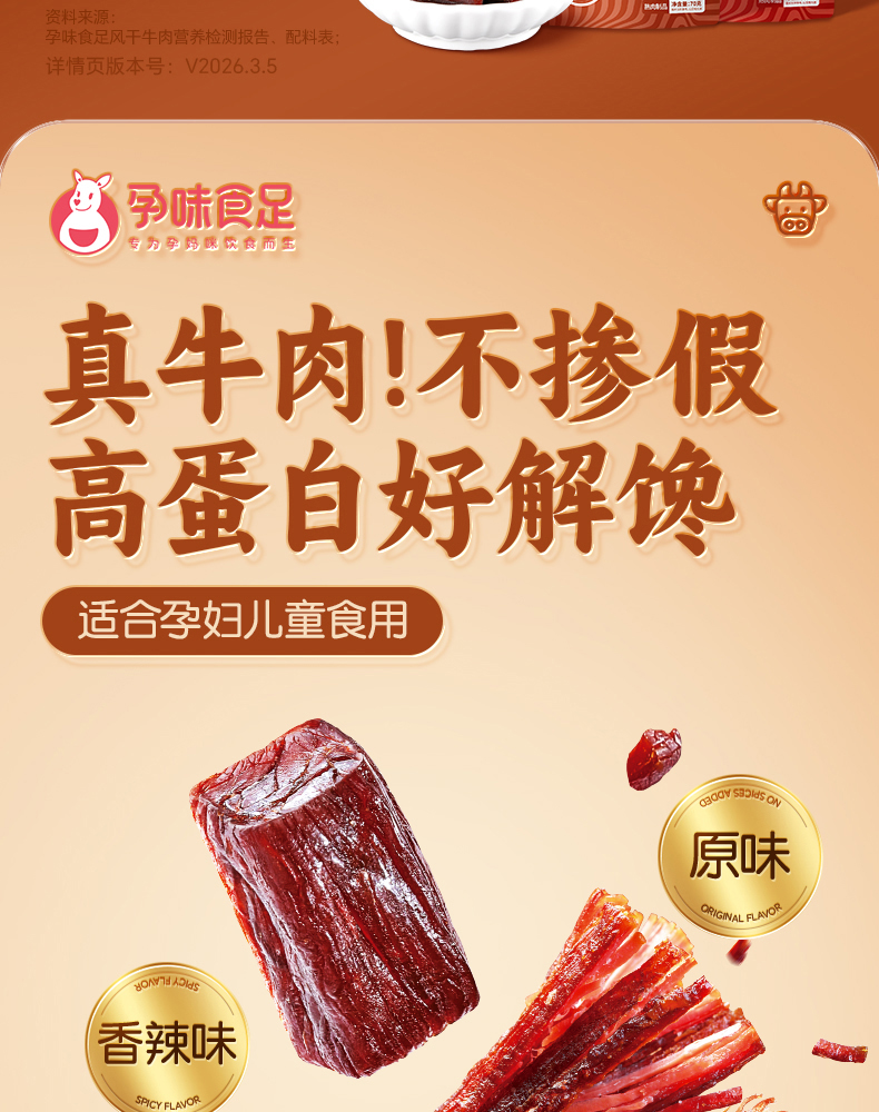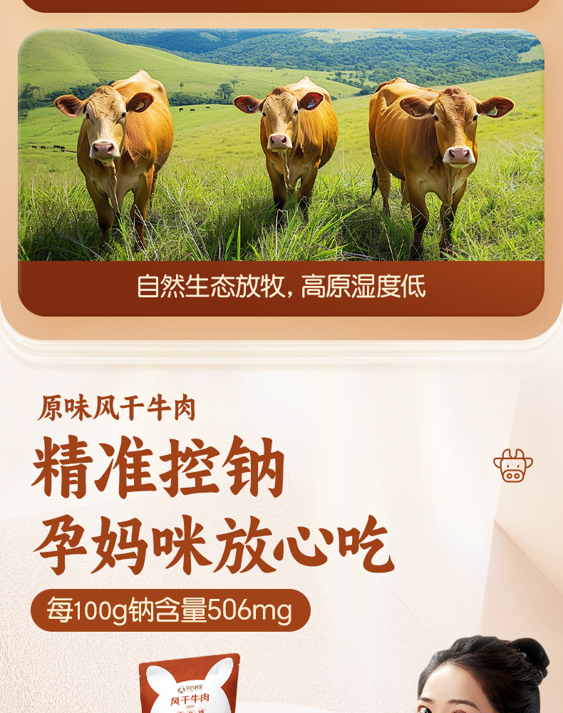 【品牌自营】孕味食足孕妇可以吃的无添加剂原味手撕风干牛肉干低脂解馋扛饿零食
