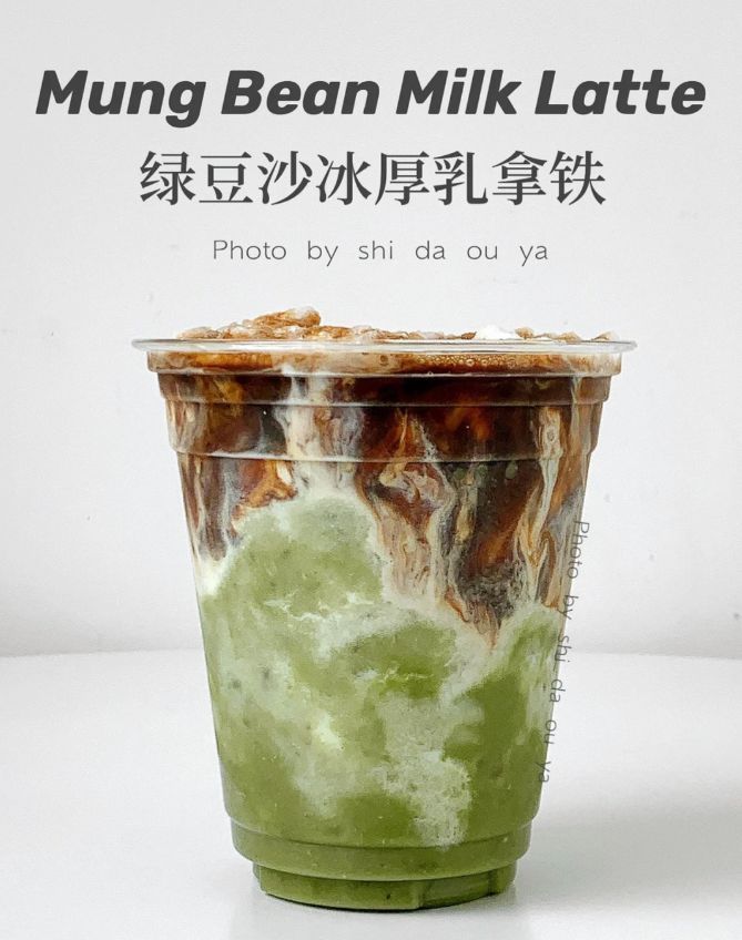 轻松复刻咖啡店同款绿豆沙冰厚乳拿铁~