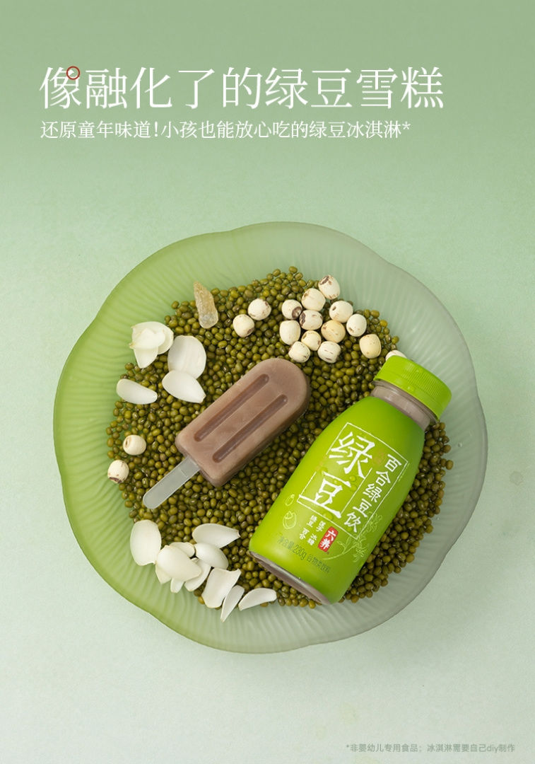 像融化了的绿豆雪糕,还原童年味道!配料干净,小朋友也能放心吃的绿豆冰淇淋,原汁原味,好喝营养低负担...!多种饮用方式,随心搭配: