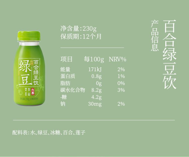 解暑必备 某马同款【古法-六养百合莲子绿豆饮】 药食同源 配料干净 入口细腻丝滑 低脂低糖配方控糖人士友好 无防腐剂