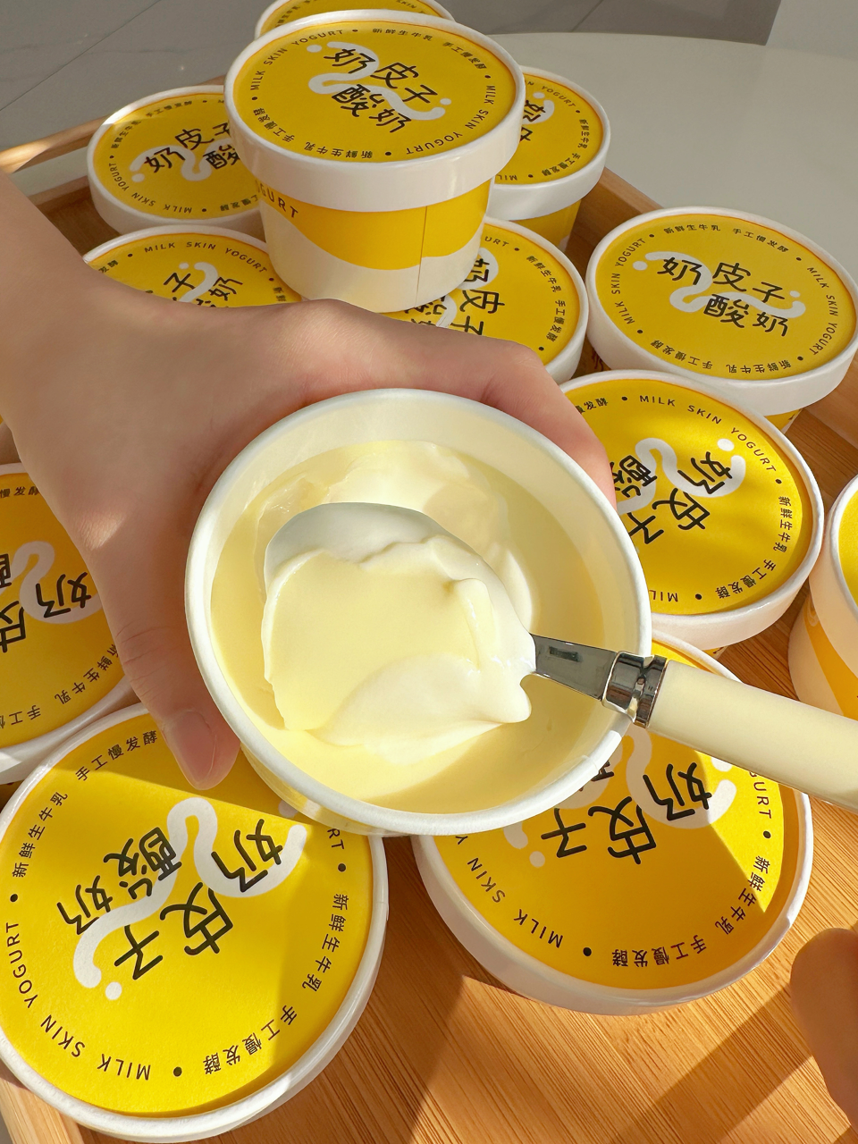 一口感受到厚奶皮与酸奶双重口味