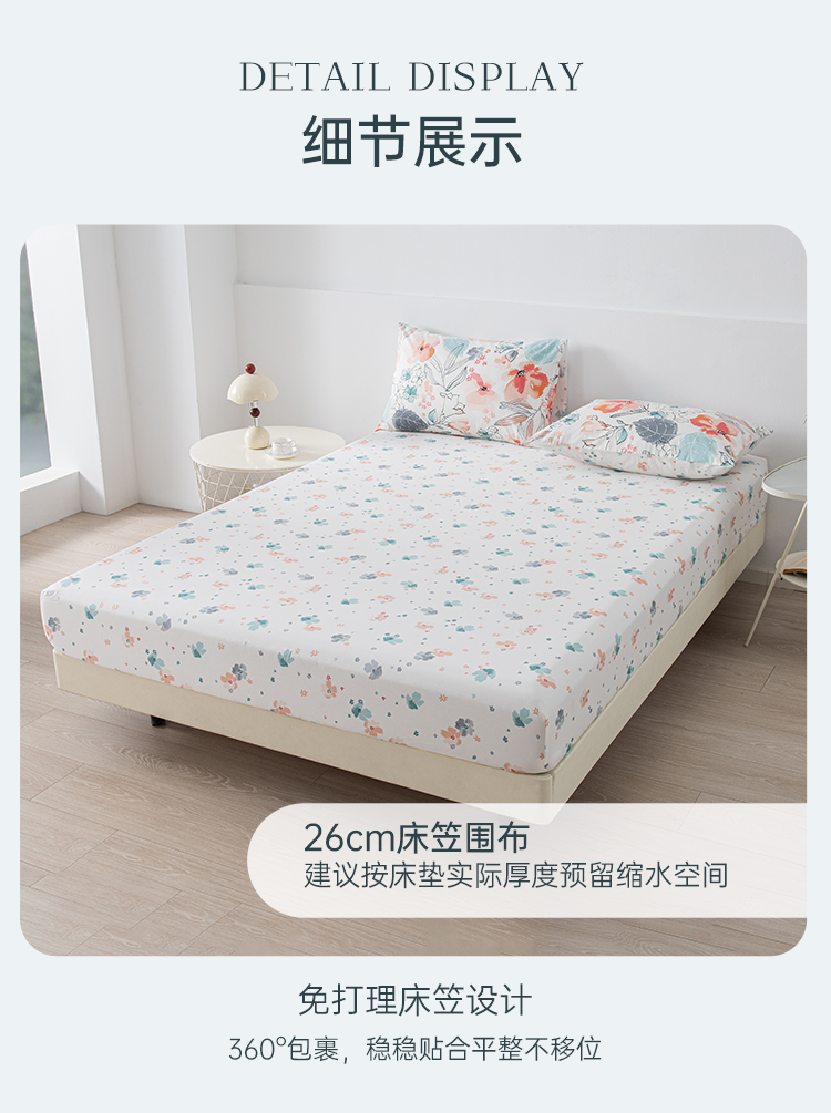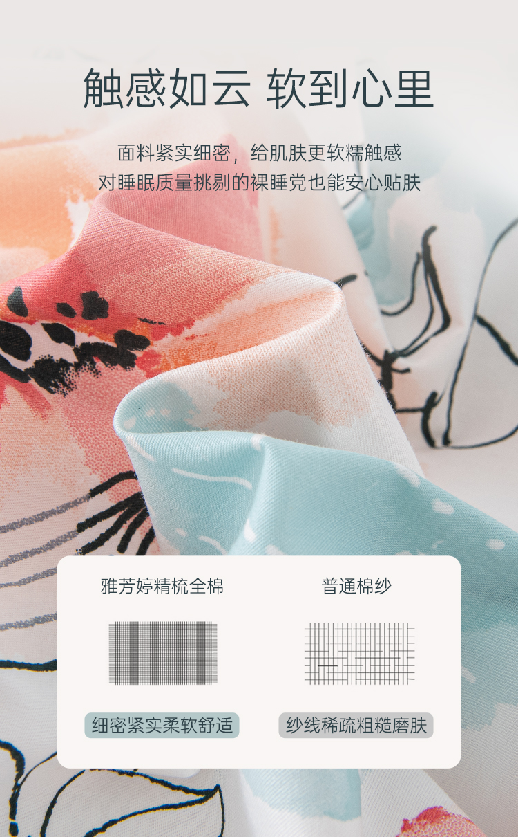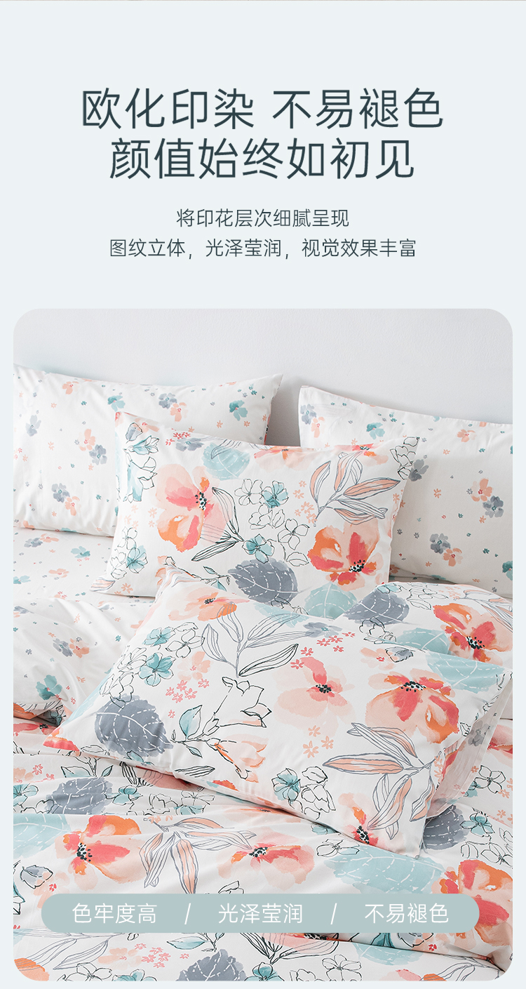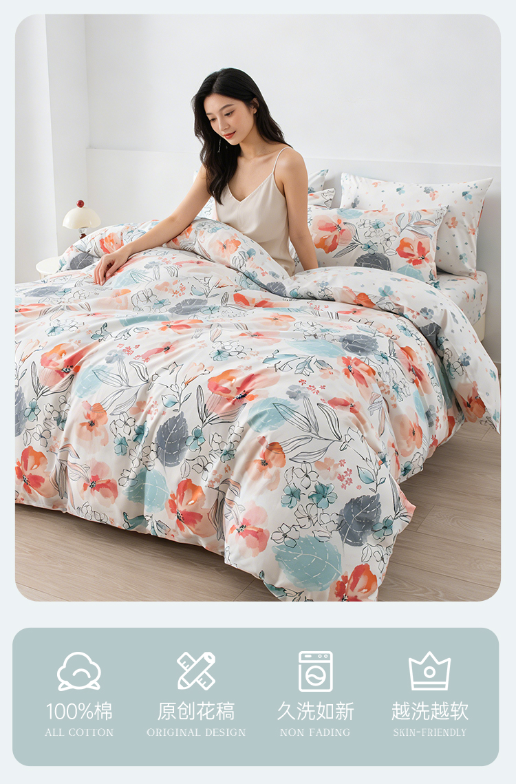 2026年春夏新款雅芳婷100%全棉四件套全棉床笠款双面印花被套套件
