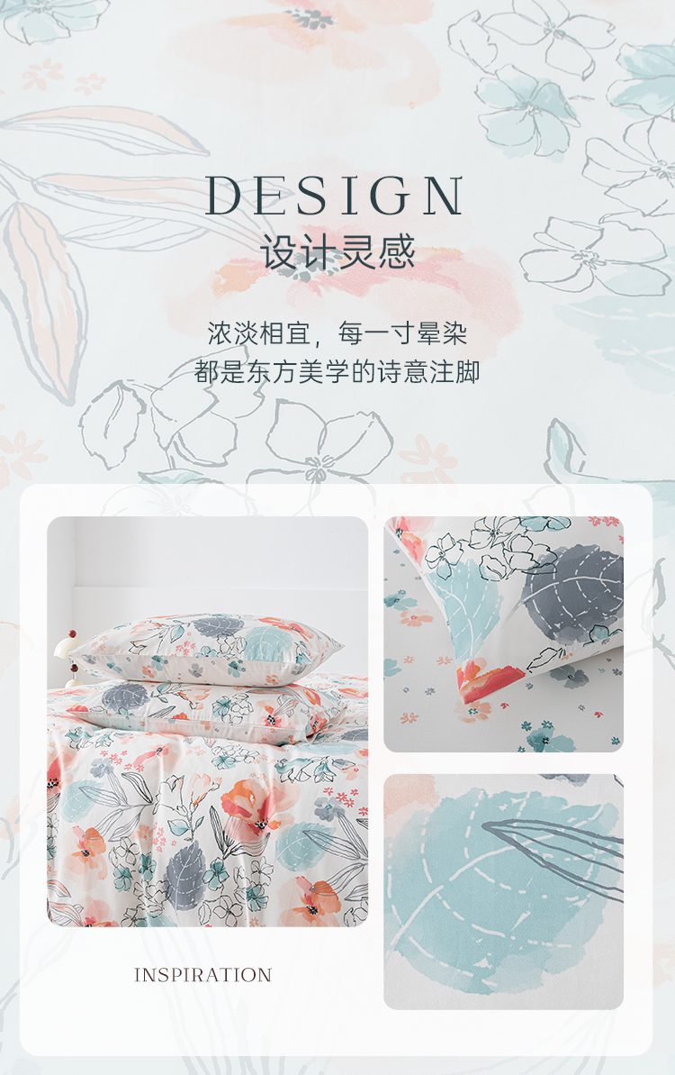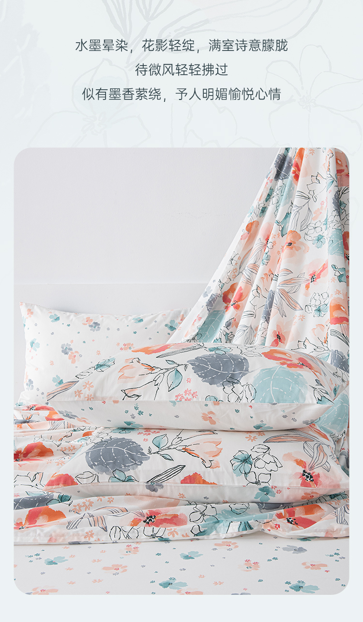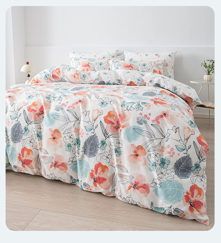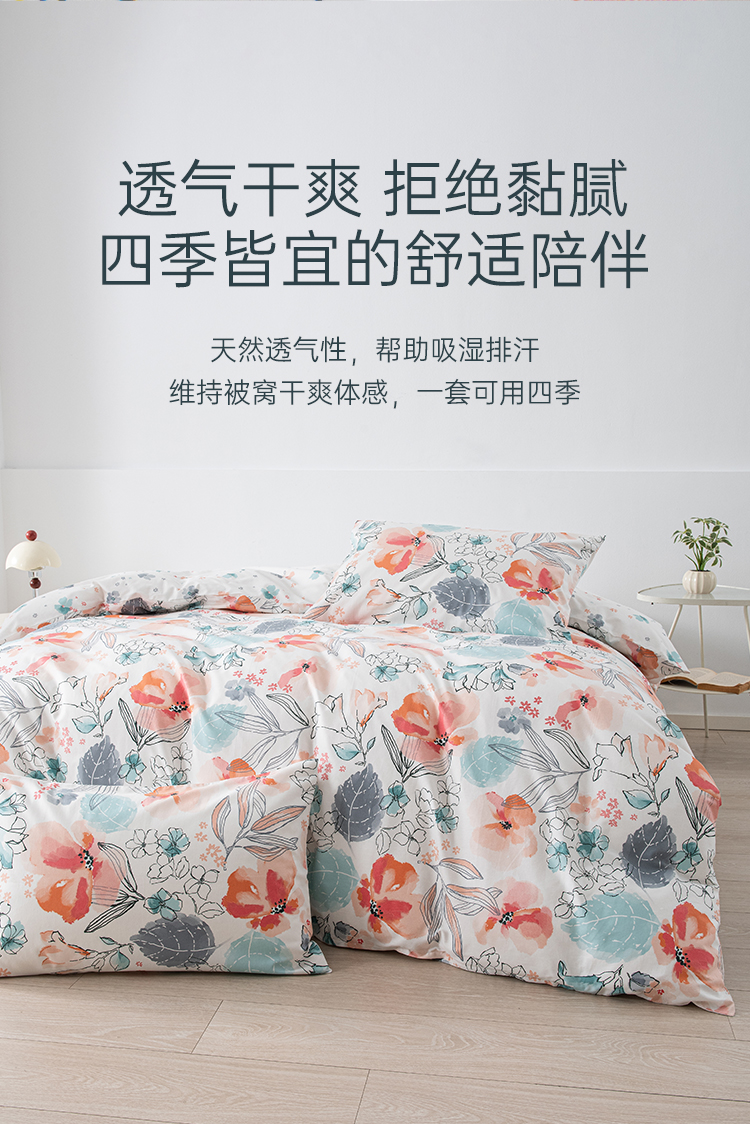 2026年春夏新款雅芳婷100%全棉四件套全棉床笠款双面印花被套套件