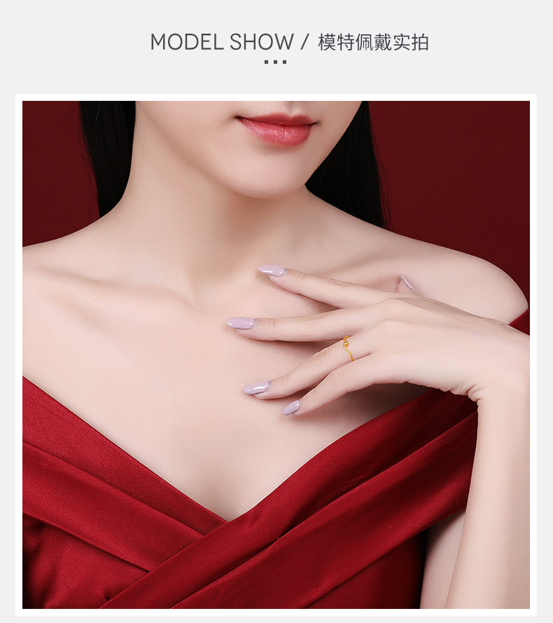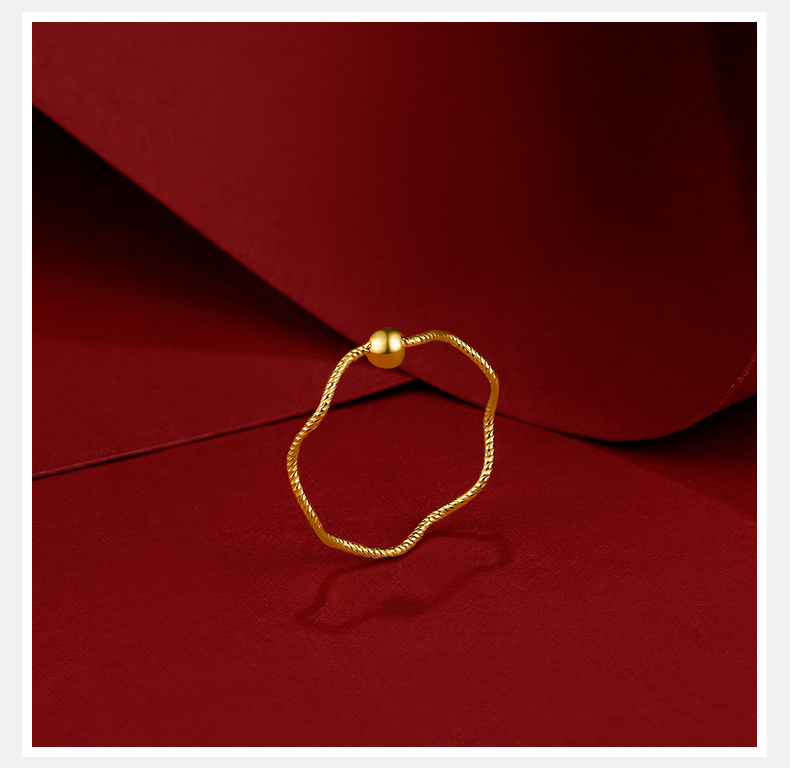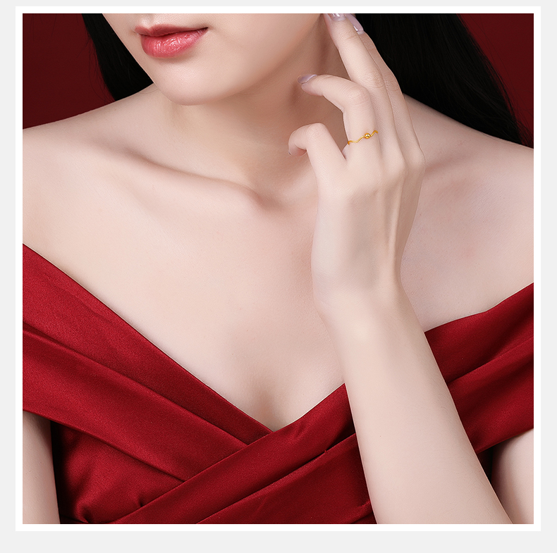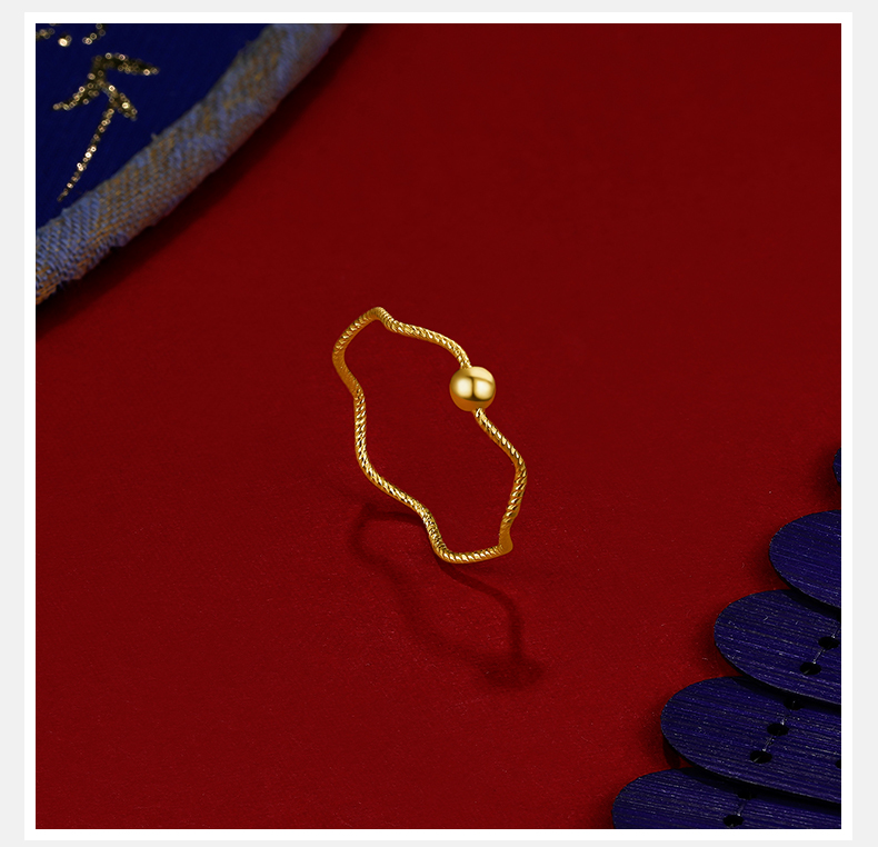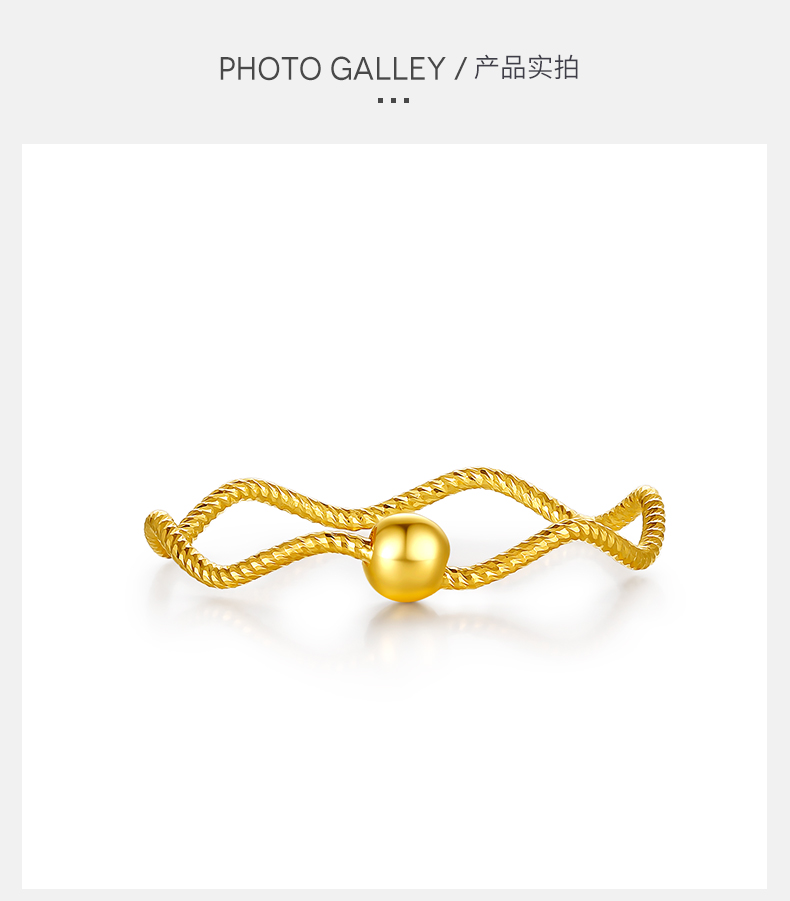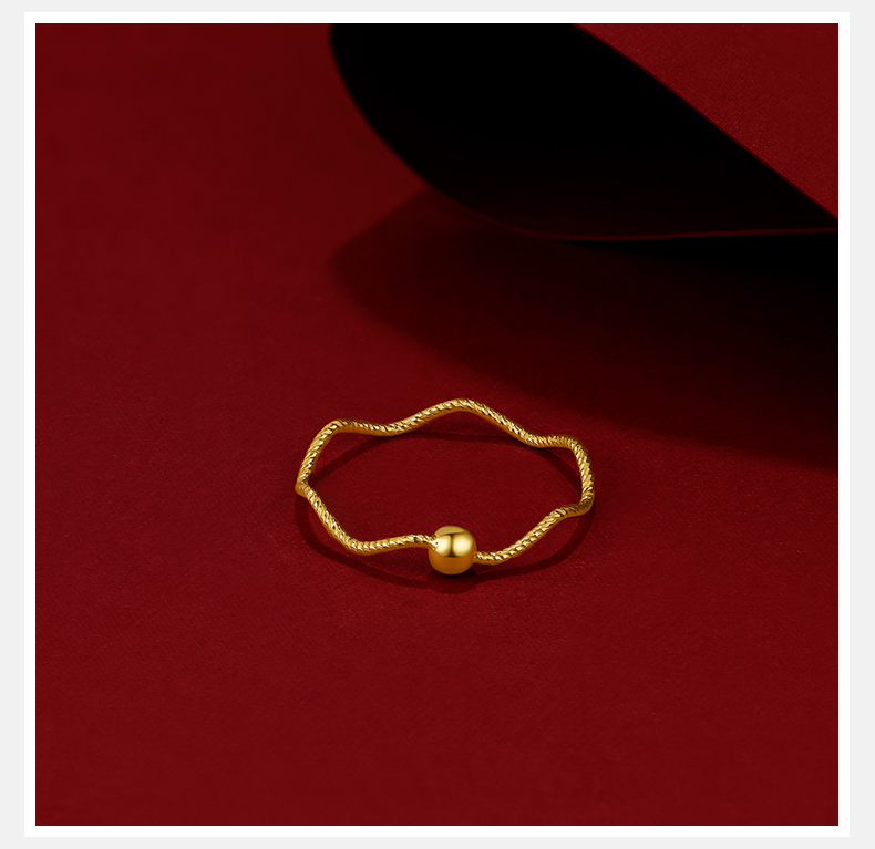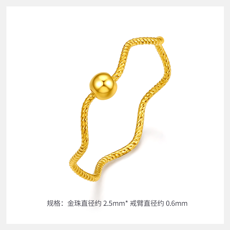 周六福黄金戒指女款足金小金珠浪花指环珠宝计价女士尾戒波纹