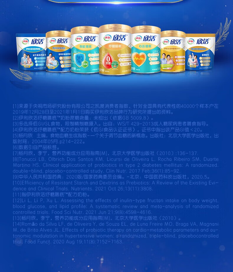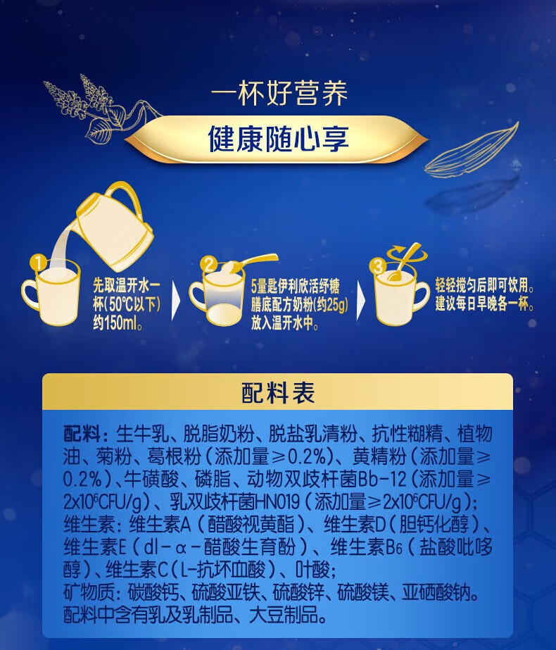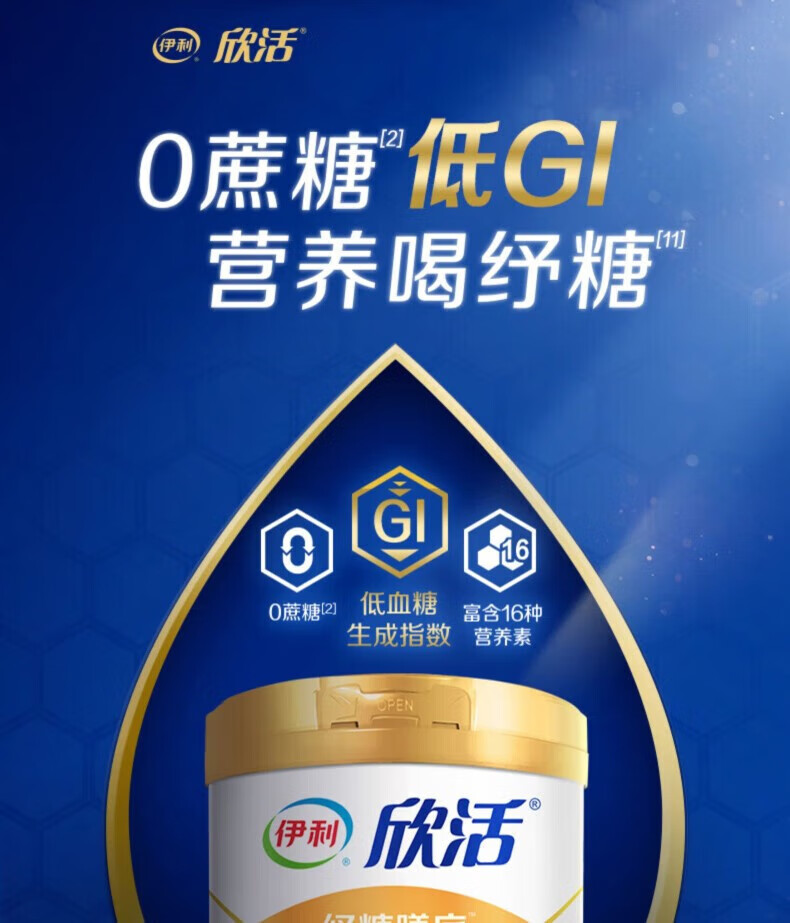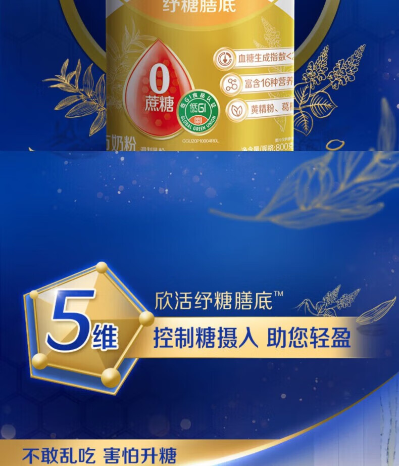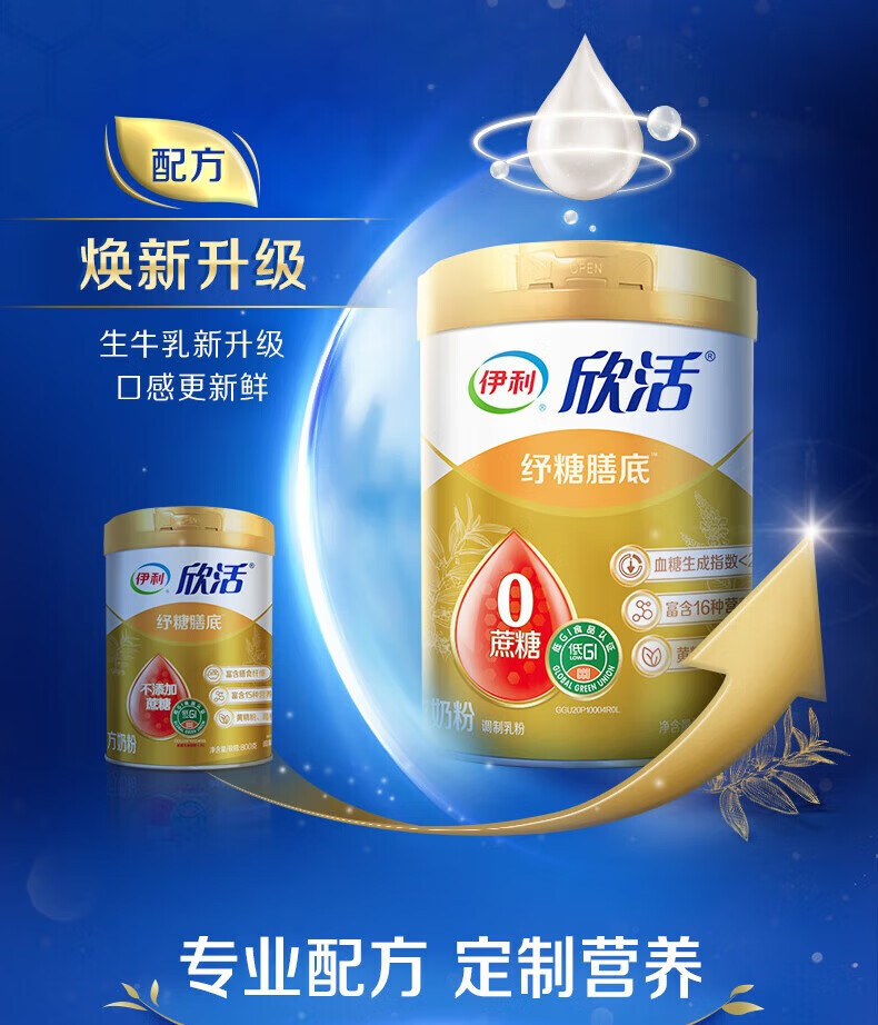 伊利欣活奶粉中老年纾糖膳底800g罐装富含膳食纤维0蔗糖早餐 冲饮 1罐(送350g奶粉+礼盒)