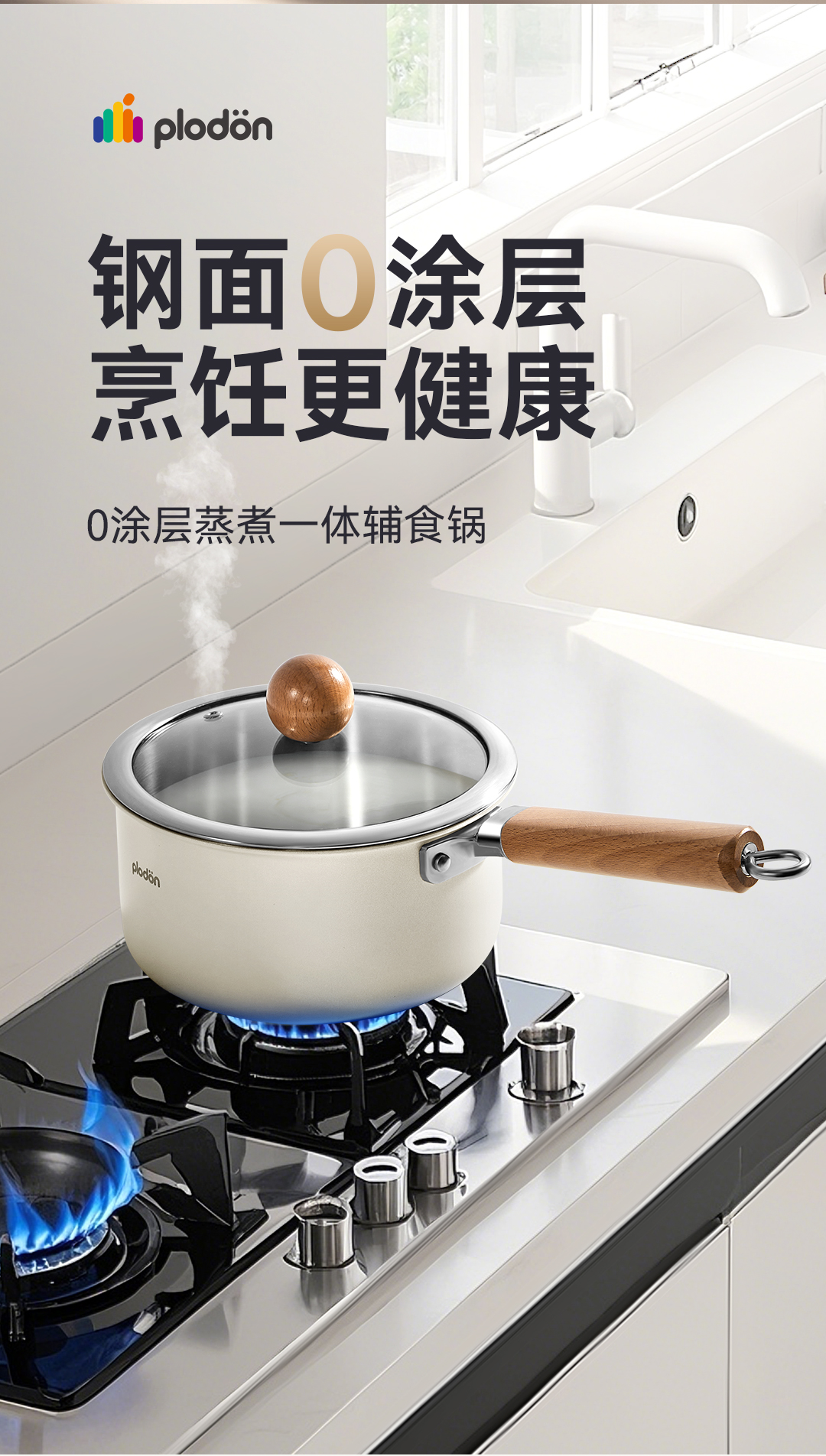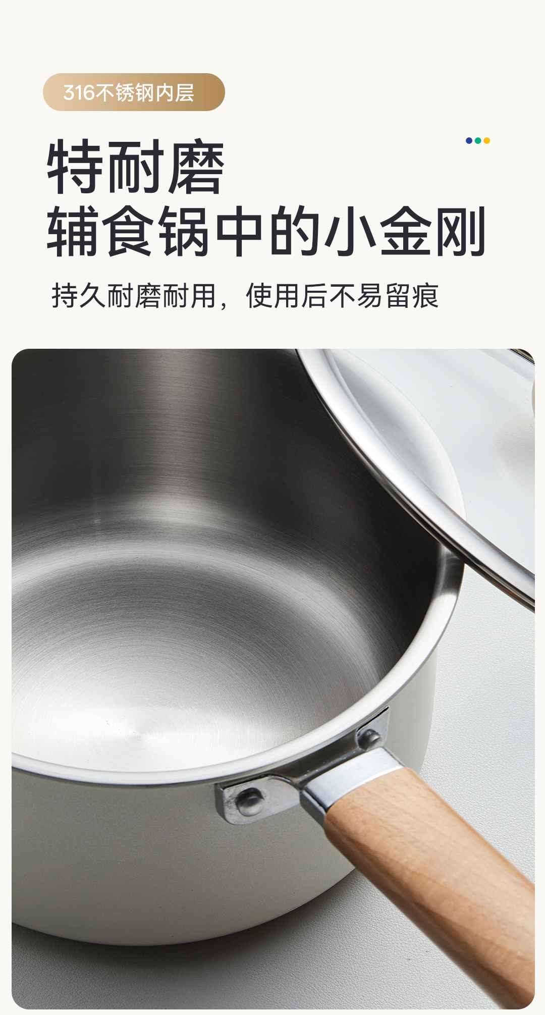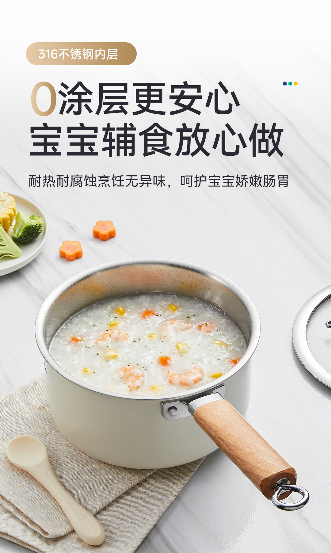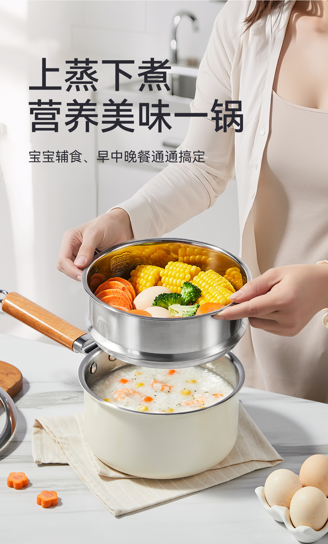 浦利顿小奶锅婴儿辅食锅宝宝316不锈钢泡面锅不粘多功能蒸煮一体