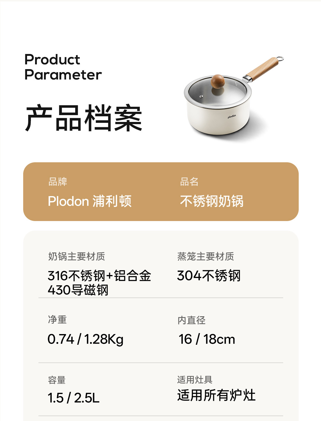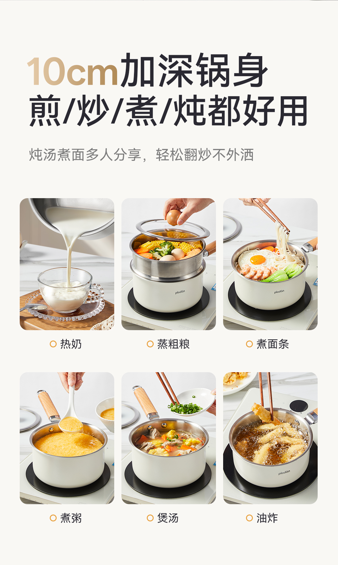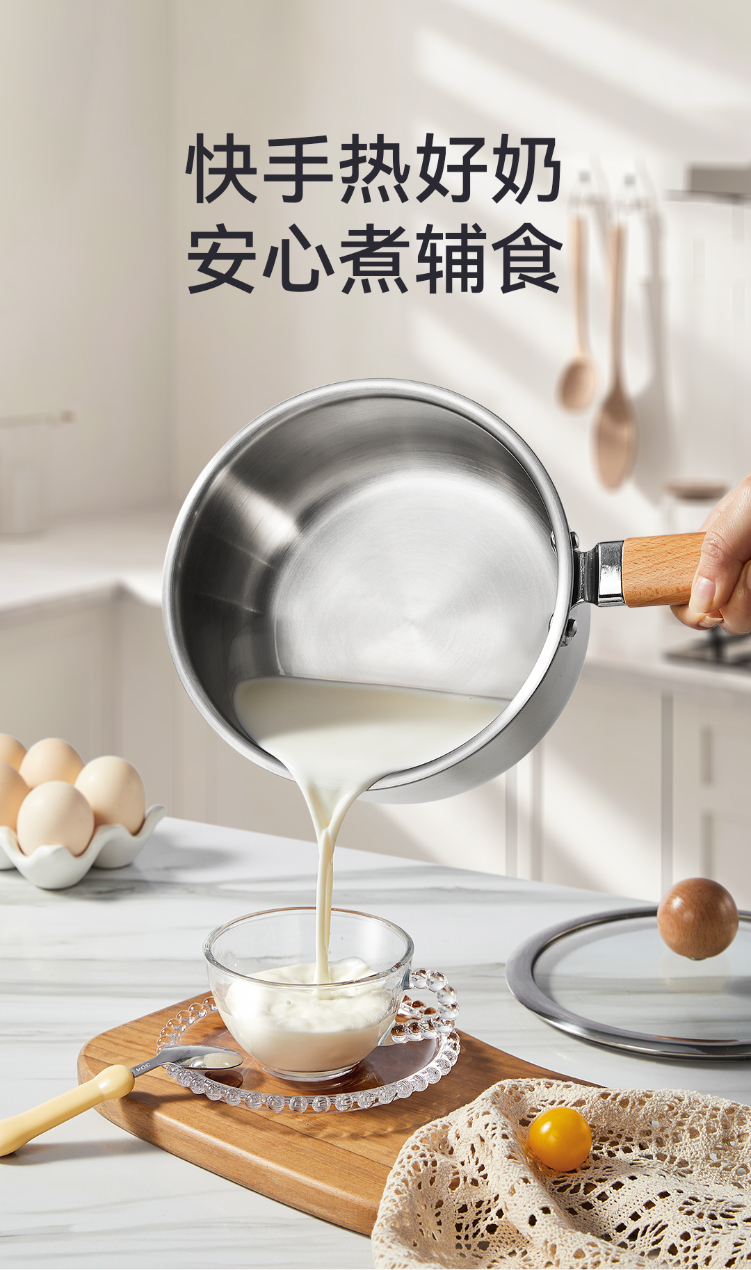 浦利顿小奶锅婴儿辅食锅宝宝316不锈钢泡面锅不粘多功能蒸煮一体