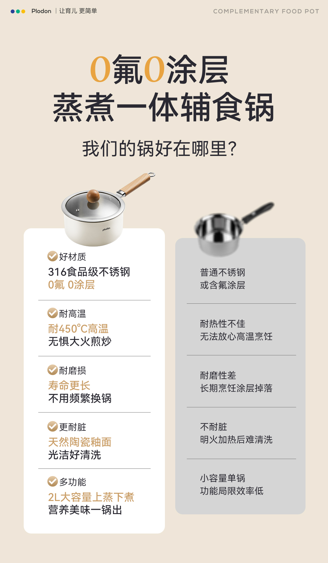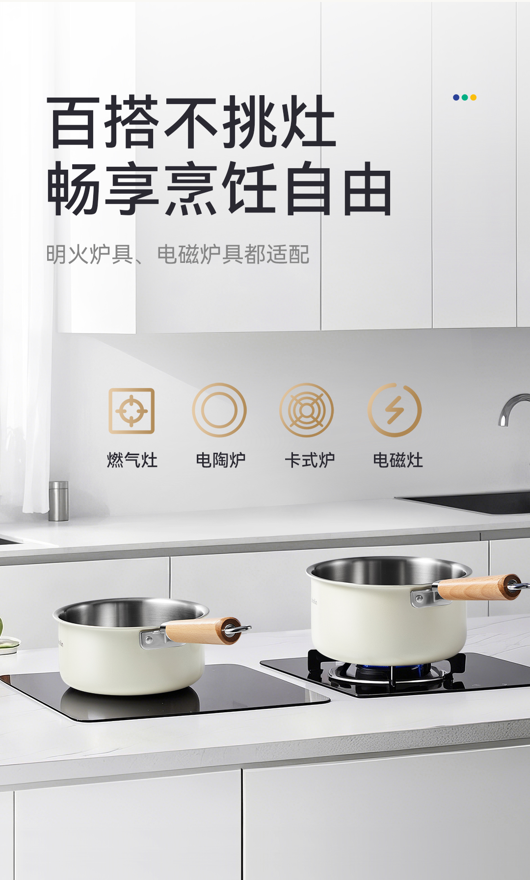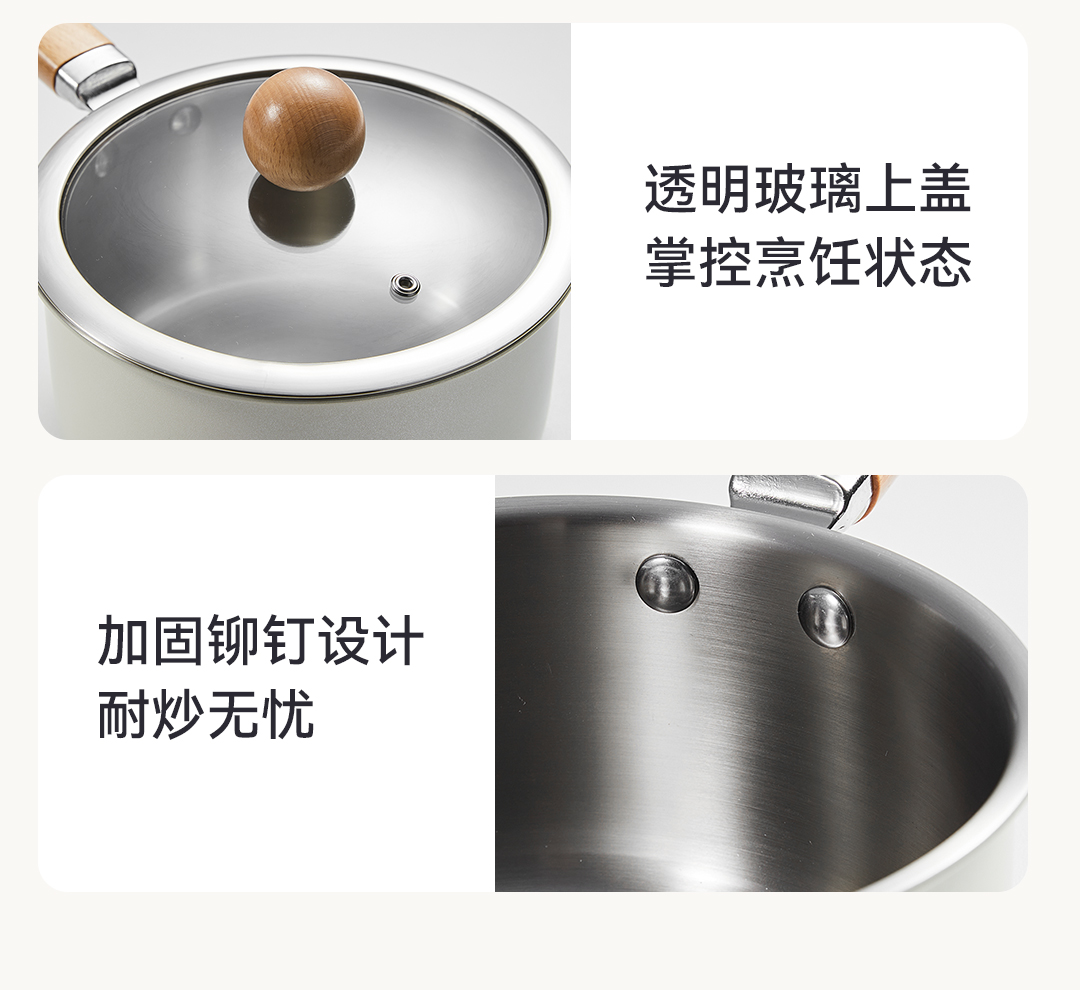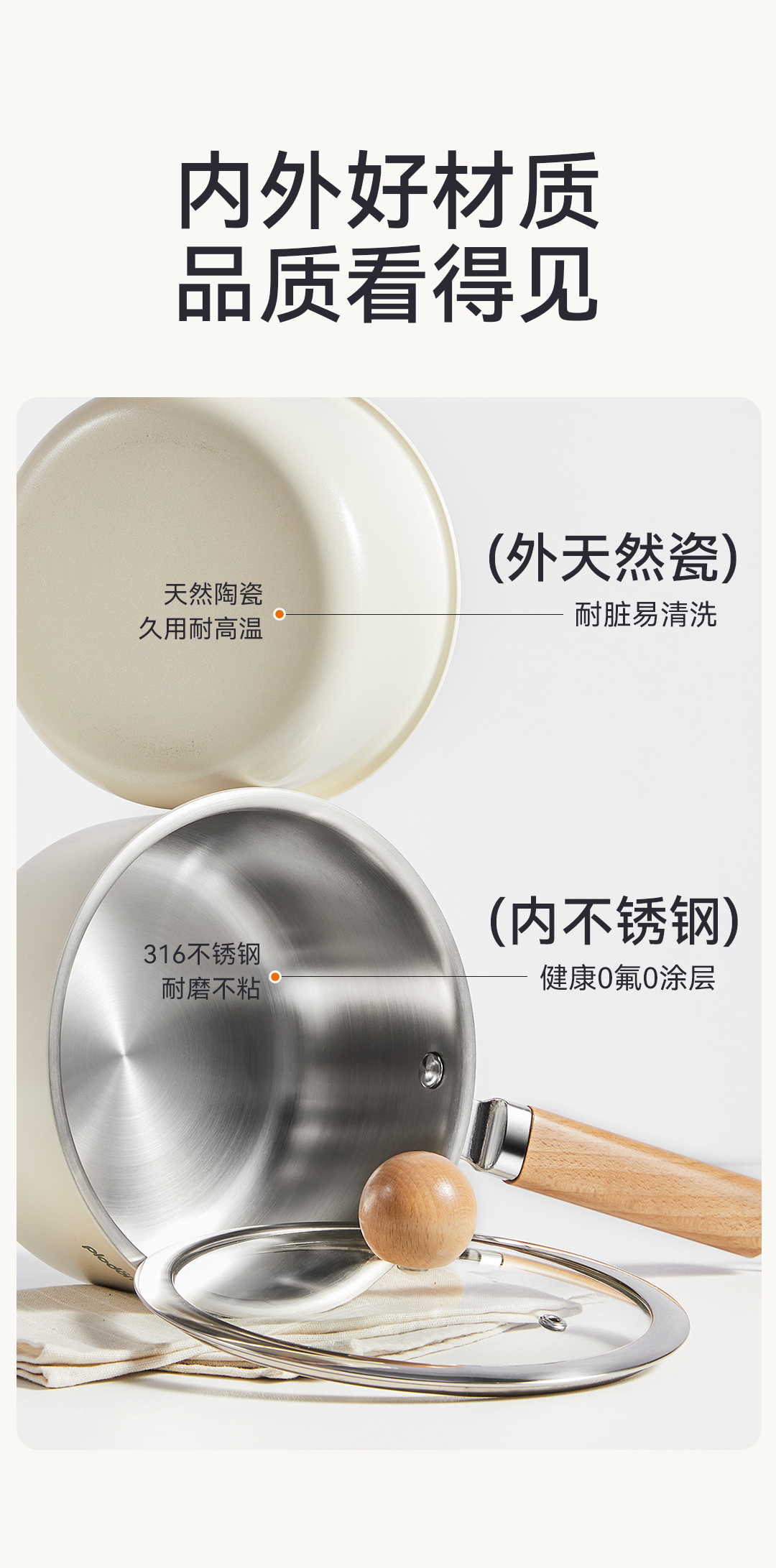 浦利顿小奶锅婴儿辅食锅宝宝316不锈钢泡面锅不粘多功能蒸煮一体