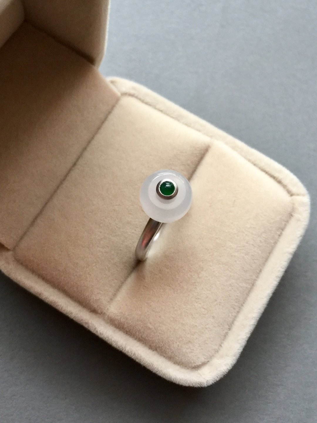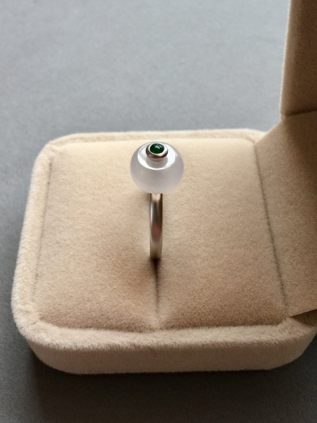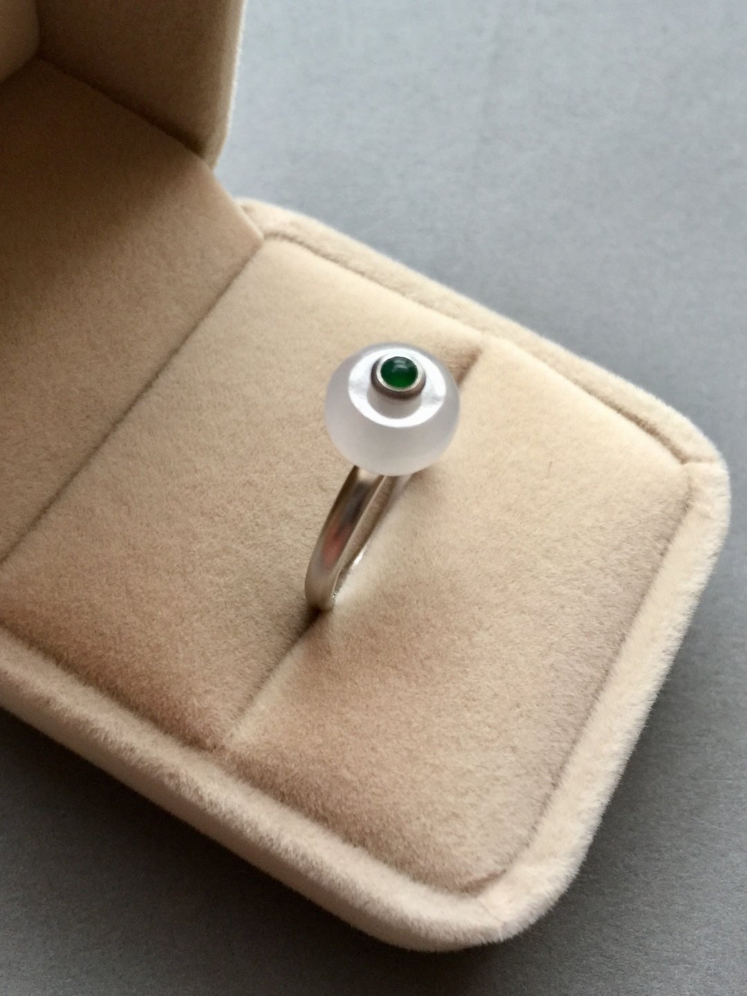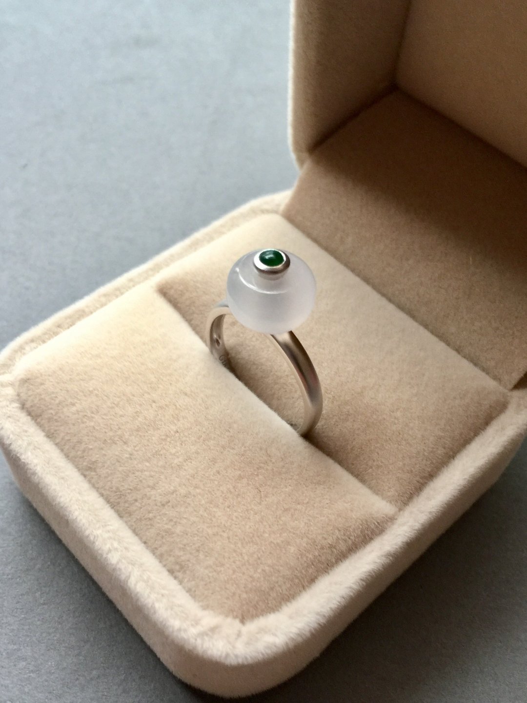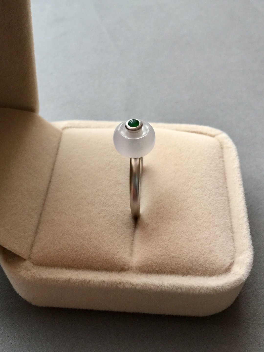 转转转,转出新年好运气,冰种翡翠转运珠戒指,路路通种水晶莹剔透,珠子9.9*9.9*5.9mm,厚实饱满,18k白金镶嵌,磨砂质感,顶珠阳绿翡翠,每个细节都是精致到位,路路通可旋转,新年好运气,戒圈13,这是按照以前的成本的定价,按照现在市场行情得三千多以上,性价比凸显,别错过