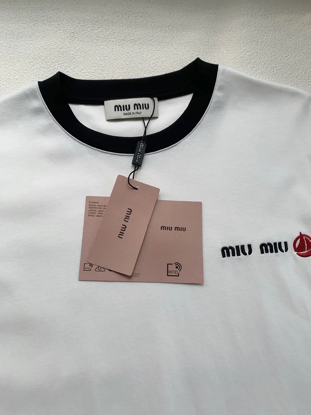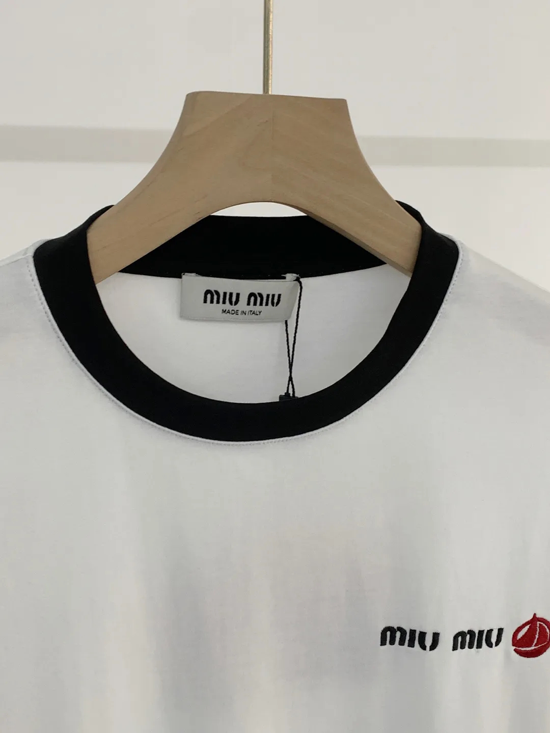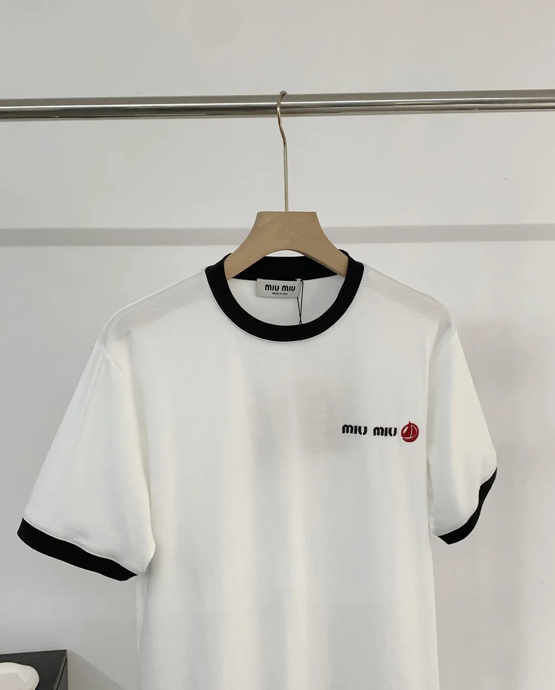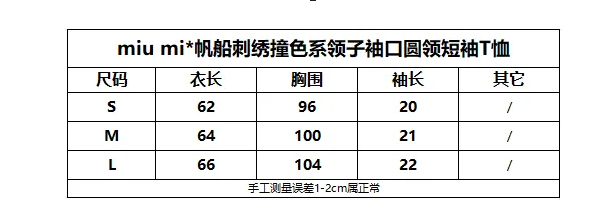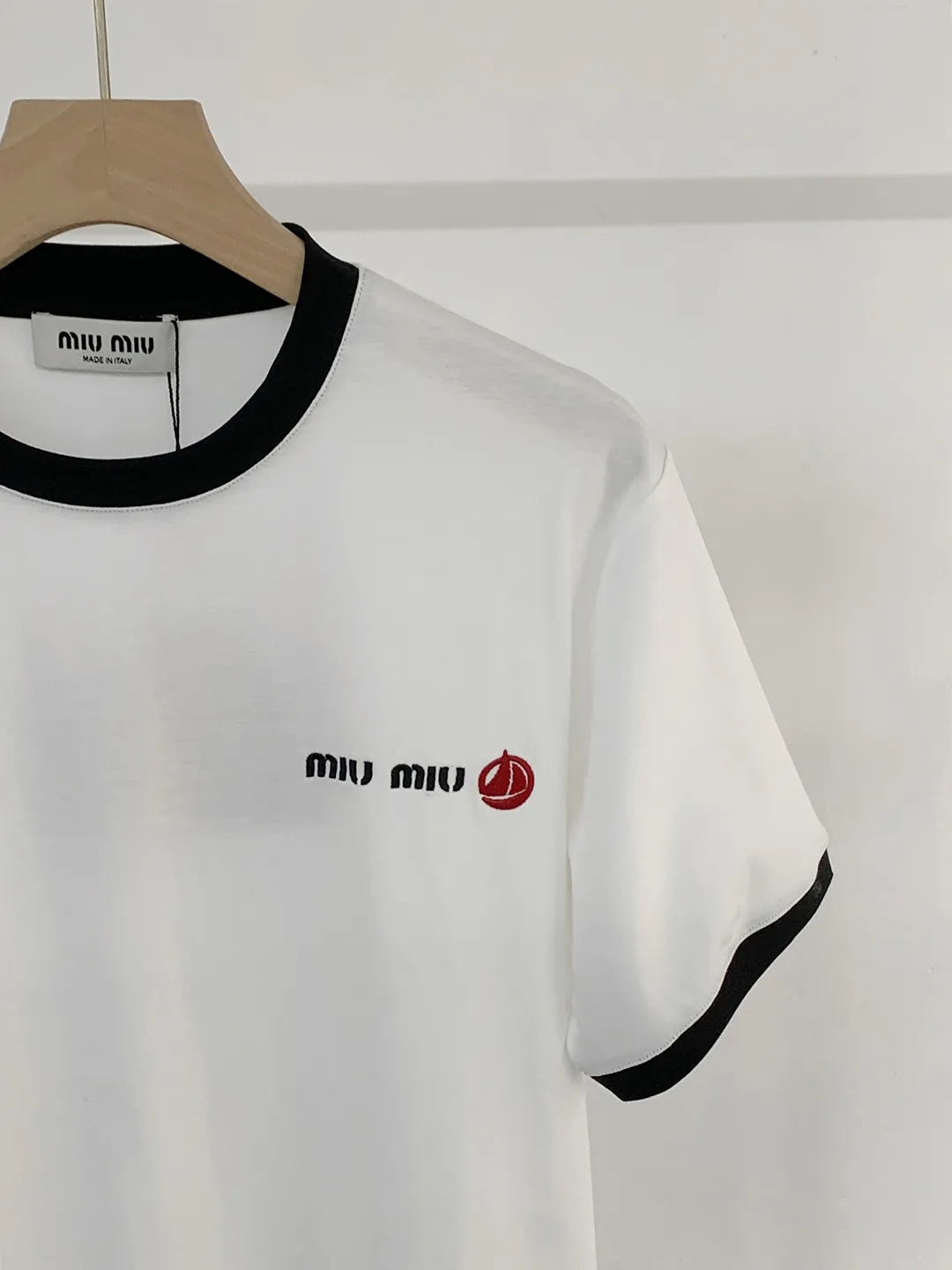 miu mi*缪缪帆船刺绣标圆领短袖 ,