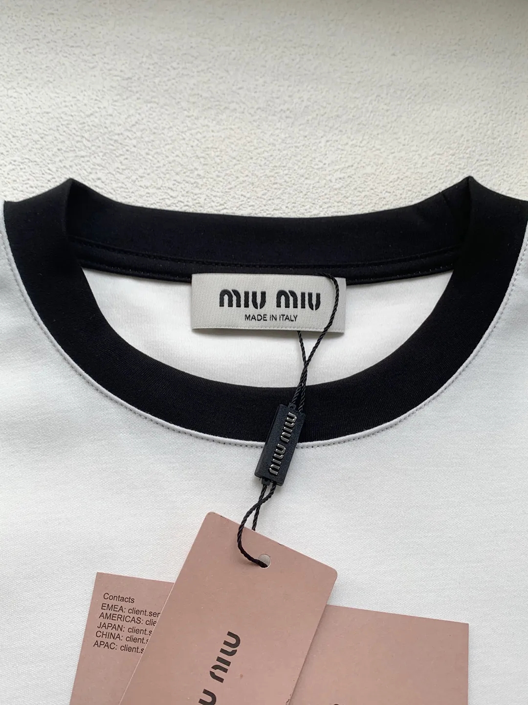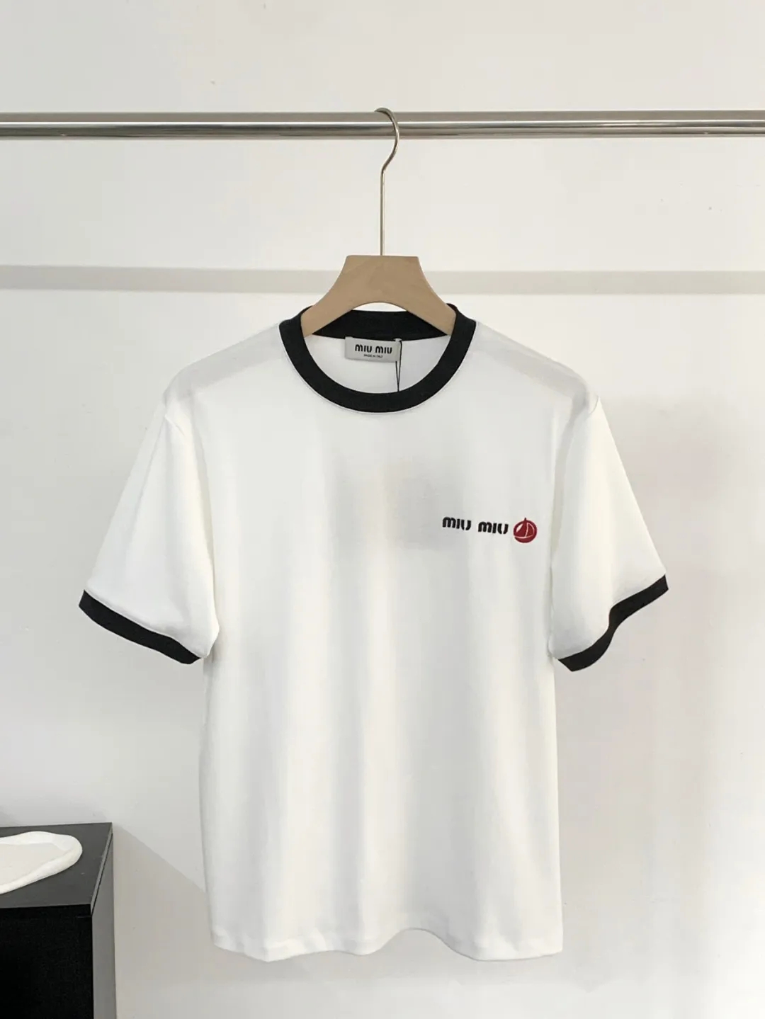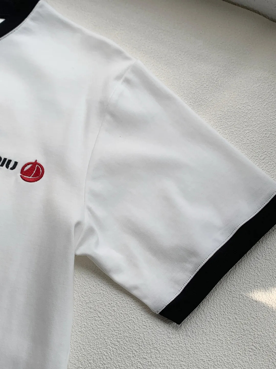 miu mi*缪缪帆船刺绣标圆领短袖 ,