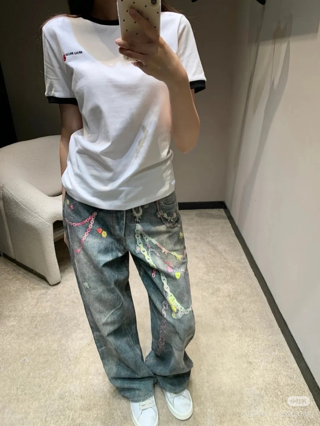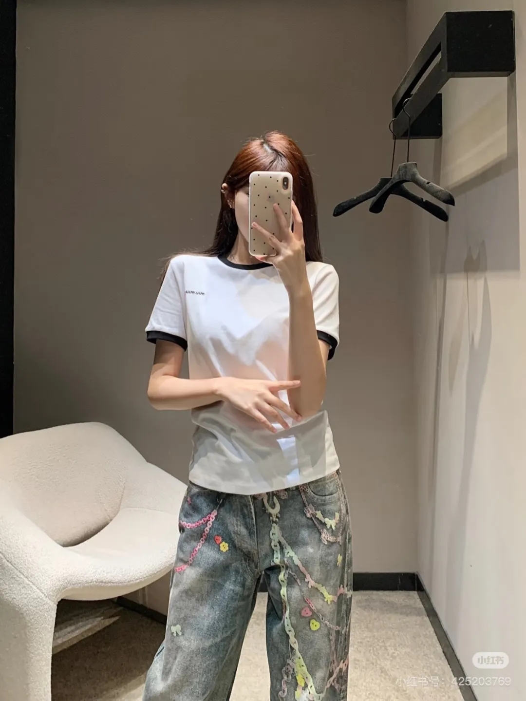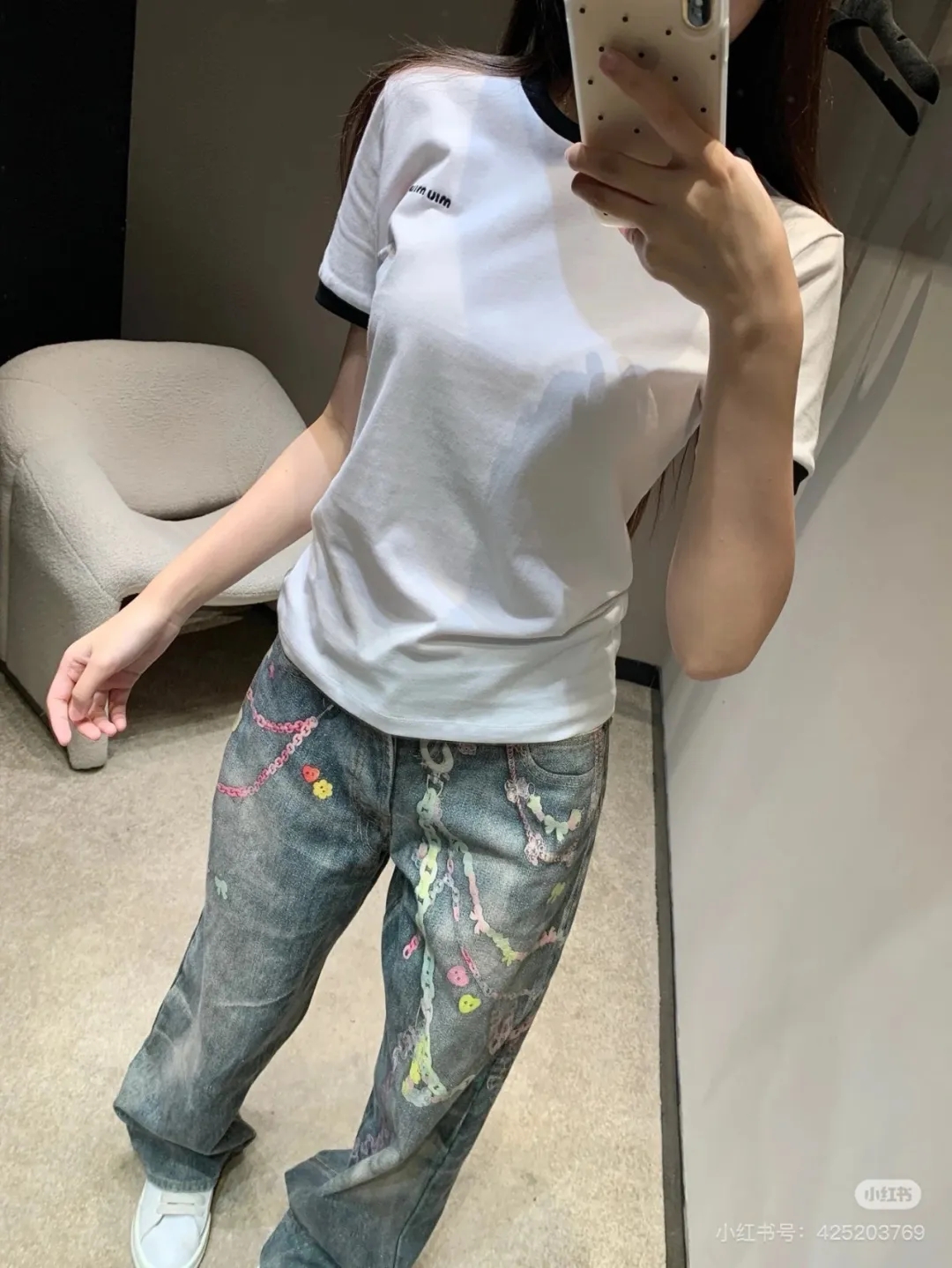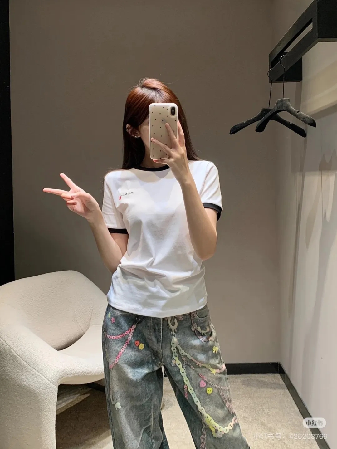 miu mi*缪缪帆船刺绣标圆领短袖 ,
