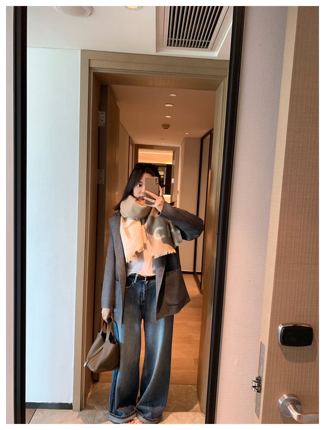 整条围巾是过度色顺过去的渐变色 13纬双面提花logo 交替渐变 就真的很难得!