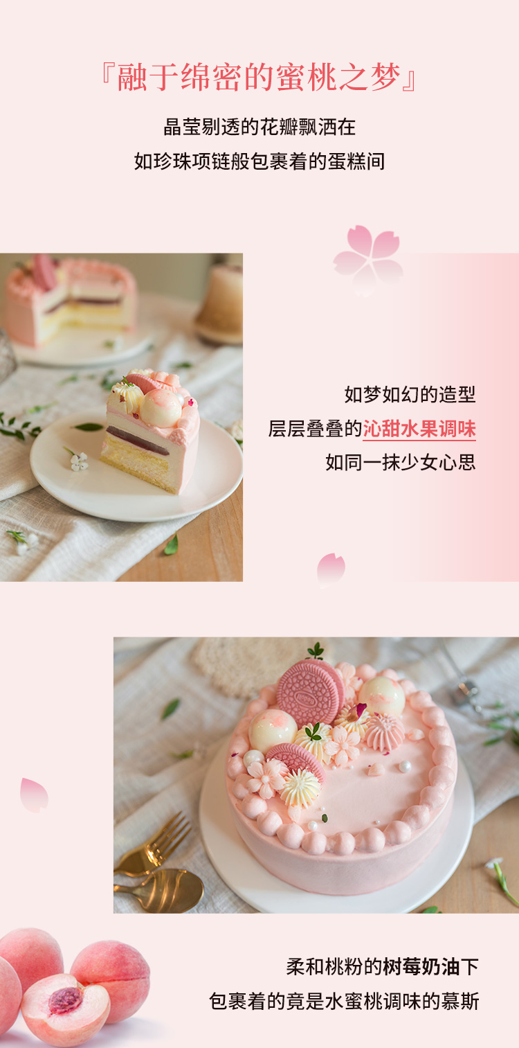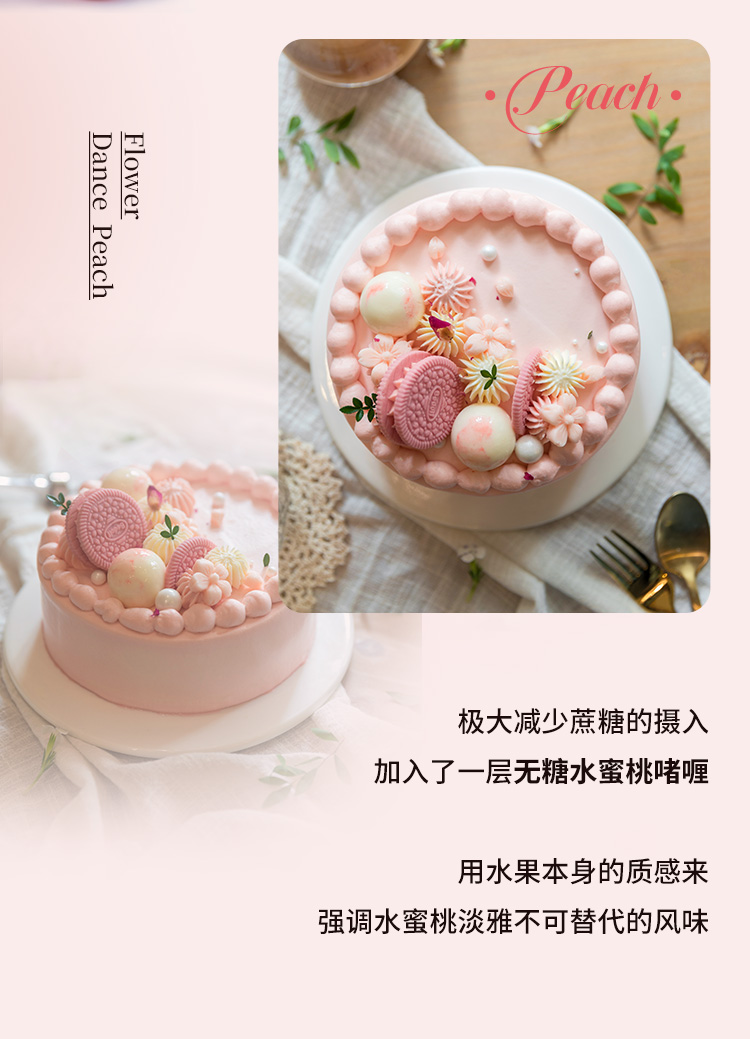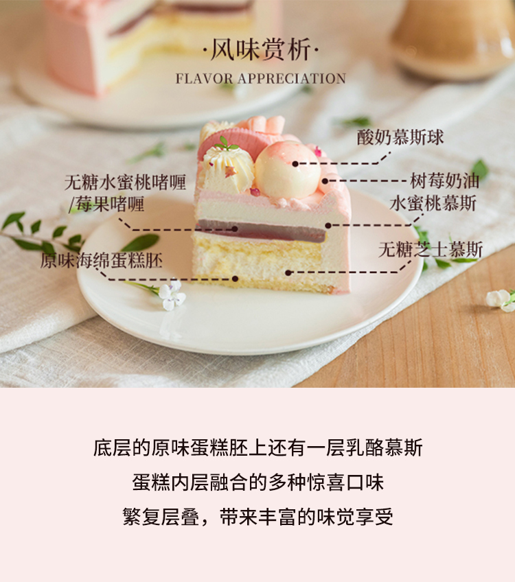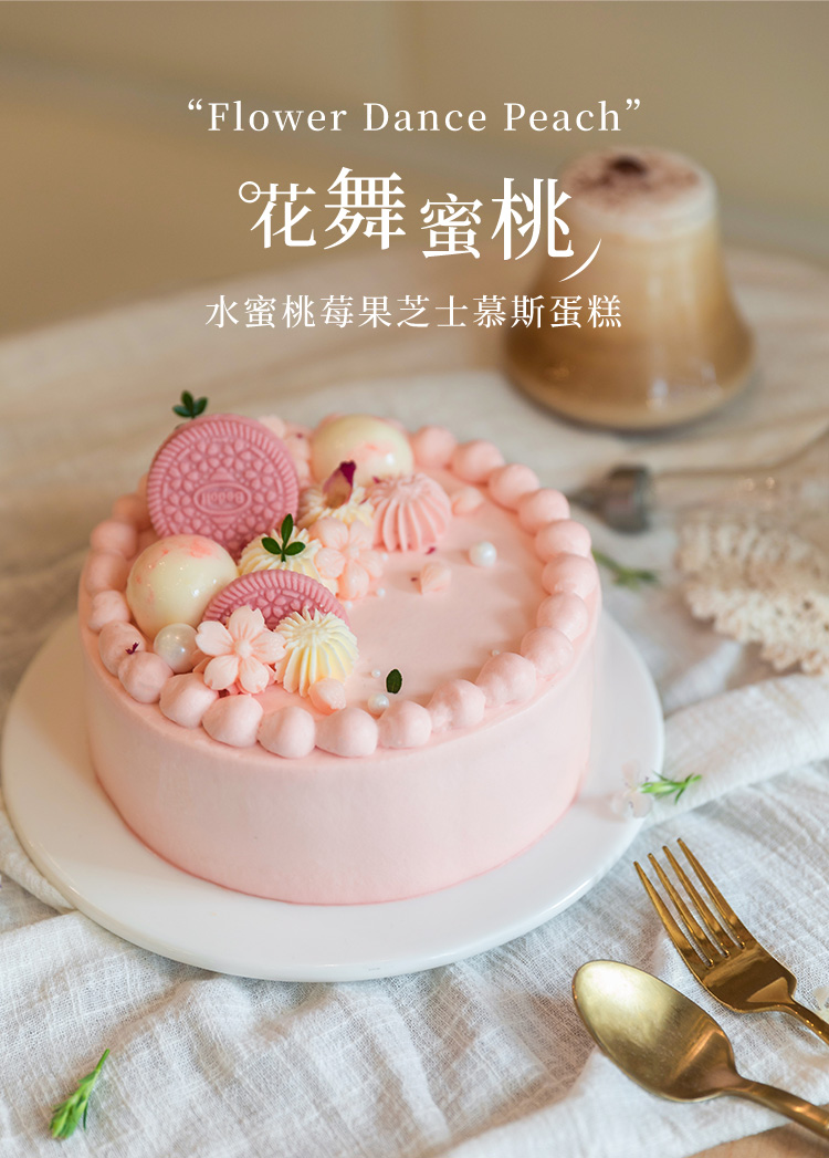 「新品」花舞蜜桃——低甜蜜桃莓果芝士慕斯奶油蛋糕【清甜蜜桃 沁甜绵软】
