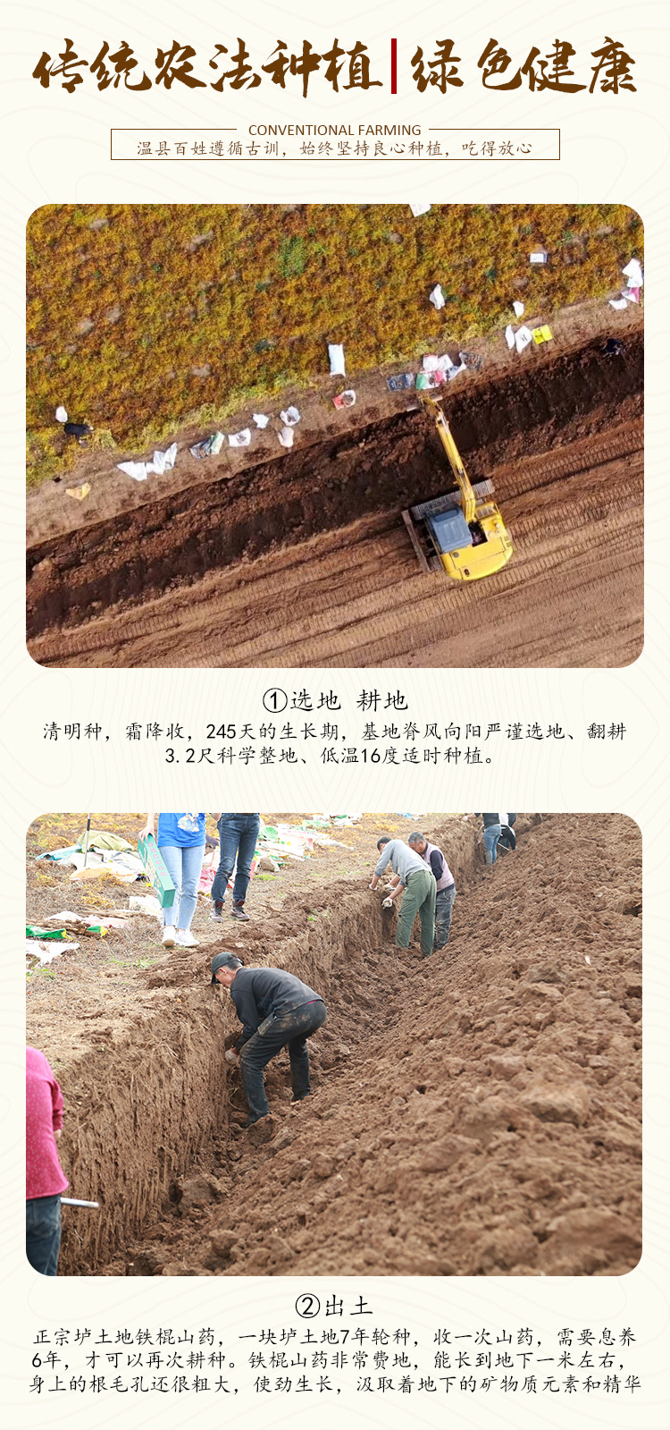 品名:垆土铁棍山药规格1:3斤尝鲜装 规格2:家庭4.5斤 规格3:彩箱4.5斤 规格4:礼盒4.5斤 包装方式:纸箱/彩箱/礼盒+网套 快递:顺丰 运费模板:新疆/西藏/内蒙/青海/黑龙江/吉林/辽宁/港澳台不发,海南/云南+7元,甘肃/北京/河北/山西 +2元/盒(含保温袋),一个地址多份的邮费叠加 发货时效:48-72h 发货地/产地:河南温县 保质期:收到后常温保存5-7天 生产日期:现挖现发 销售售卖期:10月-来年3月 周六周天、节假日除外,早上十点之前的订单是48小时发货 ,到货时间约为2-5天,请您耐心等待 |