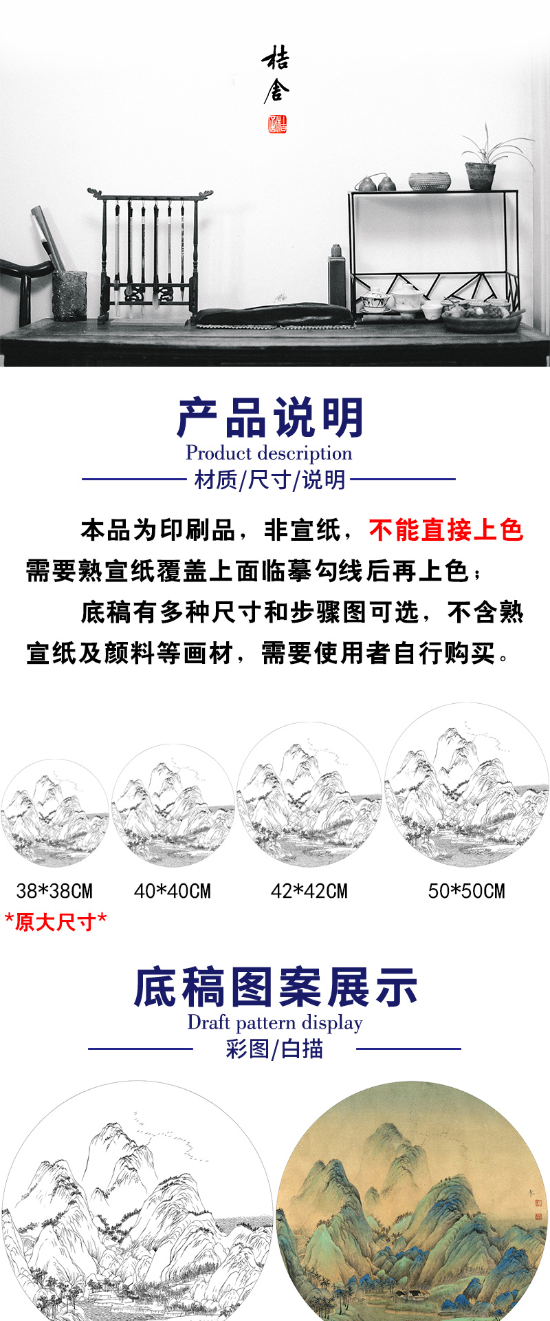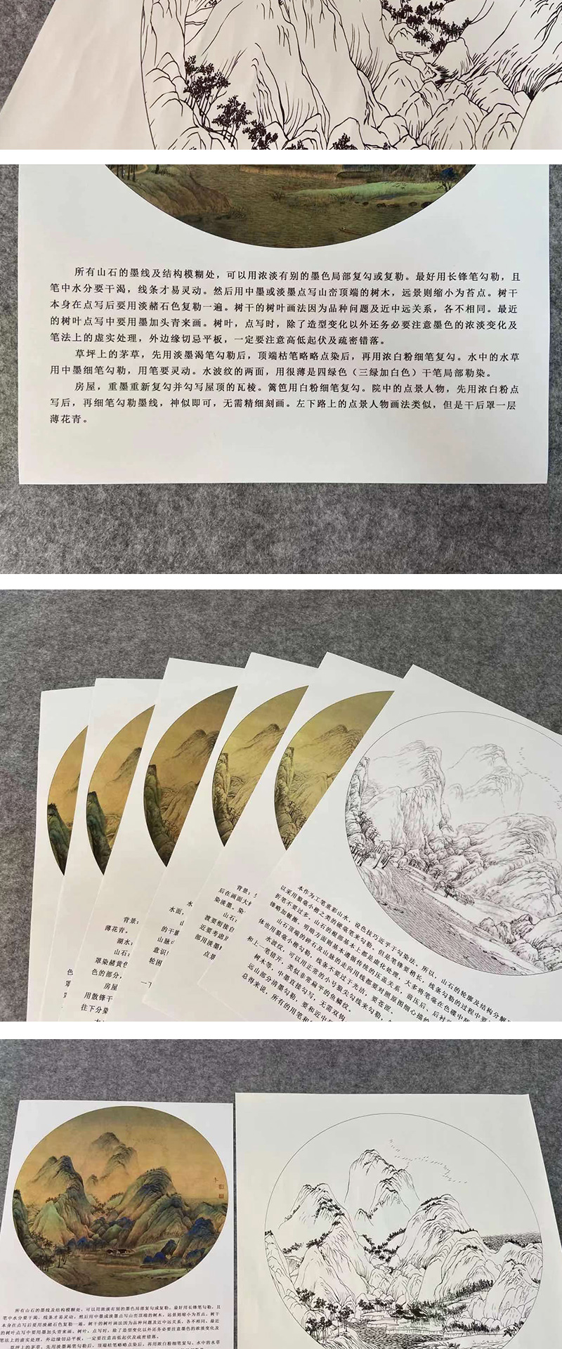 【有步骤、大彩图】李晓明工笔画白描底稿山水小品画《千里江山图》圆形局部KG19