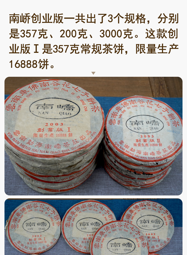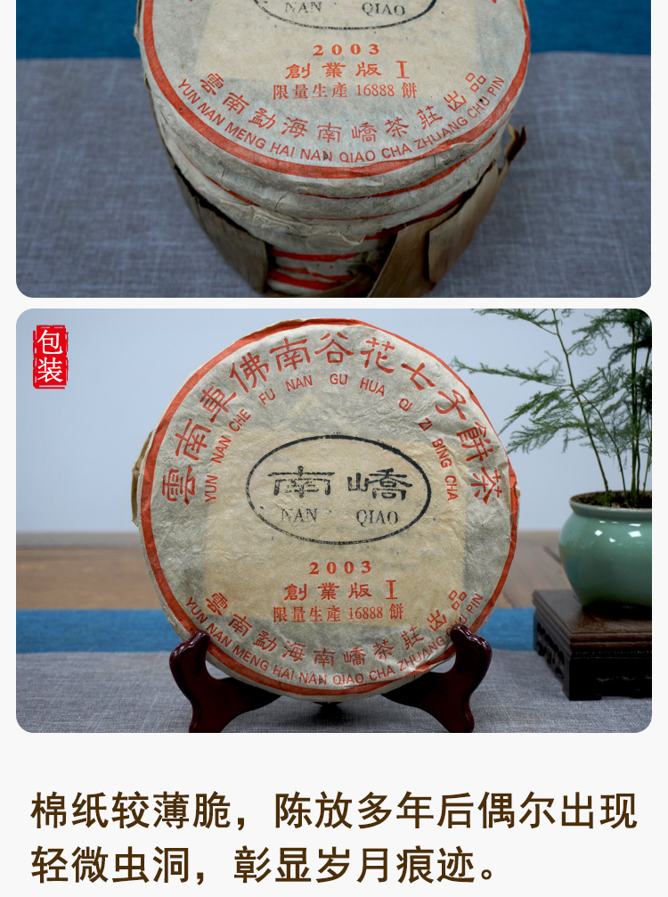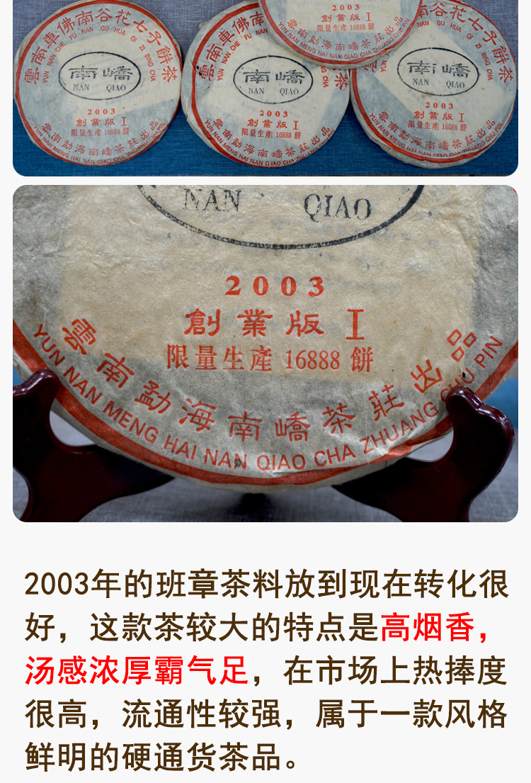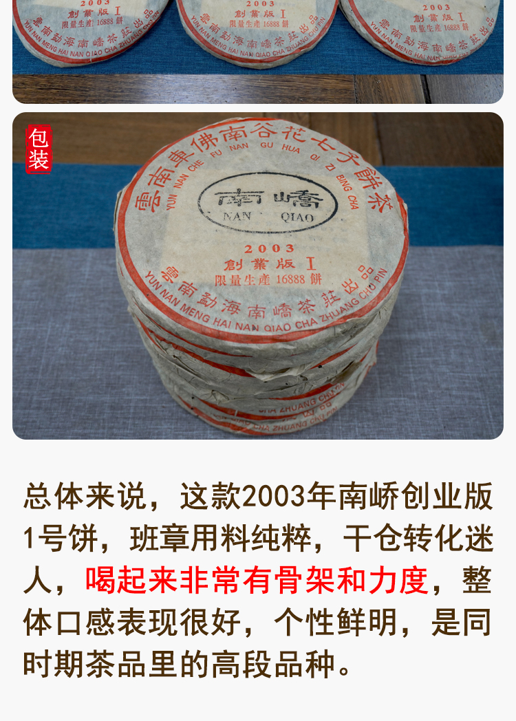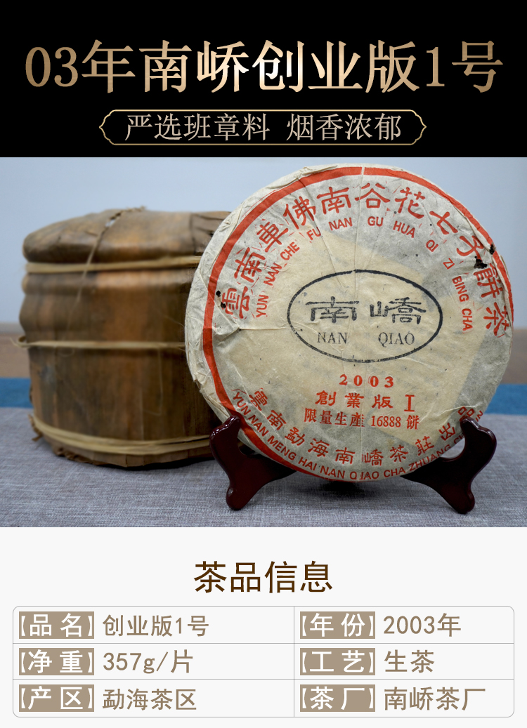 【珍藏品】2003年南峤创业版I号大饼357克一片 标价为单片价格 行业明星茶品经典普洱茶老生茶干仓真品