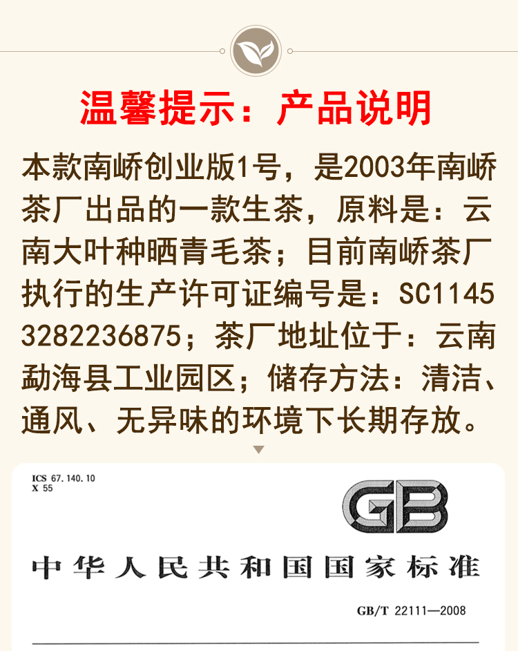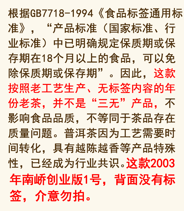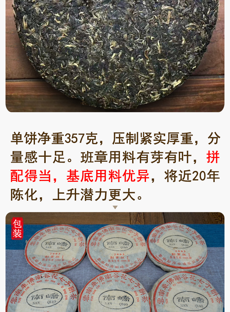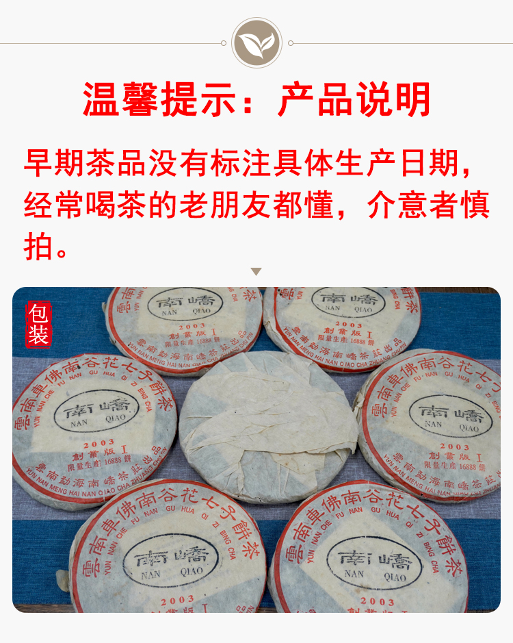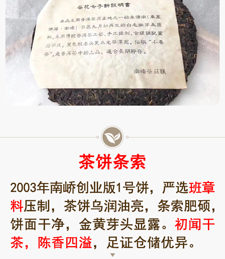 【珍藏品】2003年南峤创业版I号大饼357克一片 标价为单片价格 行业明星茶品经典普洱茶老生茶干仓真品