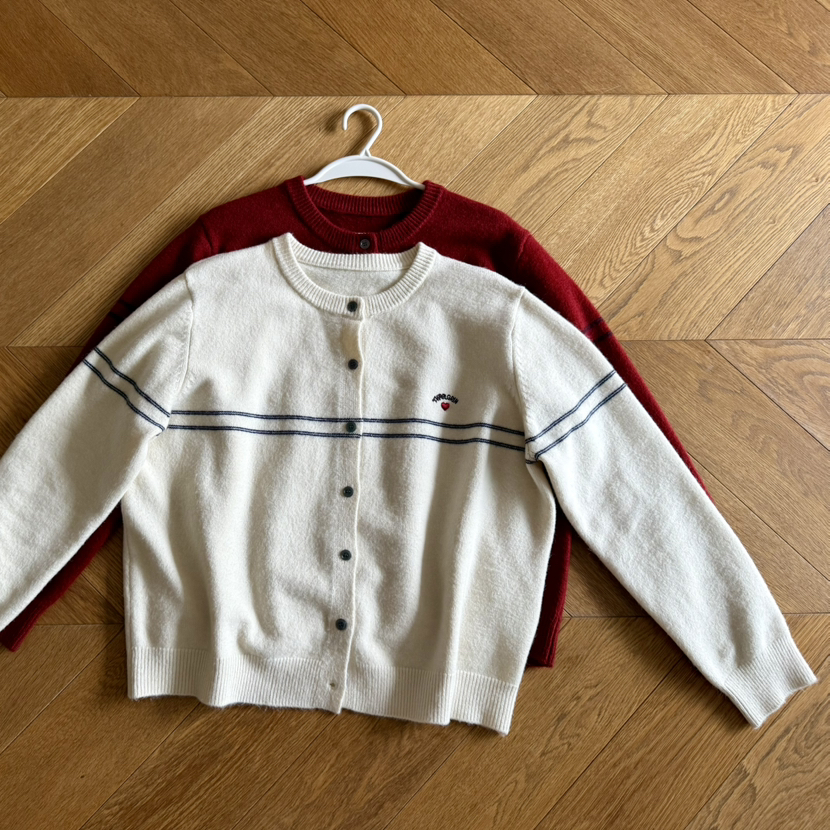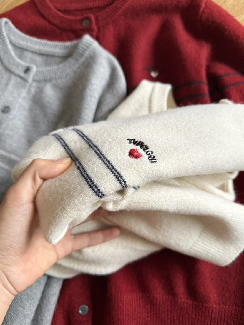 秋冬zui新款,经典系列,极简主义者的zui爱,一侧做了爱心绣标,打破单调和老气感,视觉更减龄~经典的圆领直筒开衫版型,上身立体有舒适余量 包容性佳,能很好的修饰身材 利落显瘦,可以用来当小外套或者是中间层搭配,都非常实穿,无论胖瘦都能轻松驾驭,藏肉效果特别好,且舒适自在不臃肿,不挑个子,小个子姐妹也非常好驾驭,轻松打造黄金身材比例
