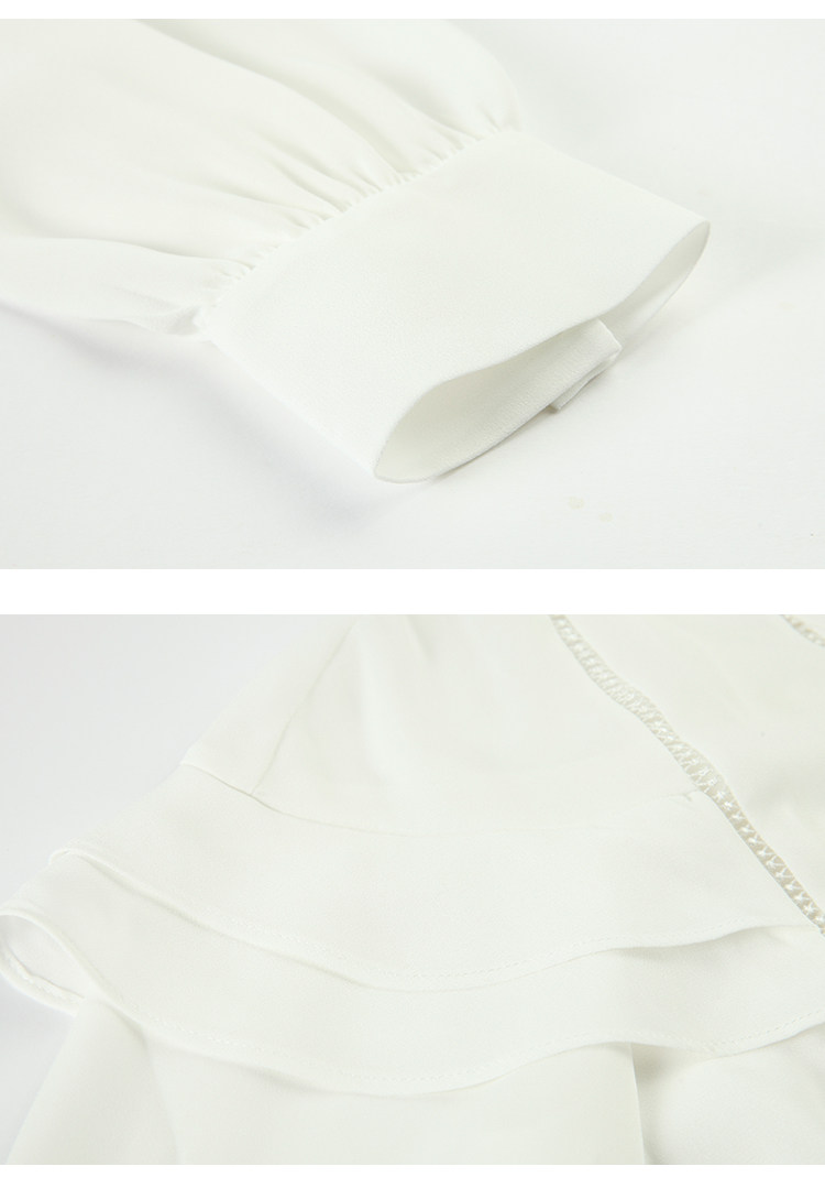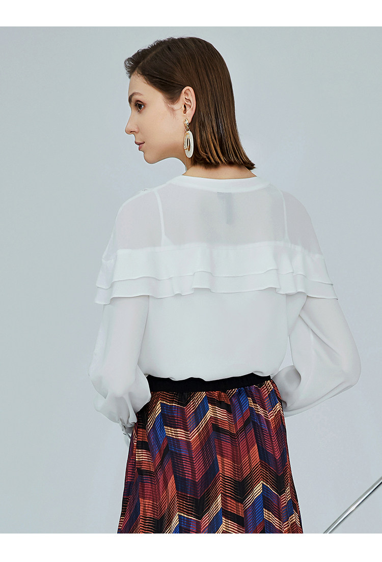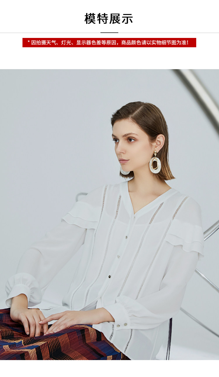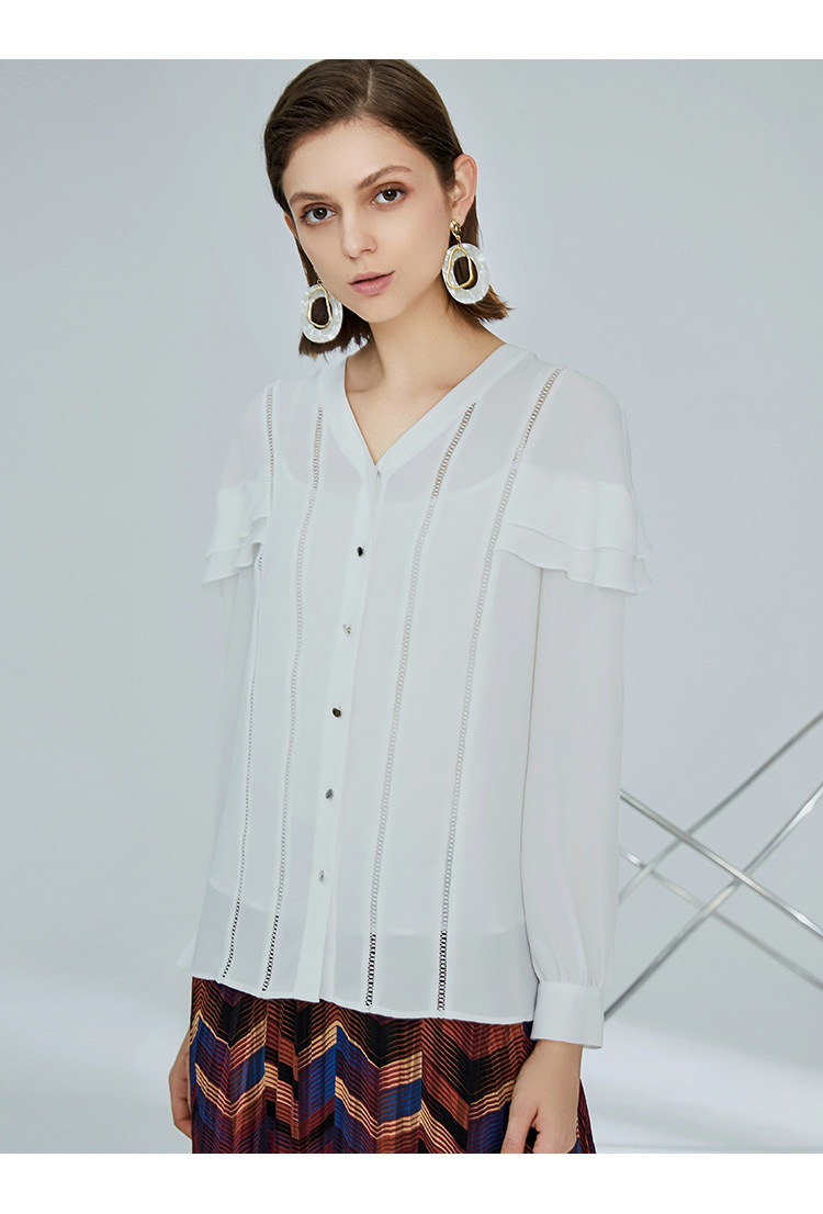 VIMAGE纬漫纪女装秋季新品甜美荷叶边镂空V领百搭通勤衬衫V1209812