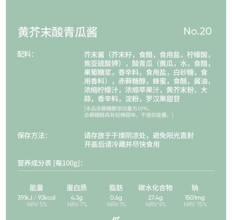 【品牌搭子专场】VEpiaopiao No.20 黄芥末酸青瓜酱【牛排/汉堡/三明治】