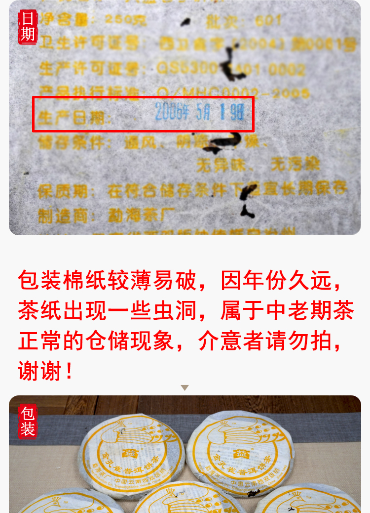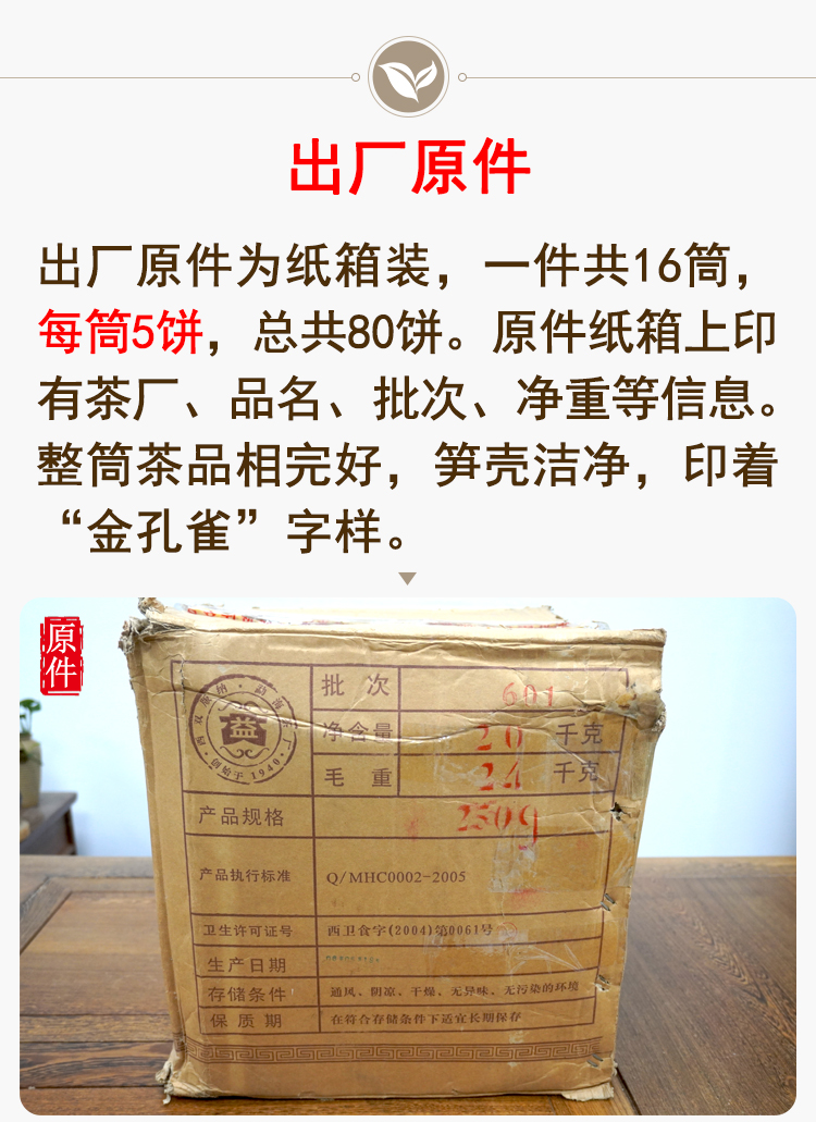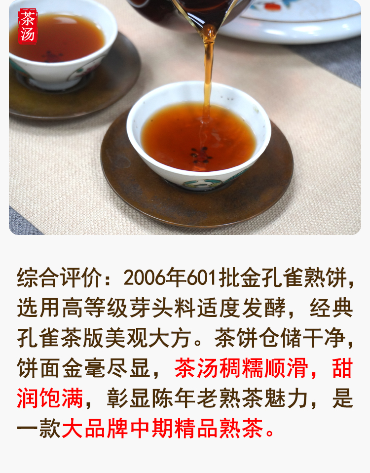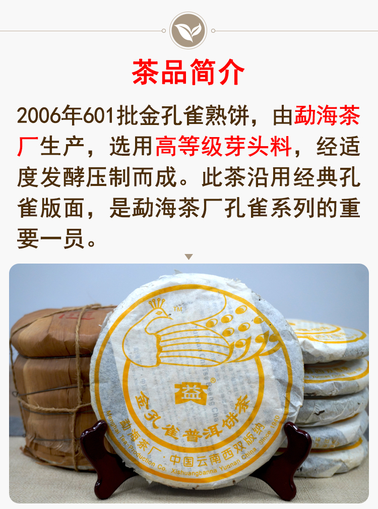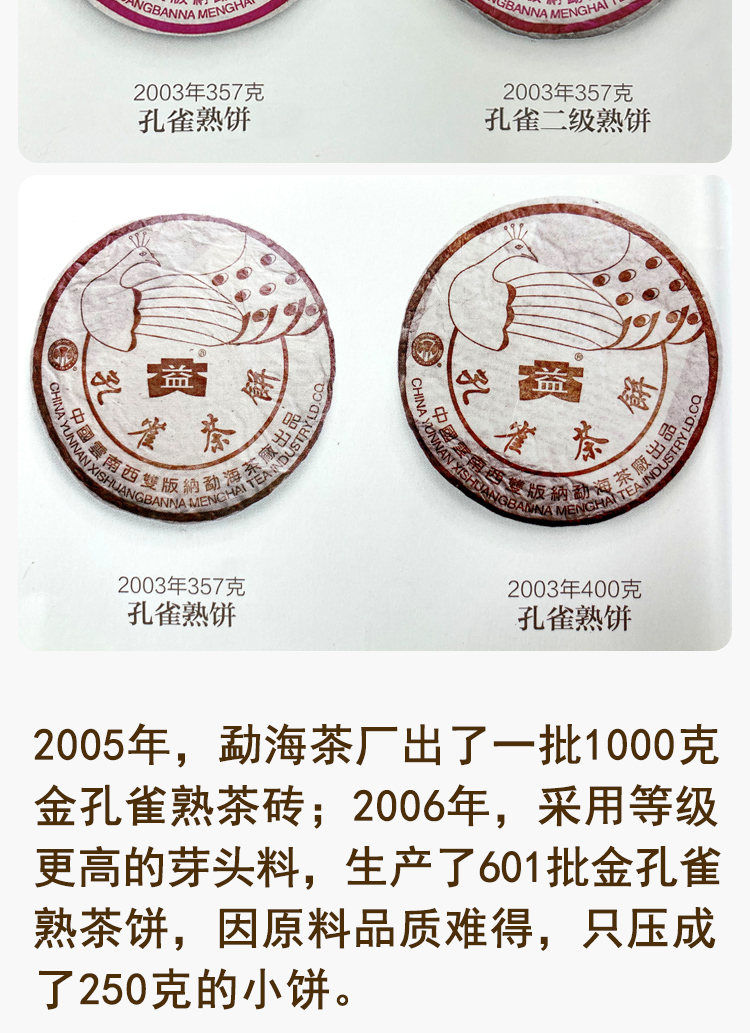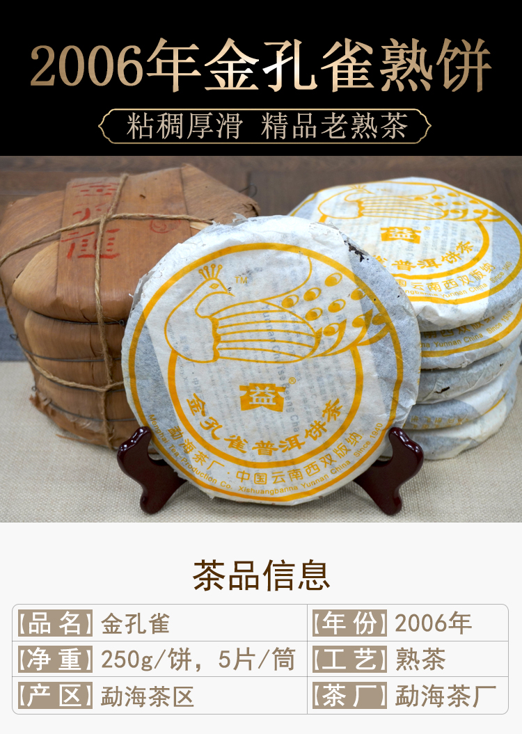 【珍藏品】2006年601批次大益金孔雀熟茶饼勐海茶厂精品熟茶经典孔雀系列 干仓真品 一提5片一片250克单片标价