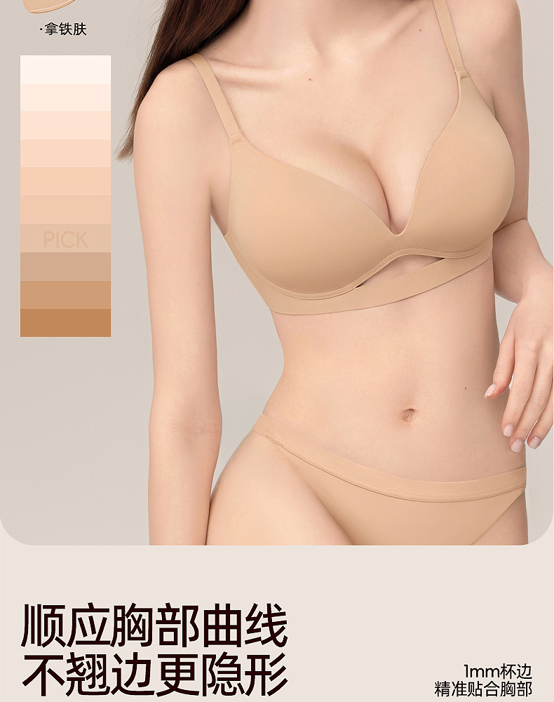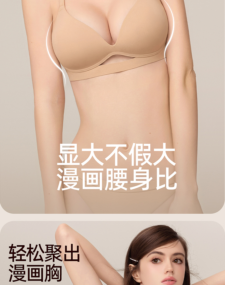 好奇蜜斯内衣女聚拢小胸外扩显大性感无痕文胸罩套装-文妮