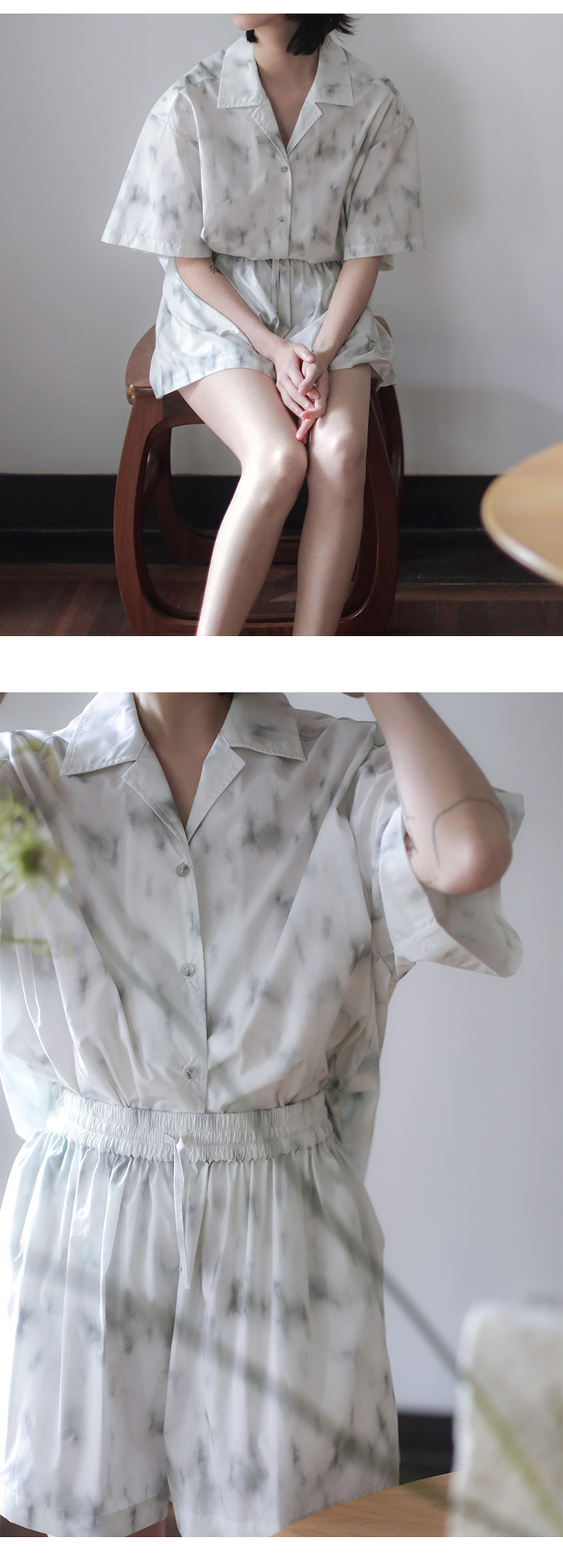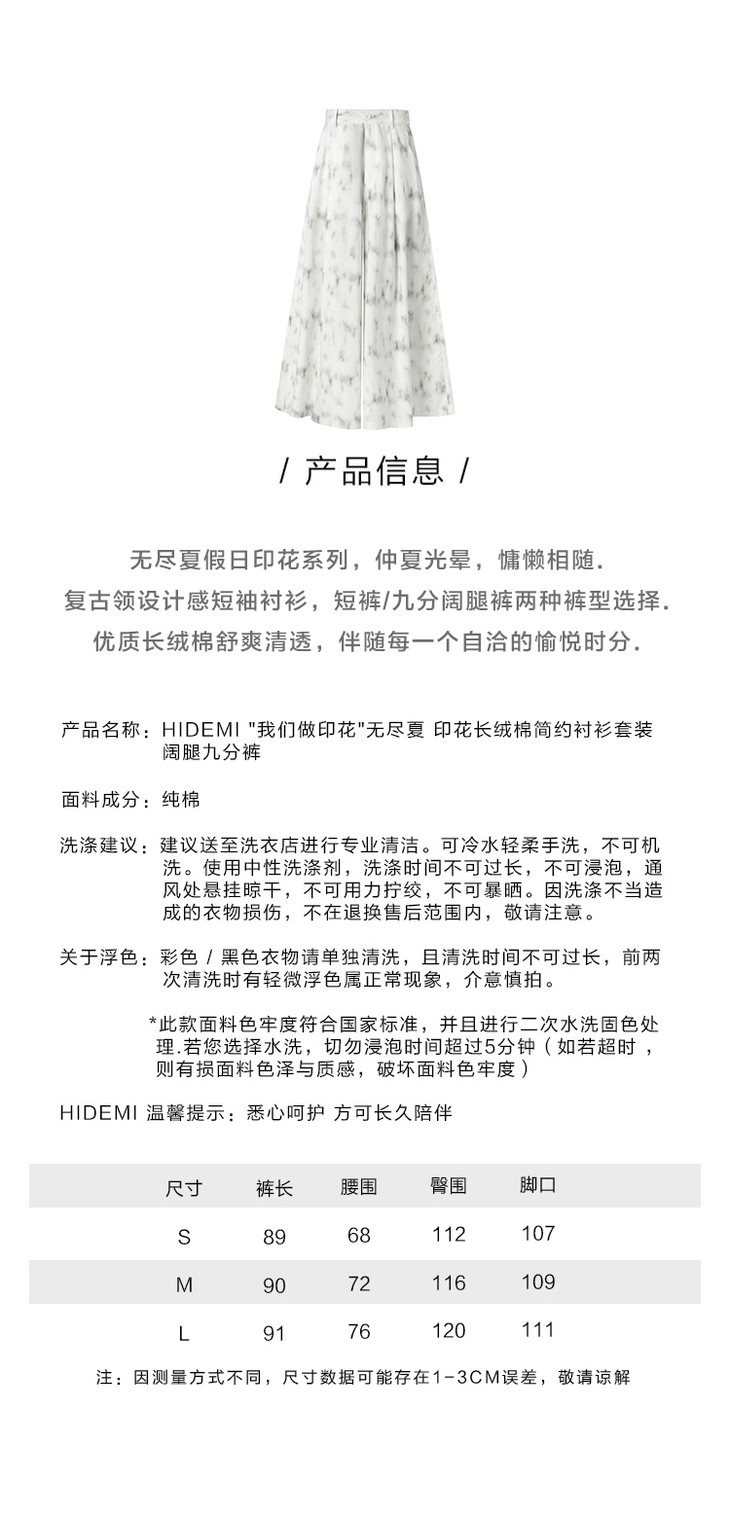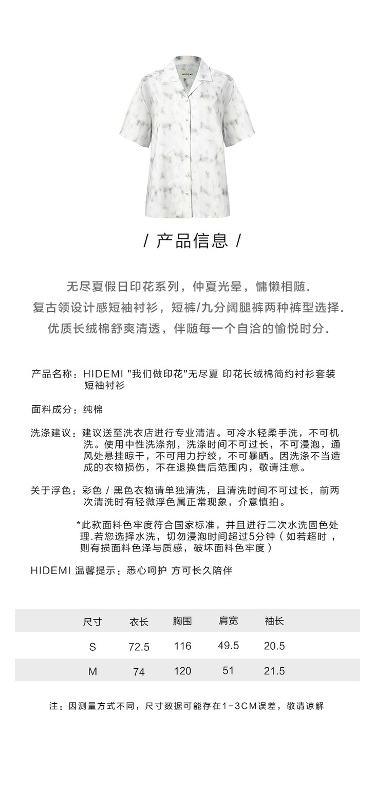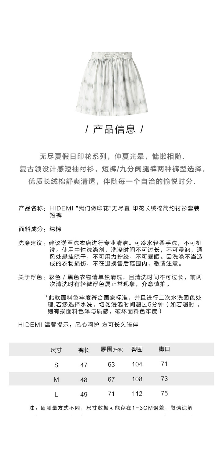 HIDEMI "我们做印花"无尽夏 印花长绒棉简约衬衫套装 短袖衬衫/短裤/阔腿九分裤