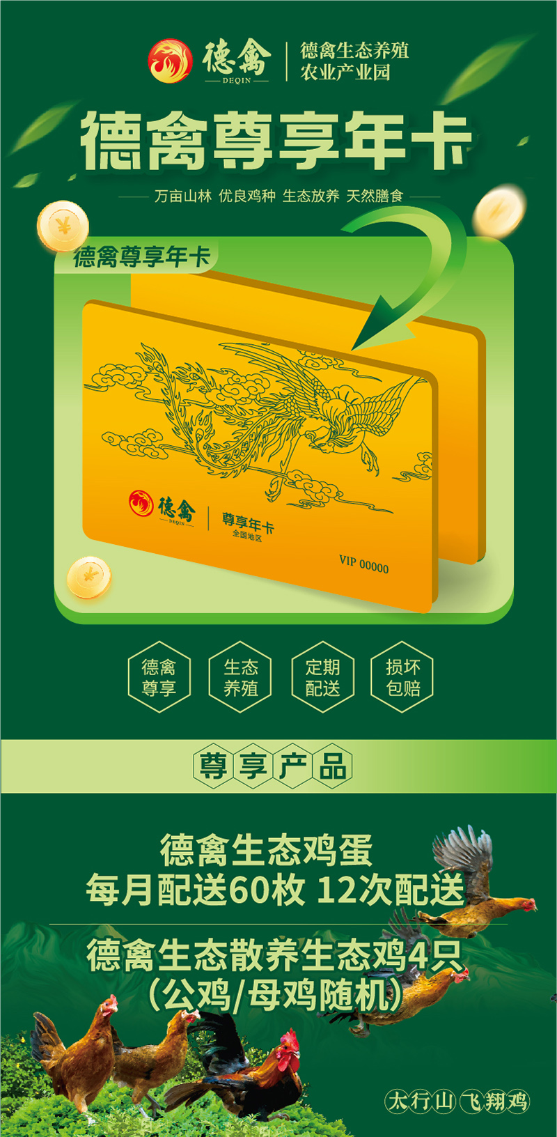 德禽/尊享年卡/德禽生态鸡蛋每月配送60枚12次配送 德禽生态散养生态鸡4只(公鸡/母鸡随机)