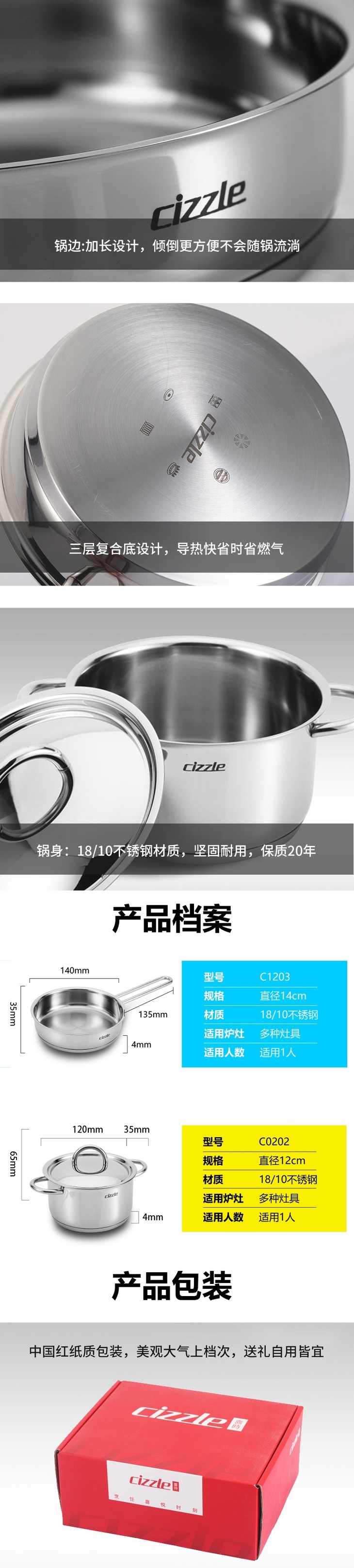 cizzle喜时【巧思】两件套 宝宝辅食锅304不锈钢婴儿小奶锅迷你小锅抖音家用C2202