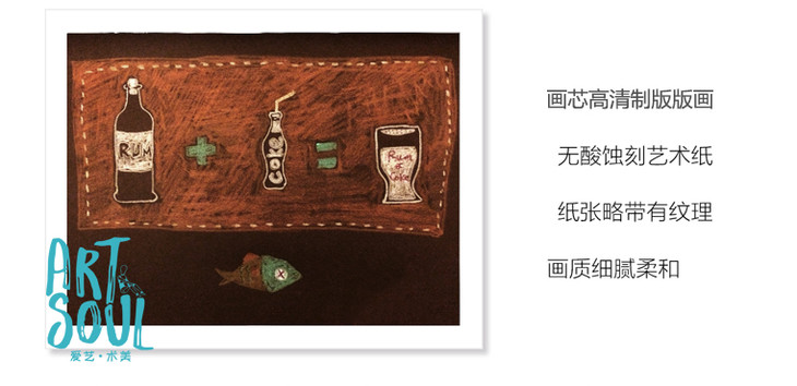 艺术版画通常整体为A4纸大小,也可制作8K大小,不含金属或木质画框