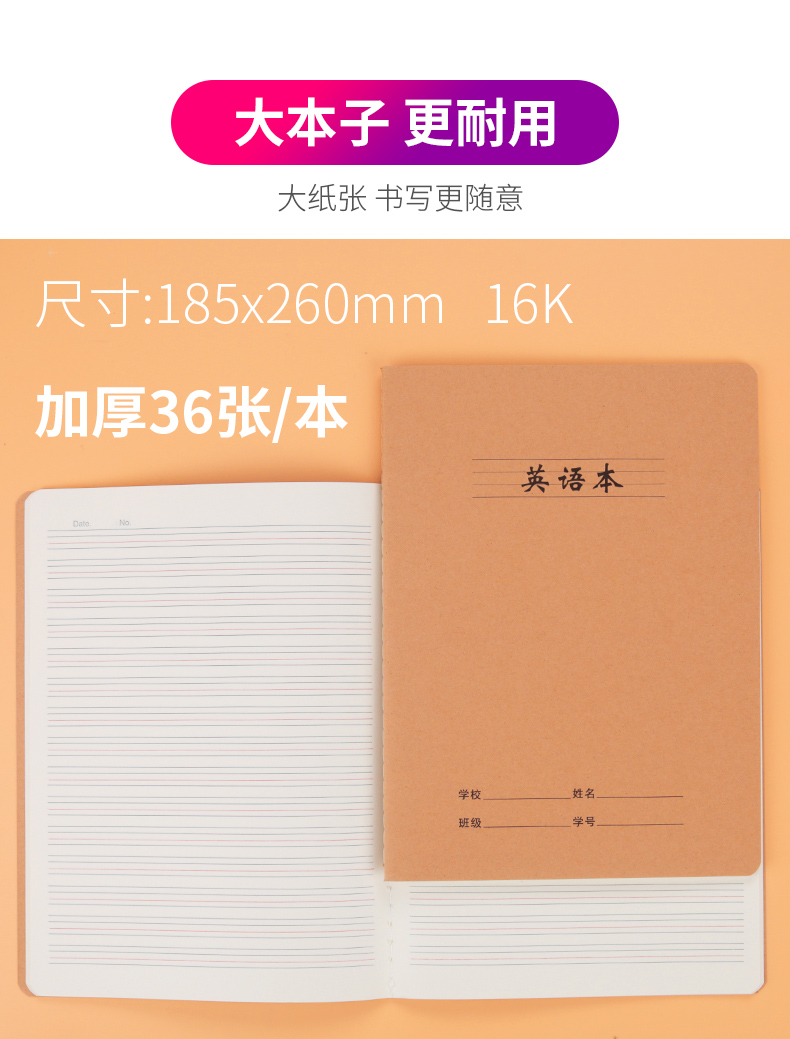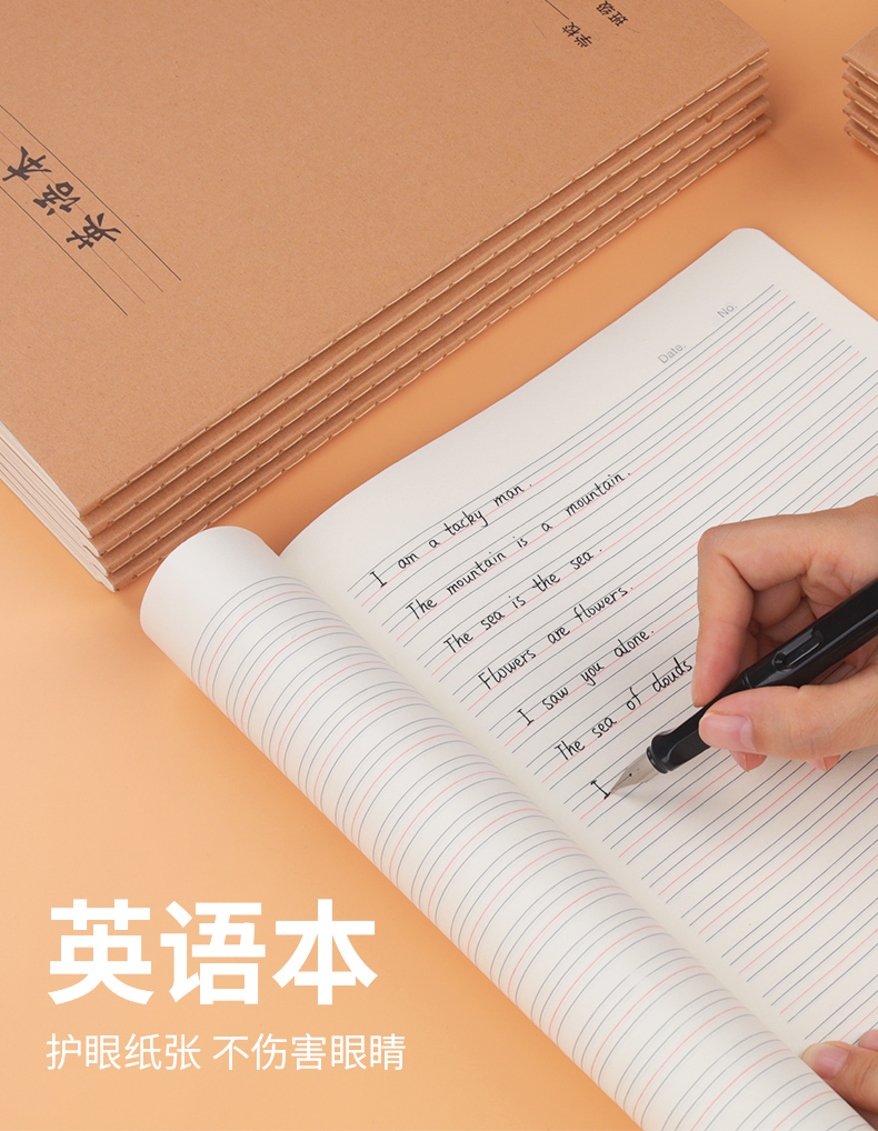 【9.9到手5本】书行英语本作业本加厚练习本四线三格英文本16开大号b5抄写本横开作文本16k牛皮纸小学生3-6年级初中生簿