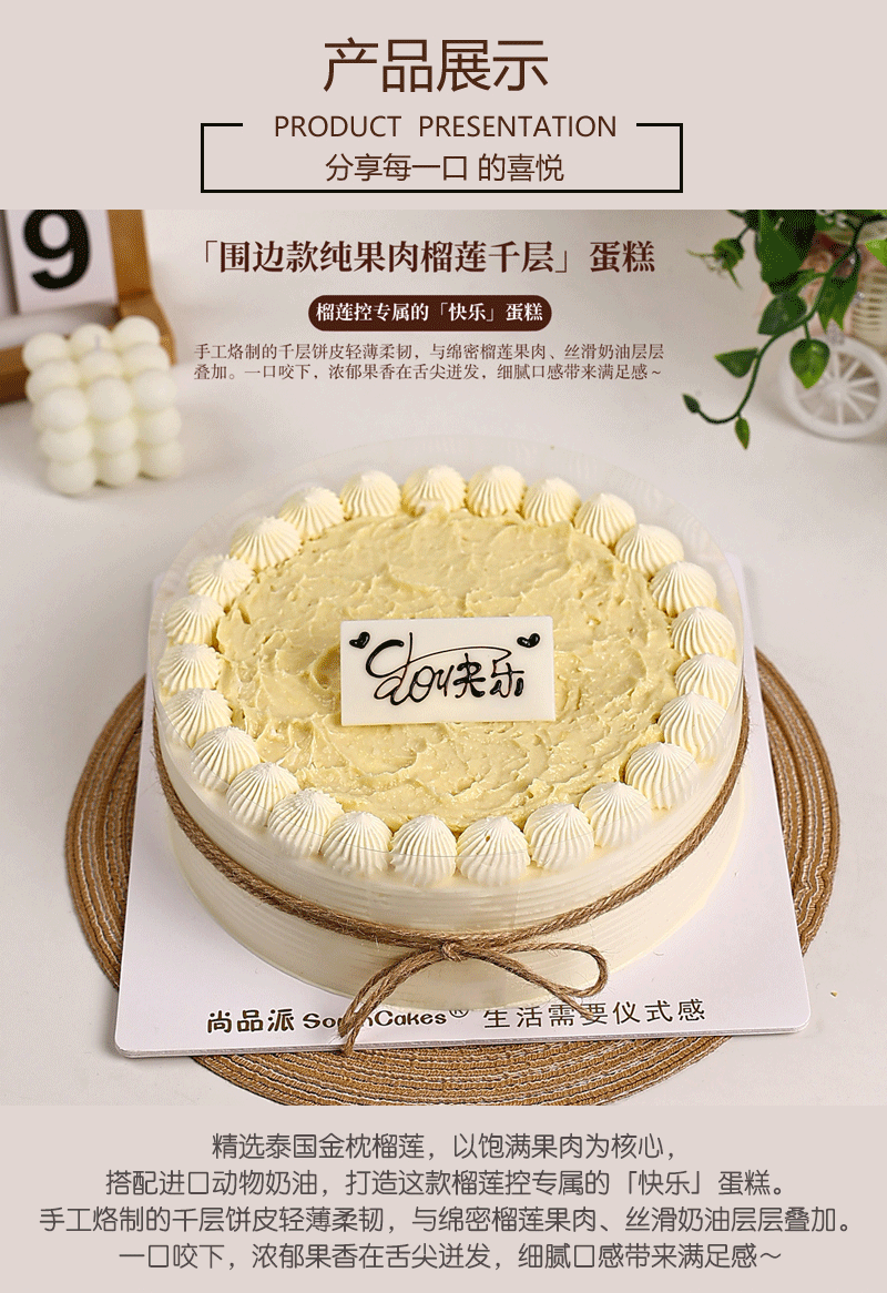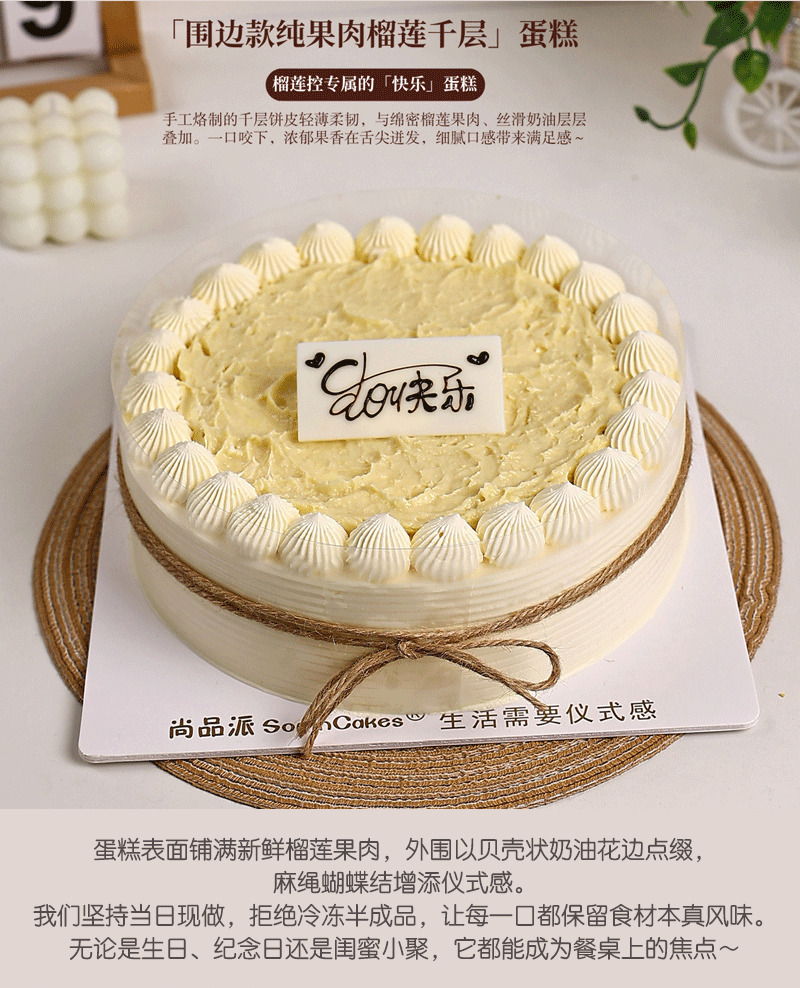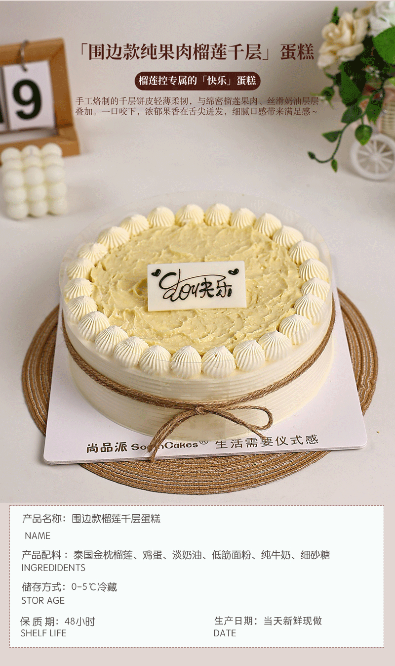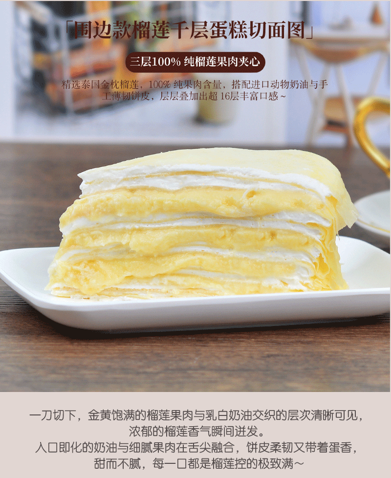 「围边款」动物奶油榴莲千层蛋糕,以饱满果肉为核心,打造榴莲控专属的「快乐」蛋糕【惠州】