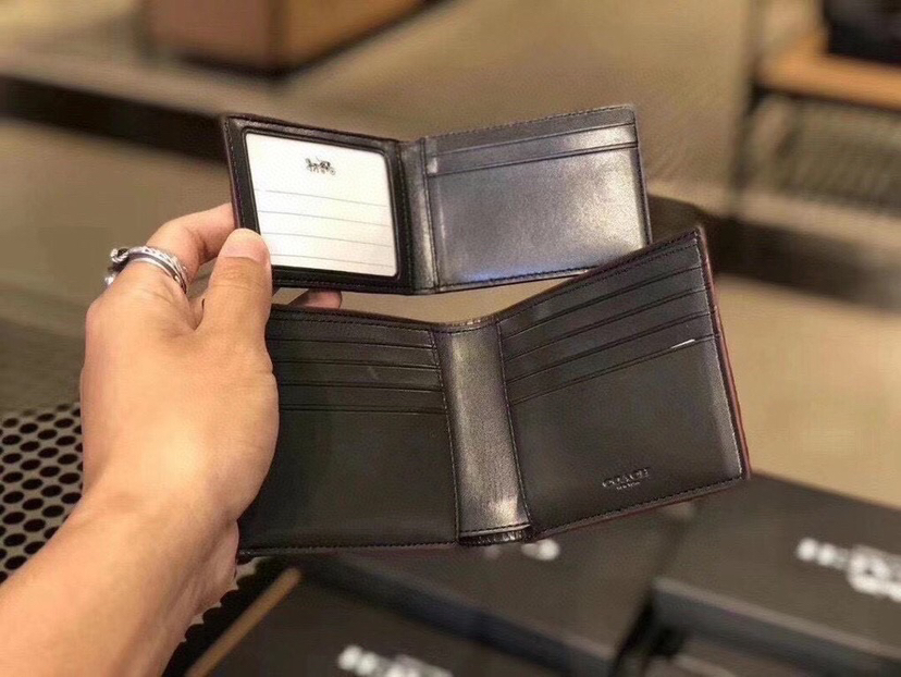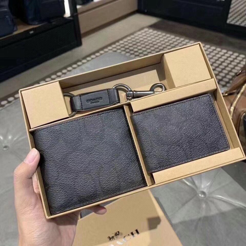 内含:一个两折钱包 +一个卡包 (卡包可以插到钱包里面)+另外一个还是比较绅士的钥匙扣。加上Coach的礼盒装 ,送礼再适合不过了~