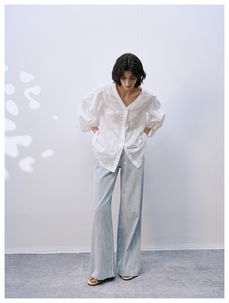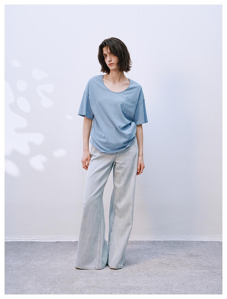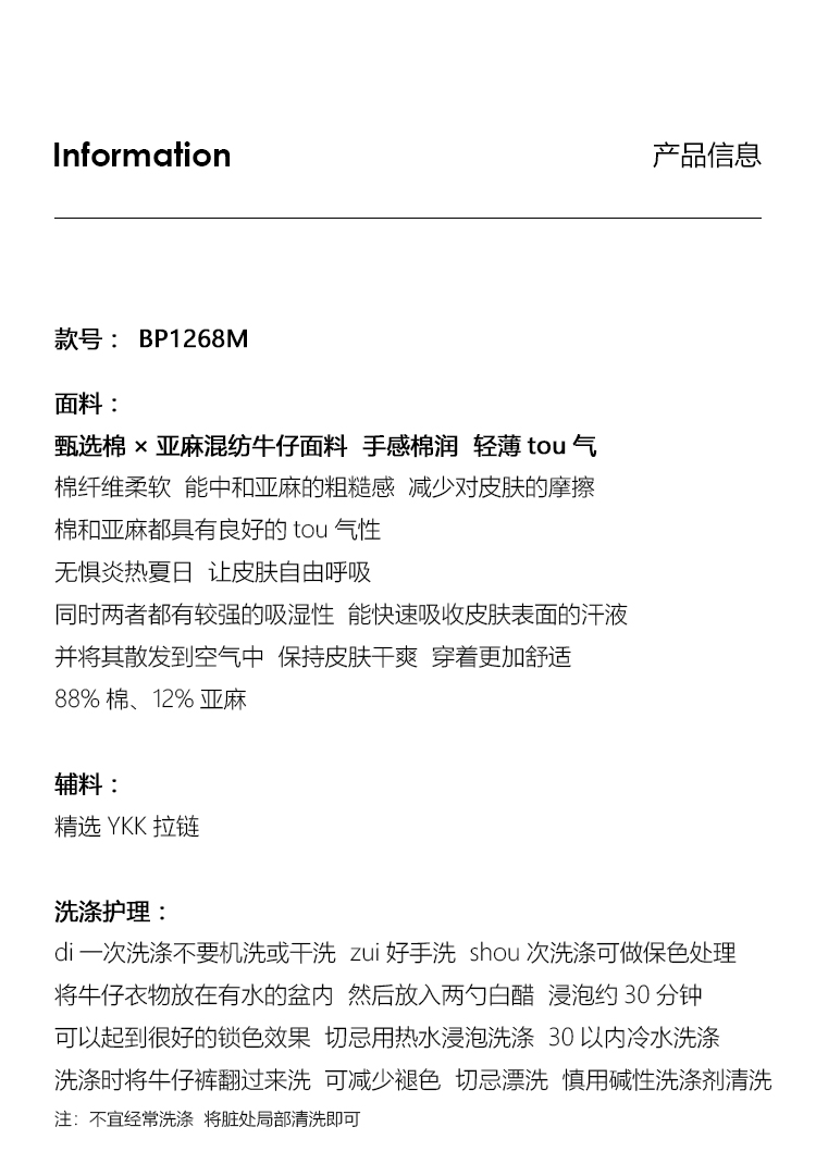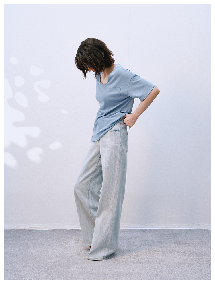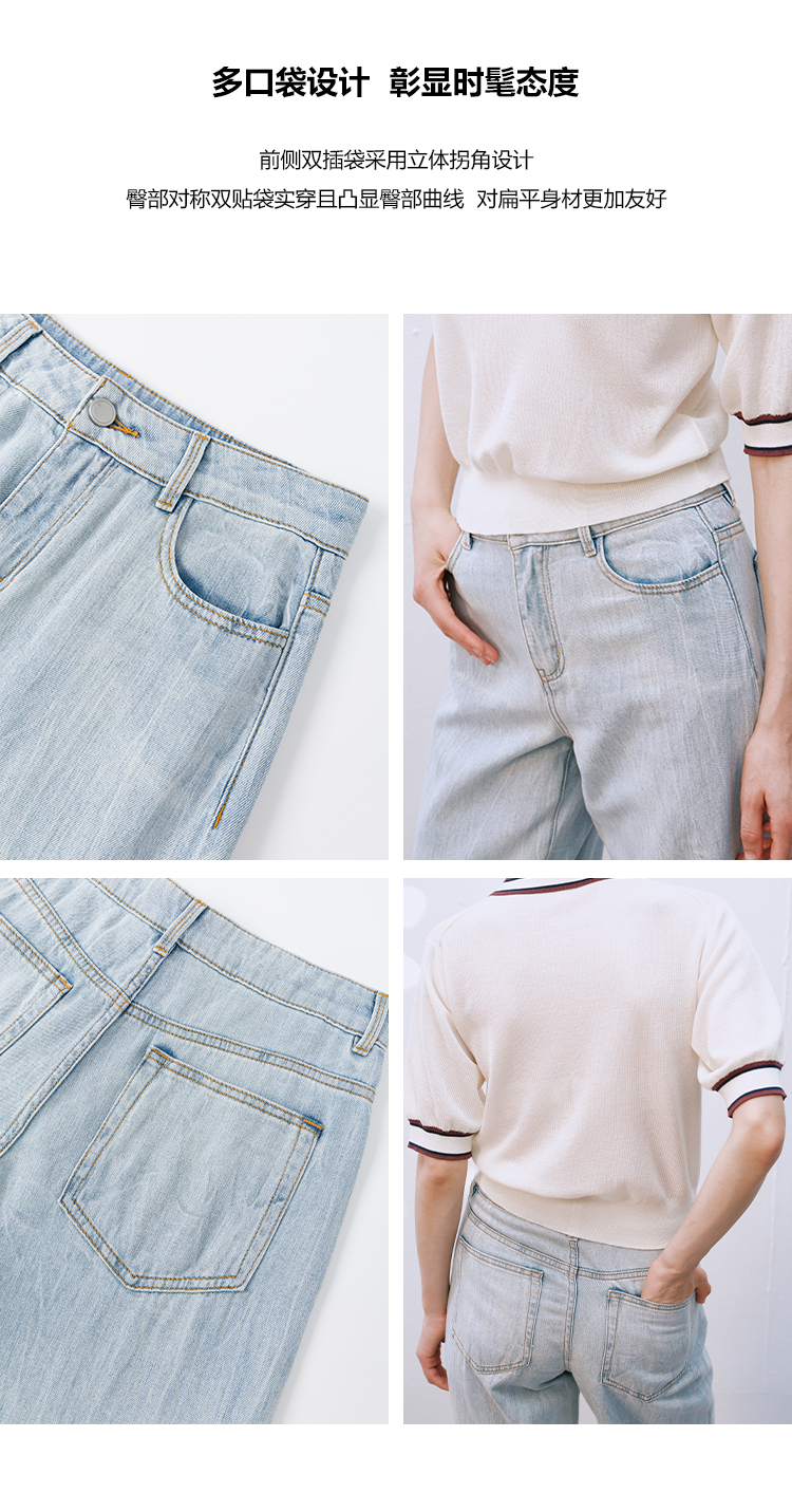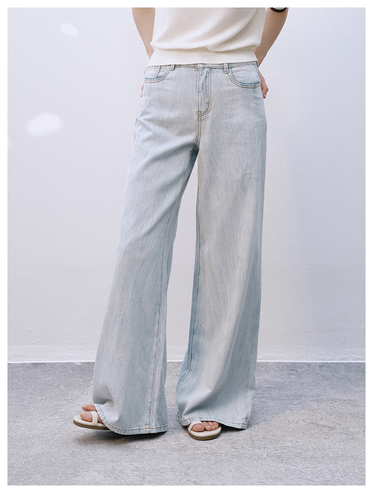 UMILAB【拓风】亚麻棉轻薄透气直筒微喇夏季浅色牛仔裤BP1268M