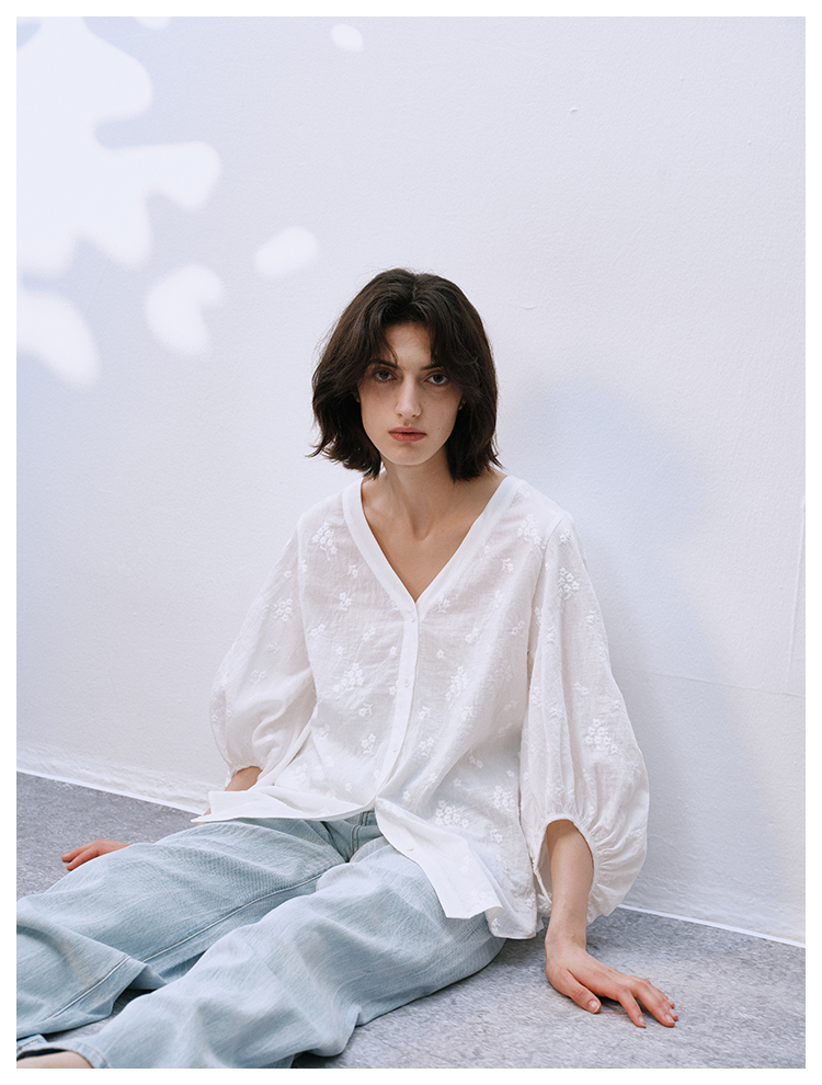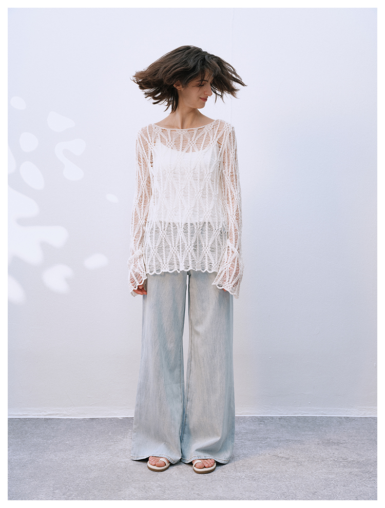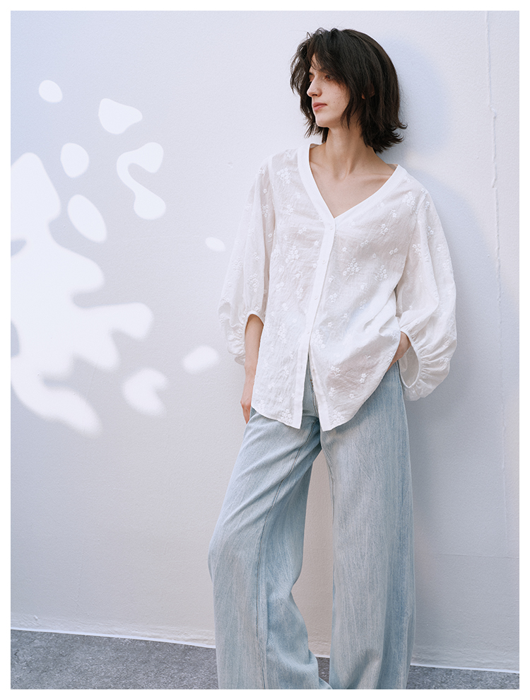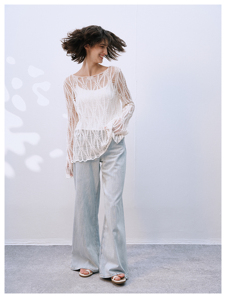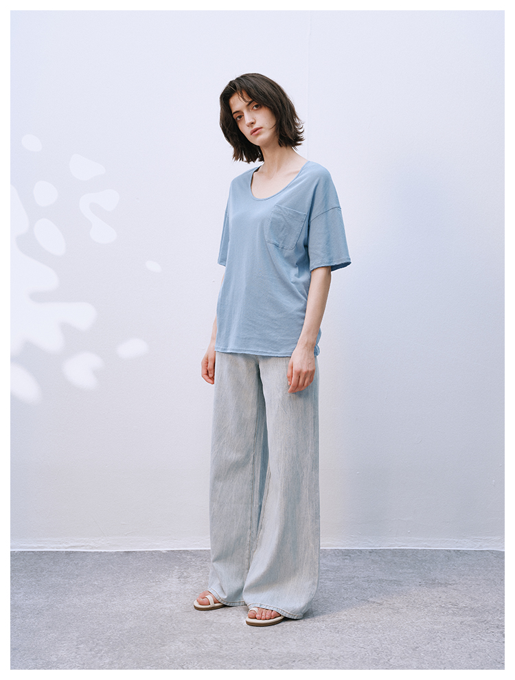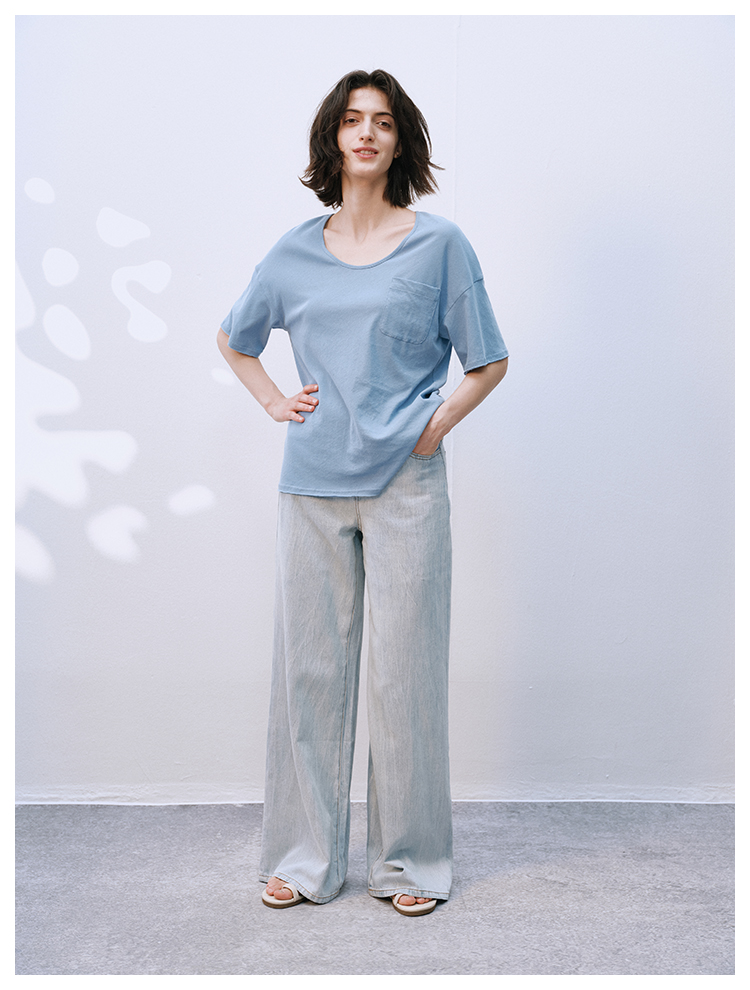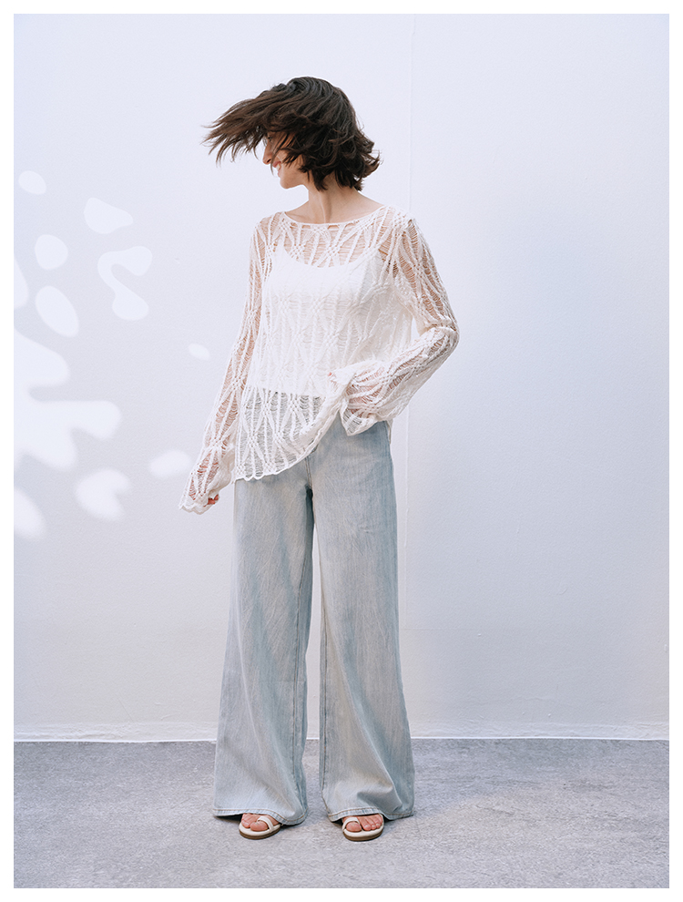 UMILAB【拓风】亚麻棉轻薄透气直筒微喇夏季浅色牛仔裤BP1268M