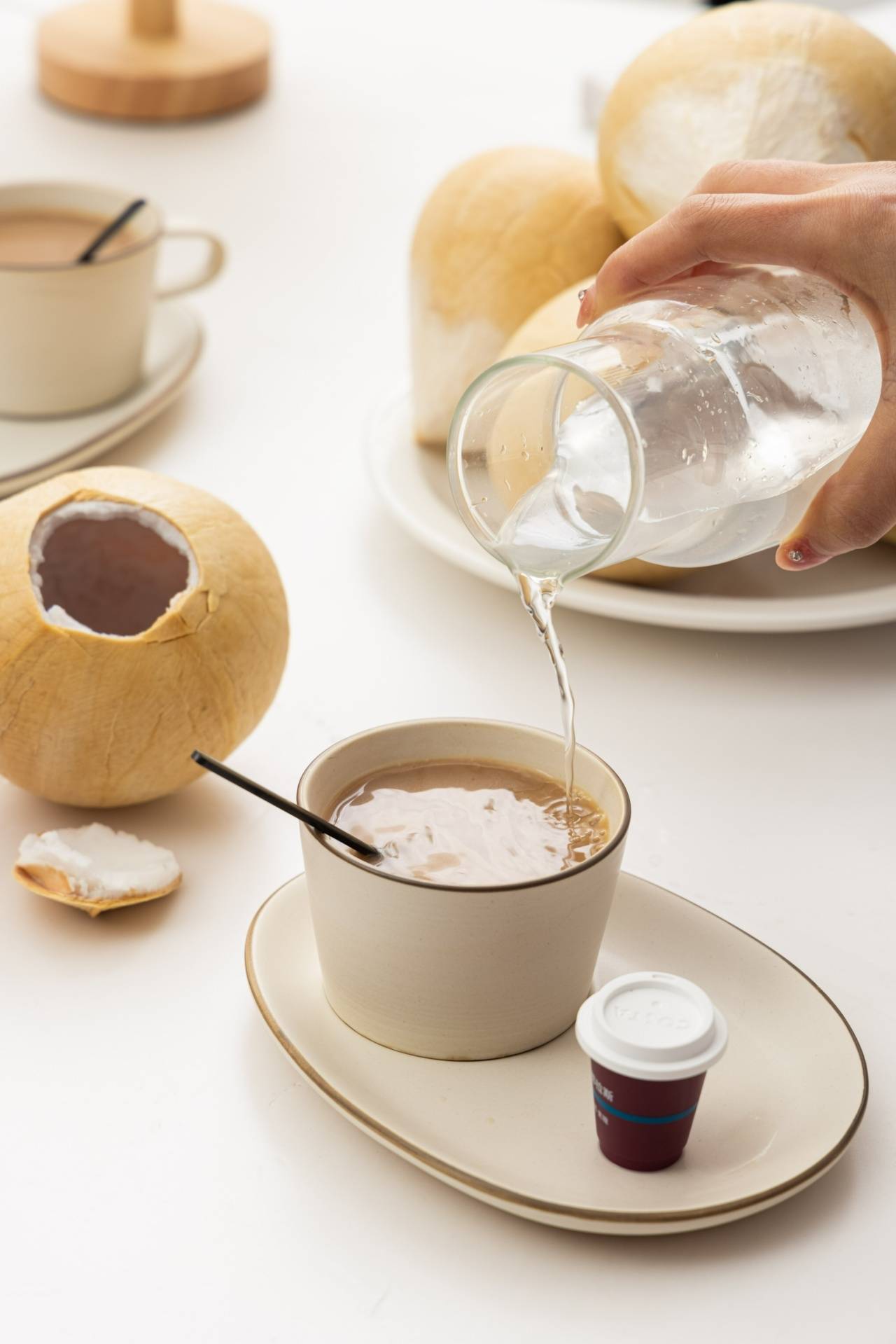 那么香的椰皇不但可以直接喝,还可以搭配咖啡,制作一杯生椰拿铁,浓郁又好喝~