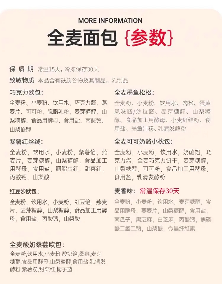 【6款口味共15只欧包】6天不重样 七年五季爆品必尝鲜 健身减脂 全麦面包套餐