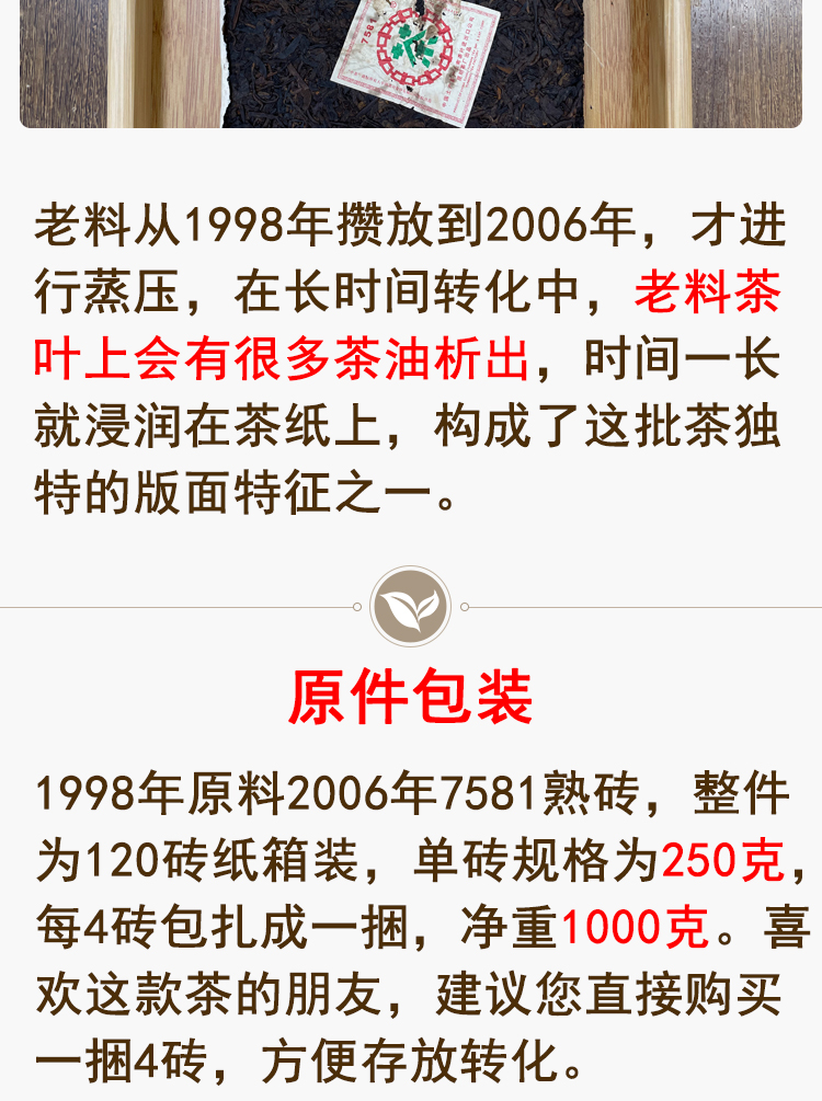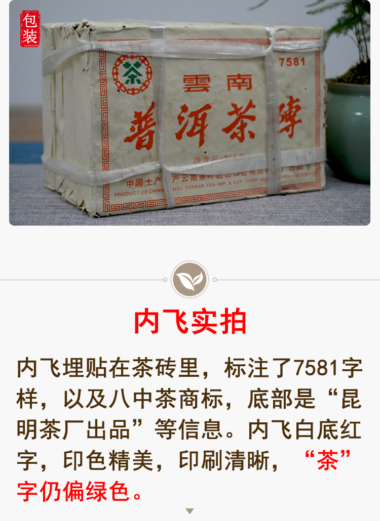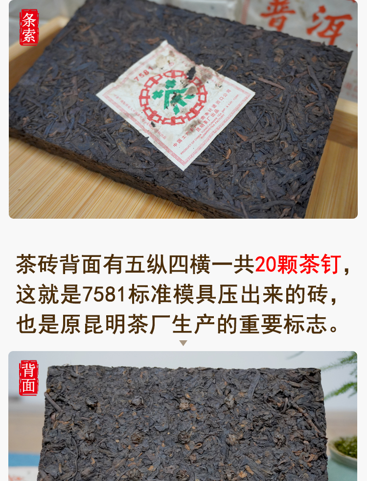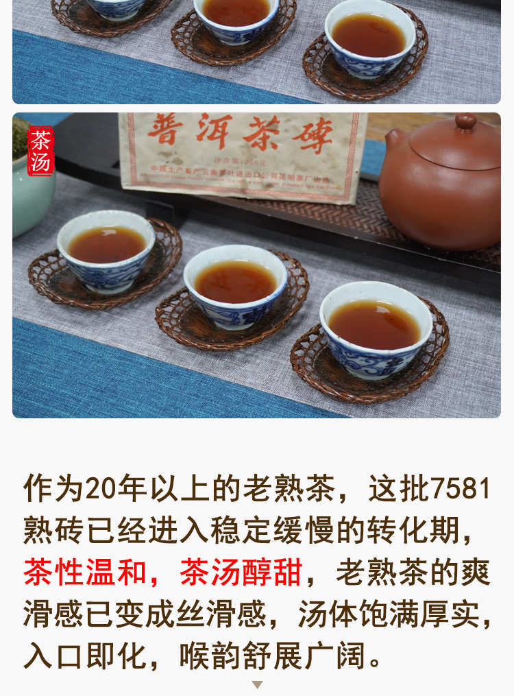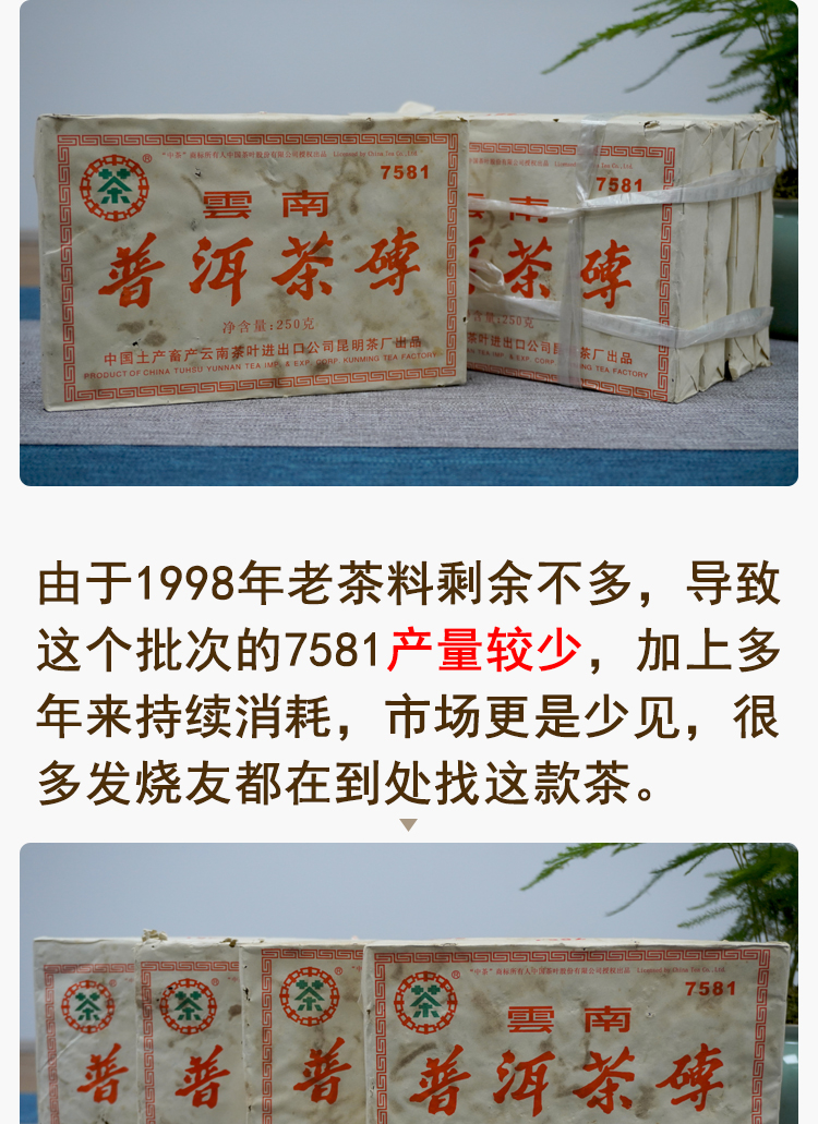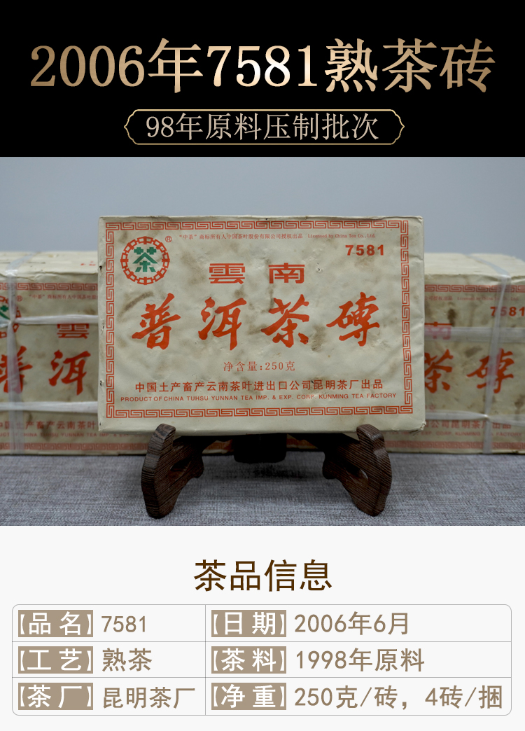 真品1998年原料2006年6月加工经典老昆明茶厂7581 仓储好 干仓真品 这批茶仿品很多认准详情页细节 很有品质性价比高 老标杆熟茶 一片的价格